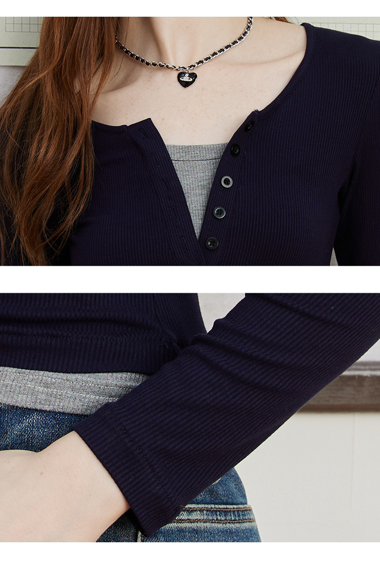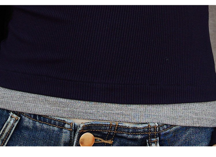 商品名称:假两件修身撞色设计女式针织衫春季V领正肩长袖上衣 943069