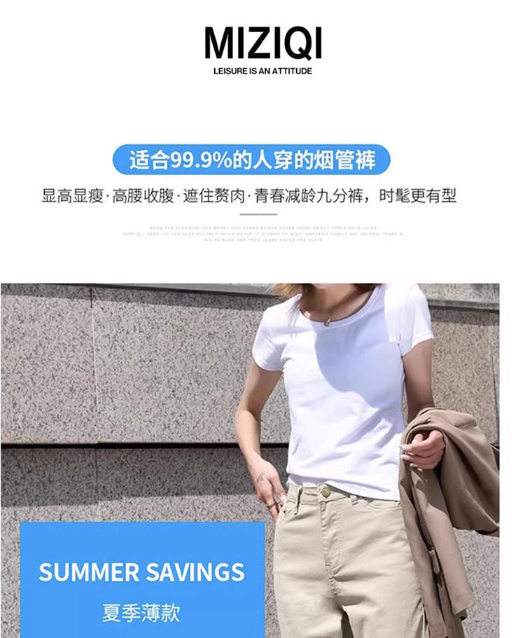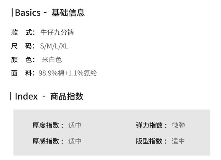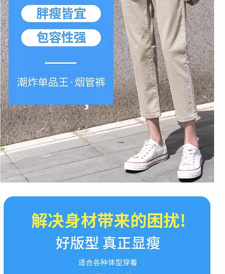 商品名称:米子旗春秋款简约休闲女士牛仔裤直筒小脚裤九分裤 202138