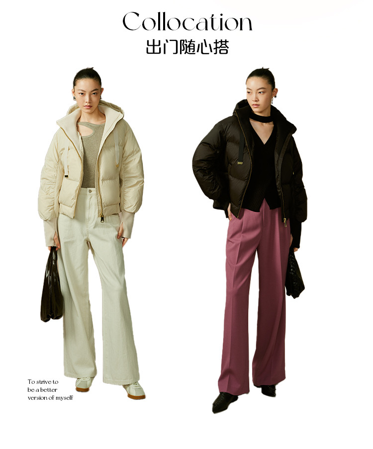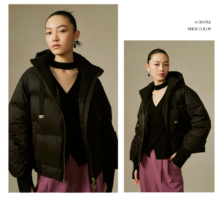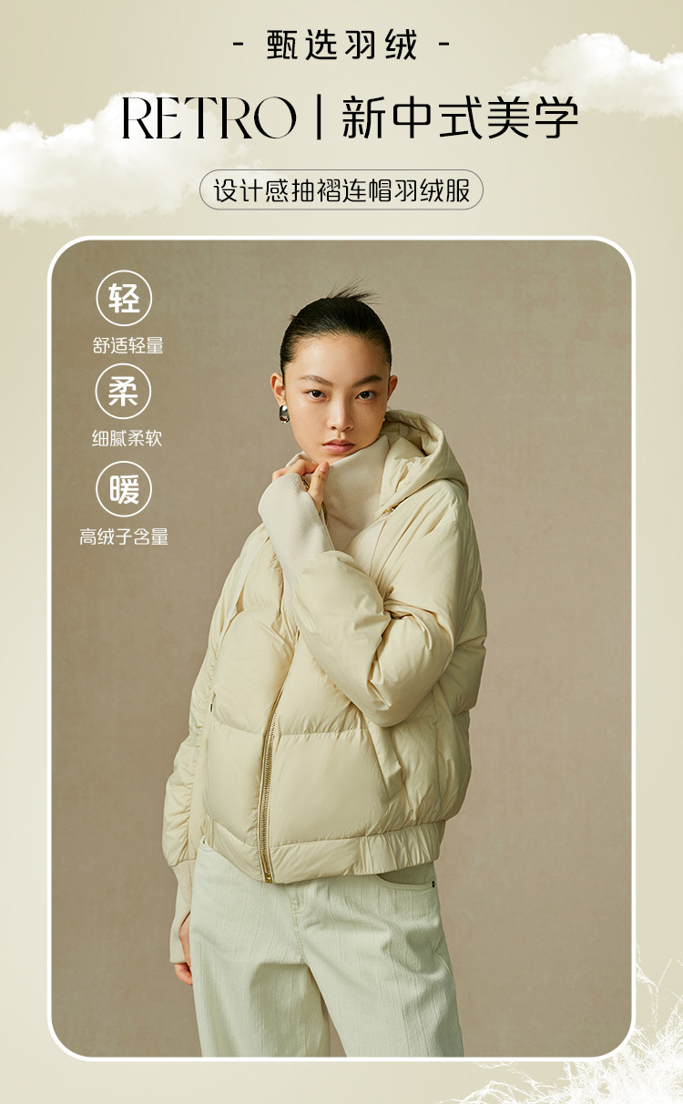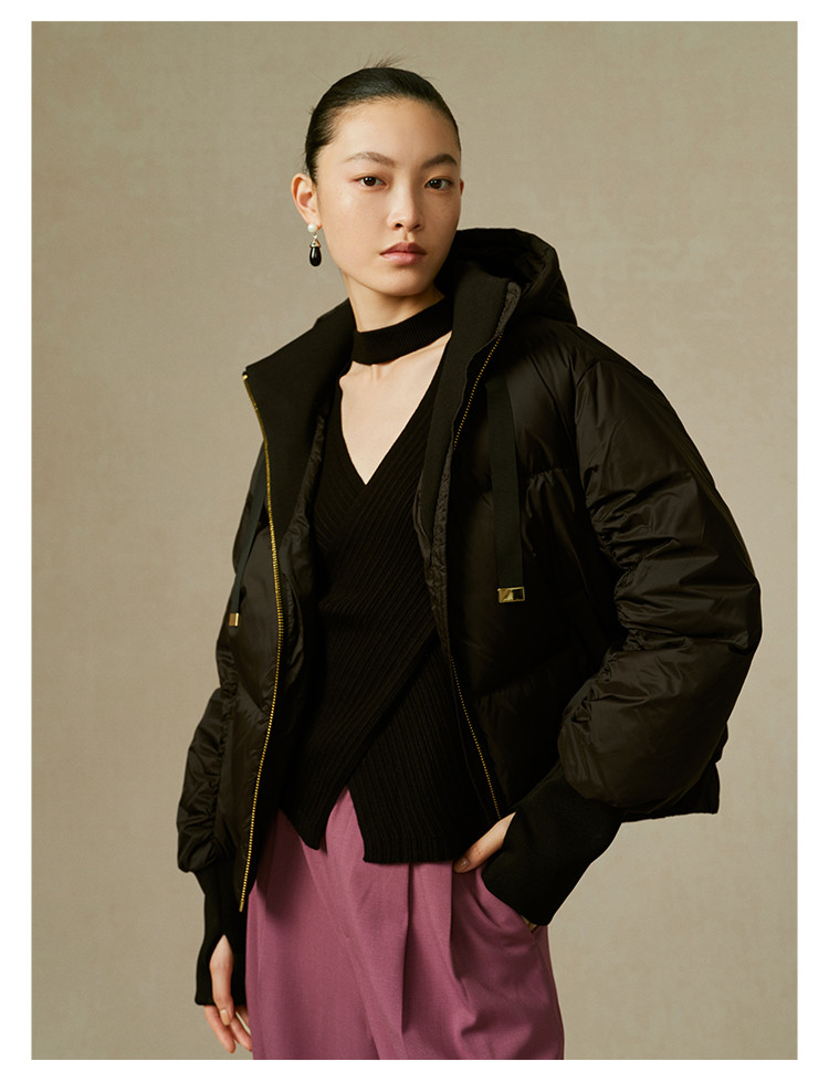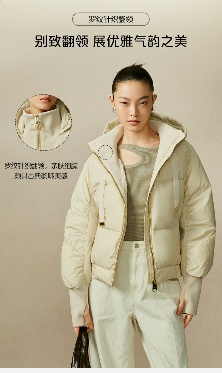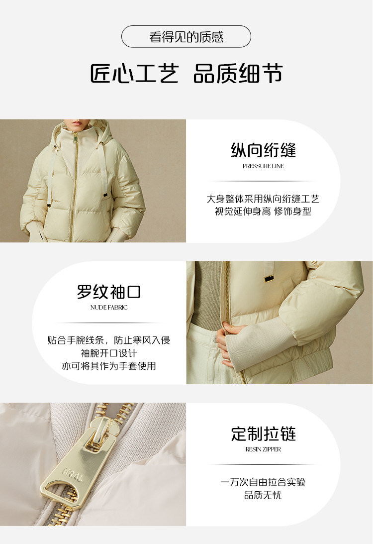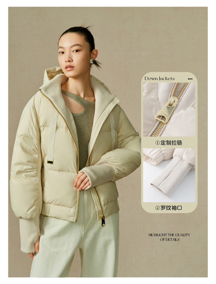 商品名称:【国色系列】时尚复古短款鸭绒羽绒服女反季特卖冬季连帽外套 769494