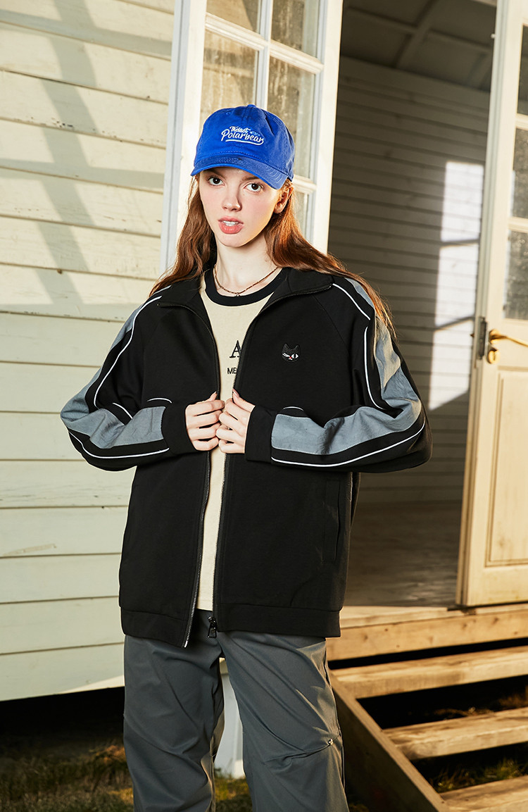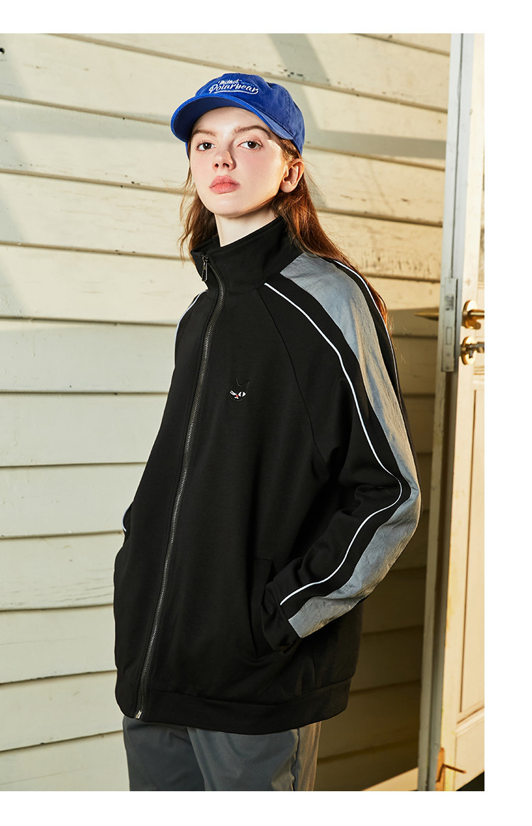 商品名称:美式夹克情侣同款泽西风运动休闲棒球服春季插肩袖女式外套 191389