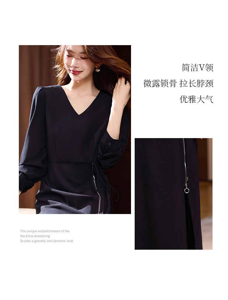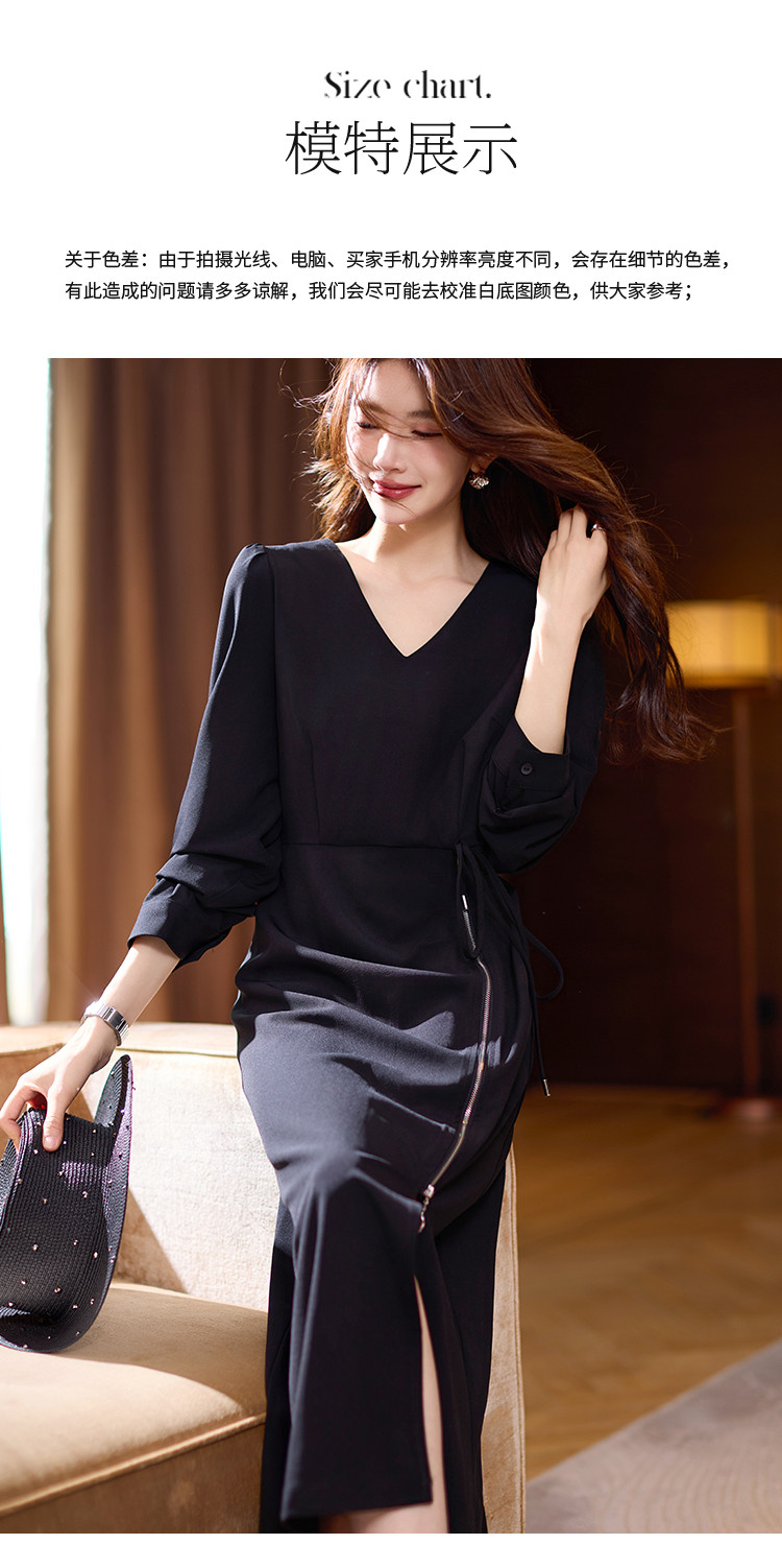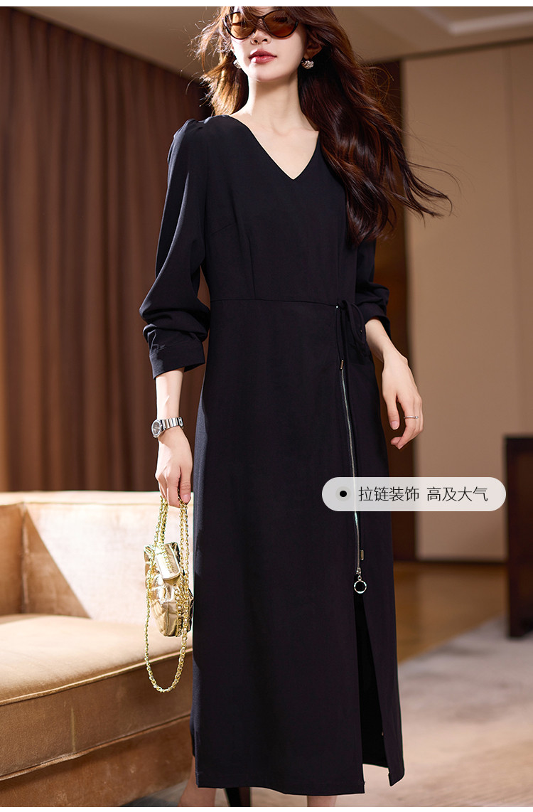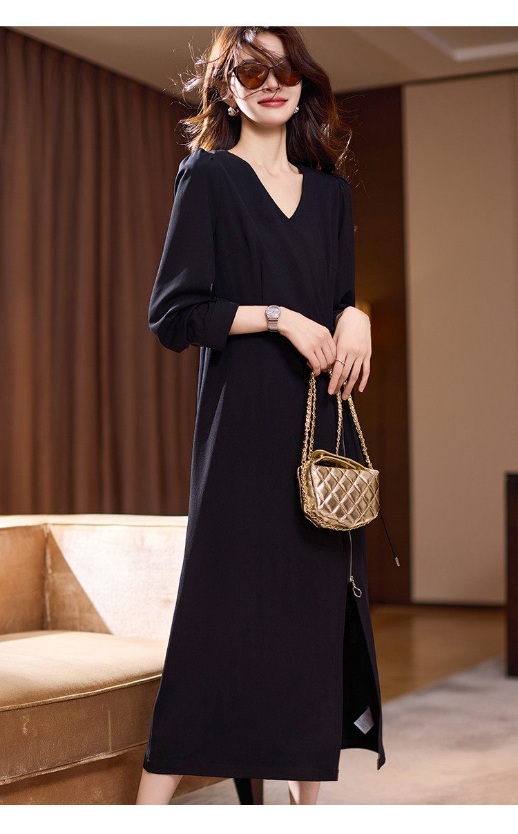 【赫本风小黑裙】连衣裙女2025春夏优雅轻礼服开叉收腰长袖 328713