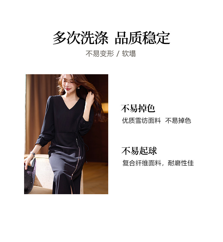 商品名称:【赫本风小黑裙】连衣裙女2025春夏优雅轻礼服开叉收腰长袖 328713