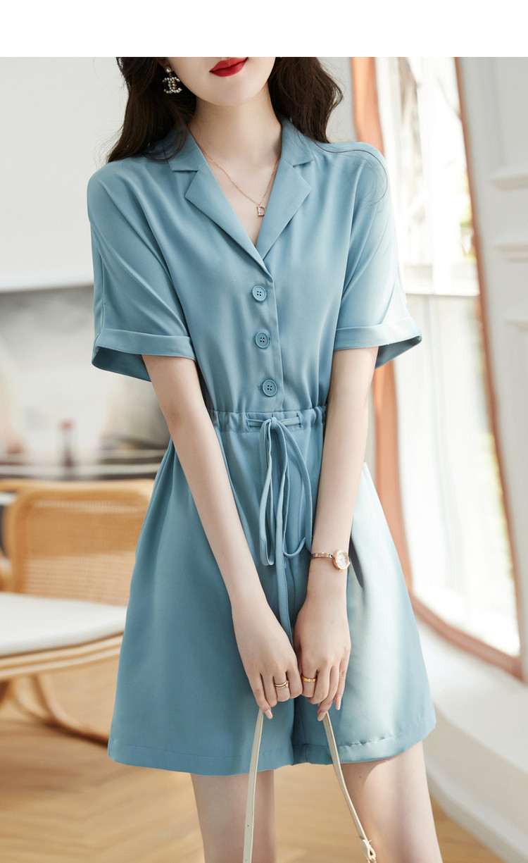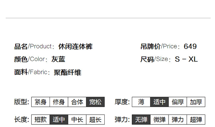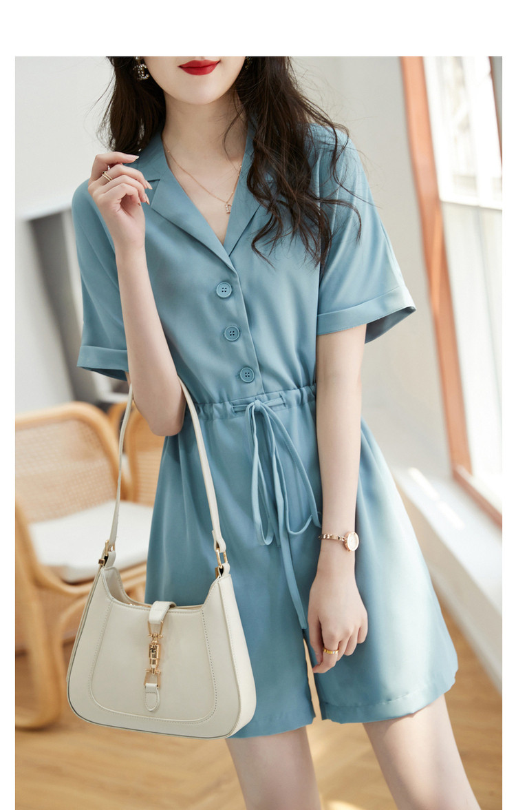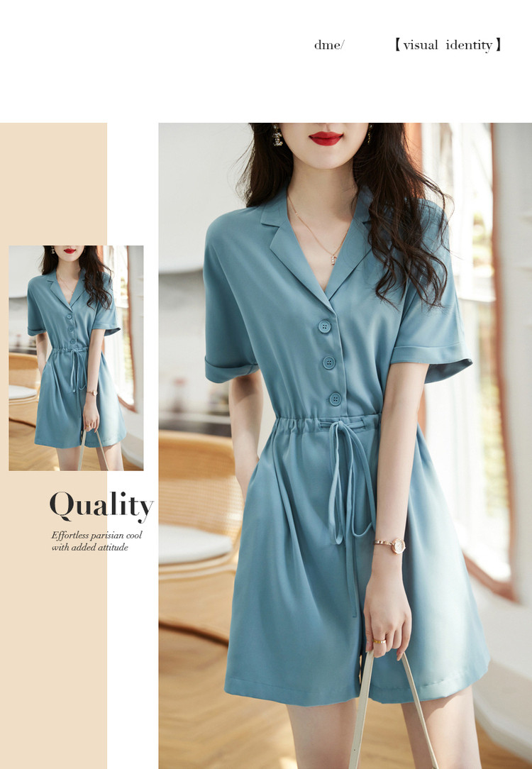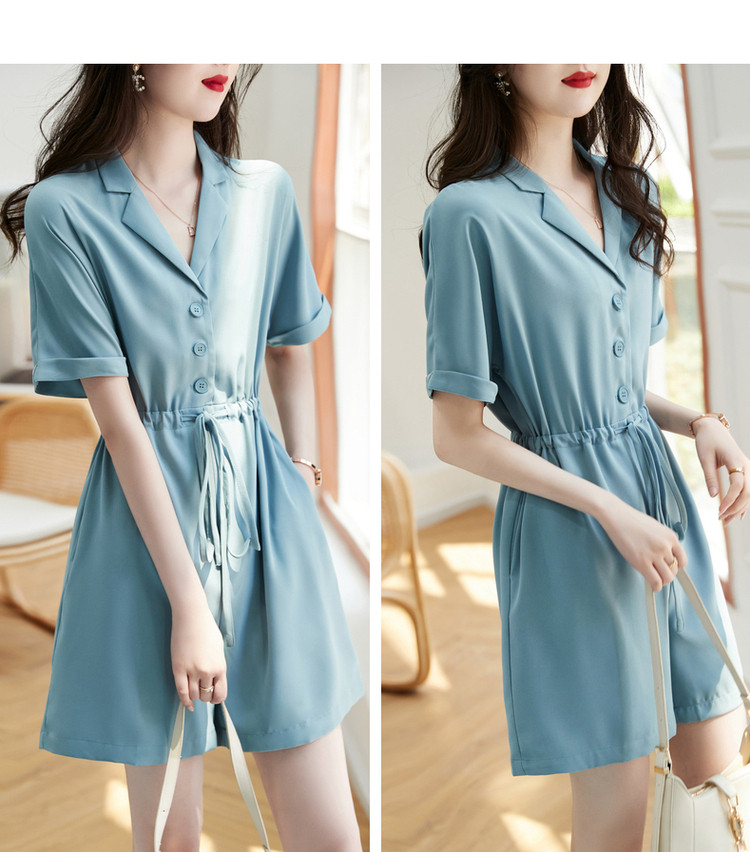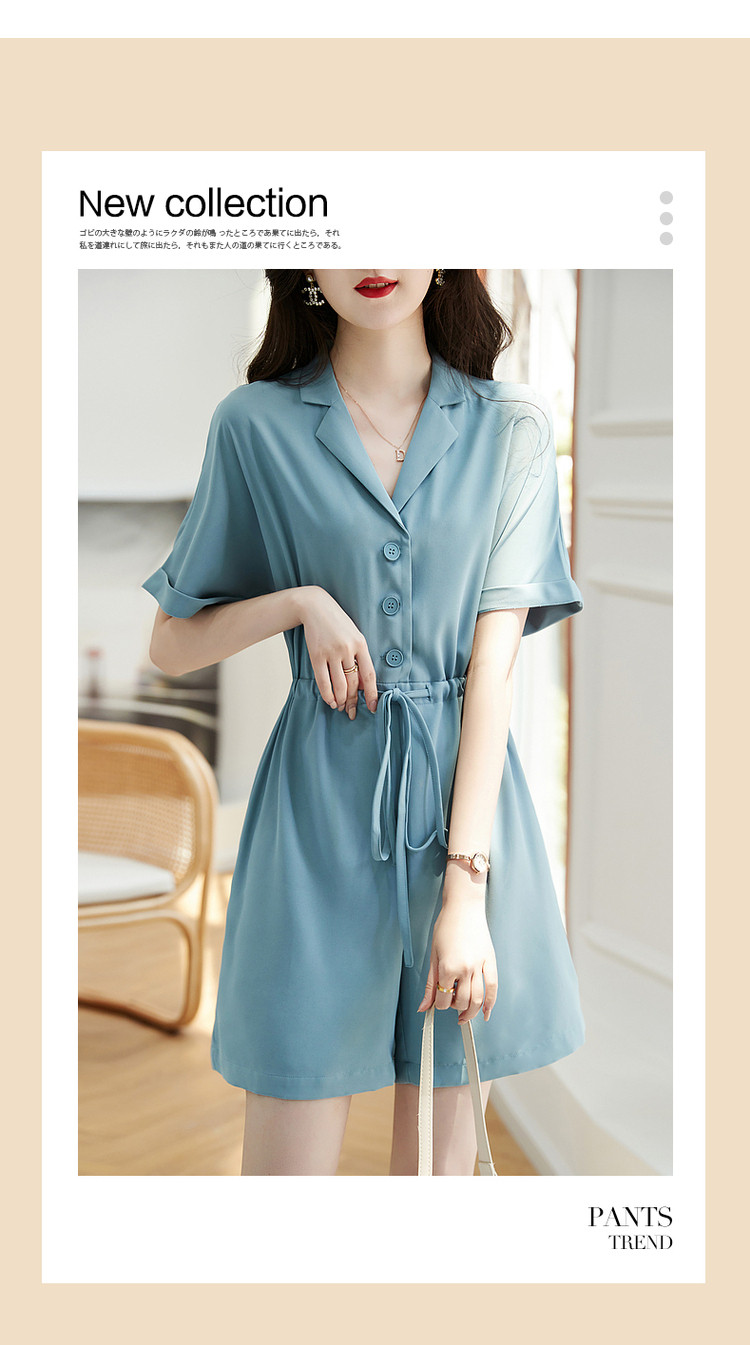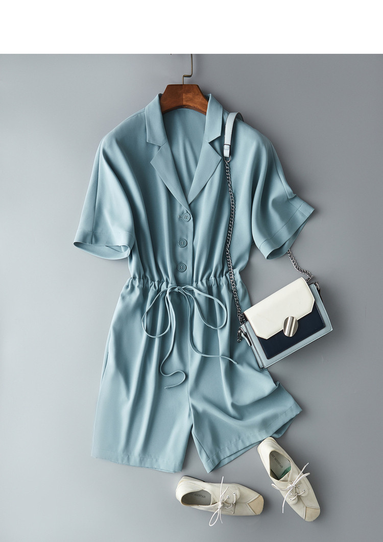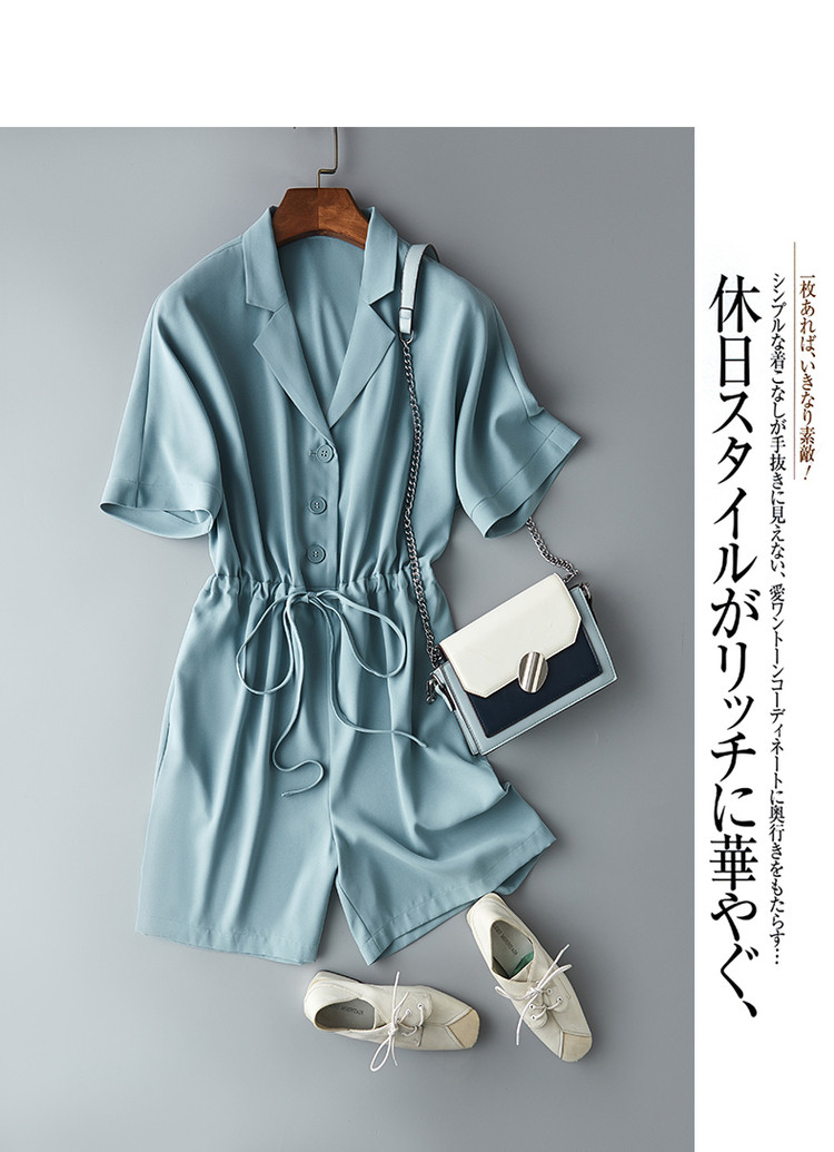 商品名称:【抽绳连体裤】夏季西装领五分袖三粒扣连袖H型连体裤 501313