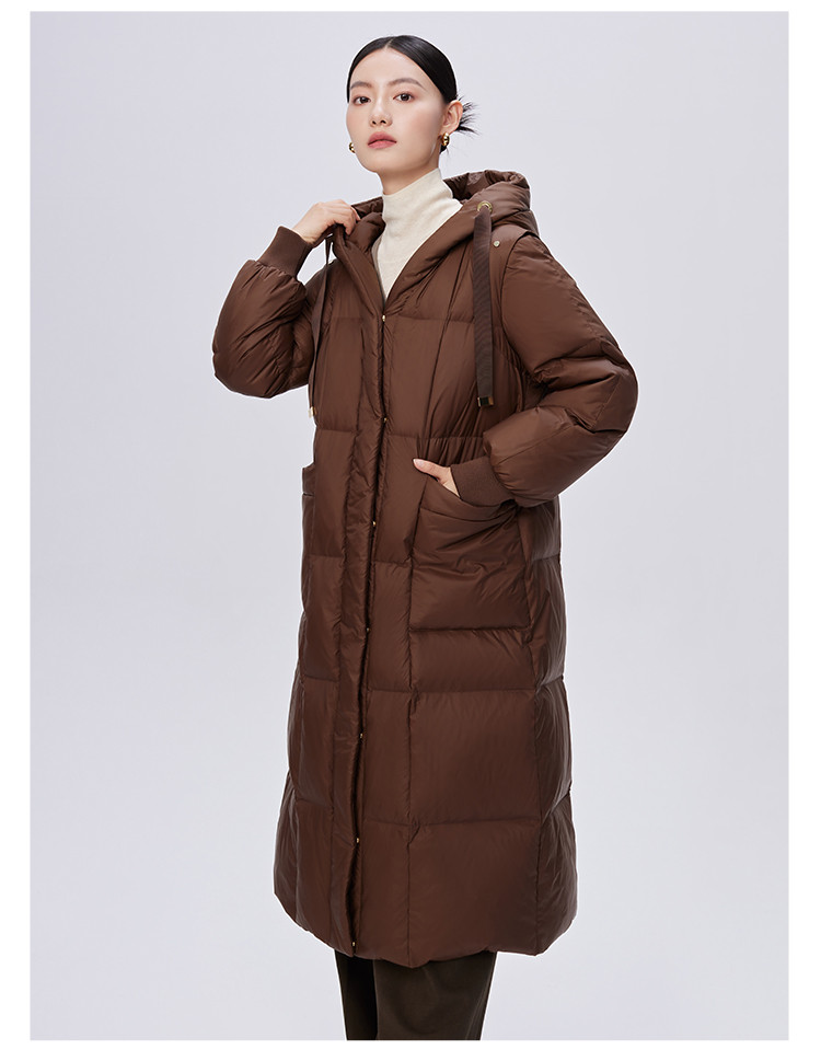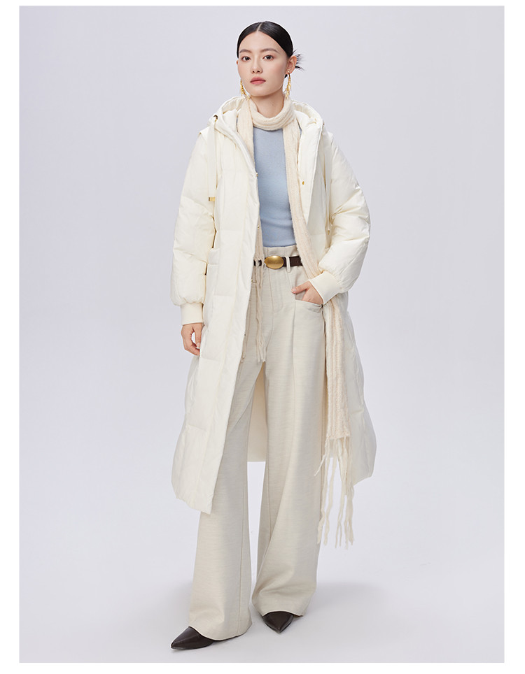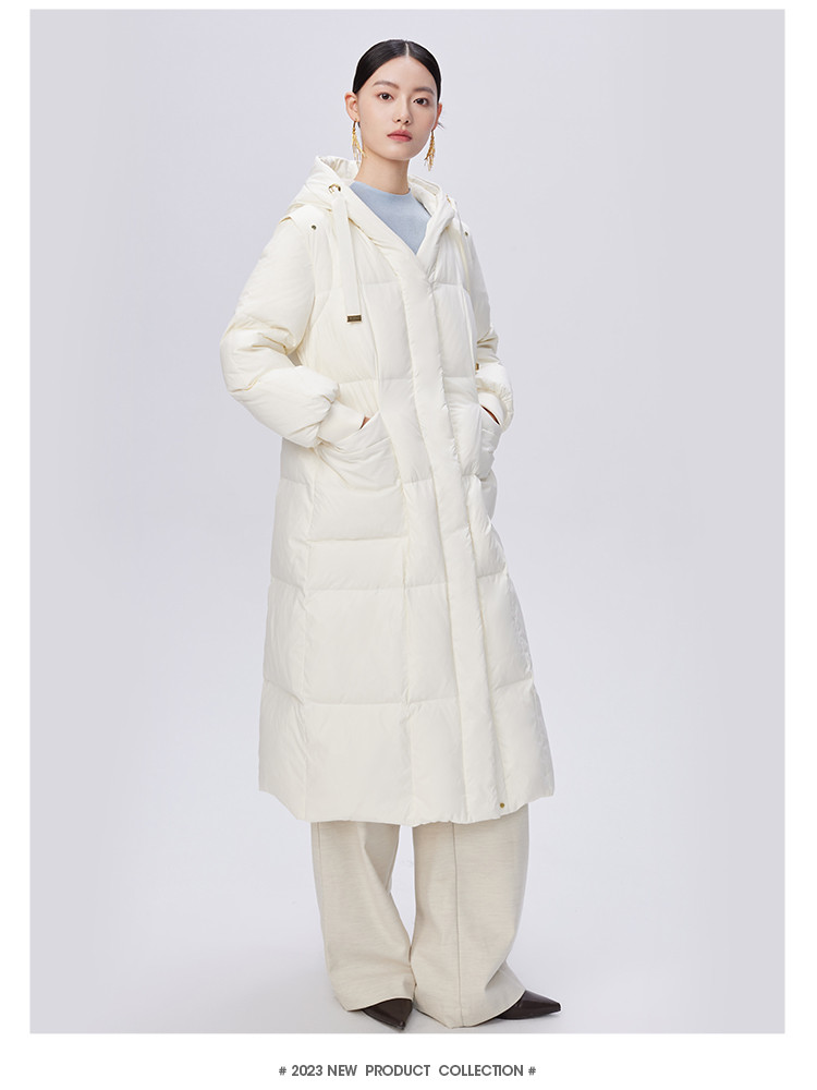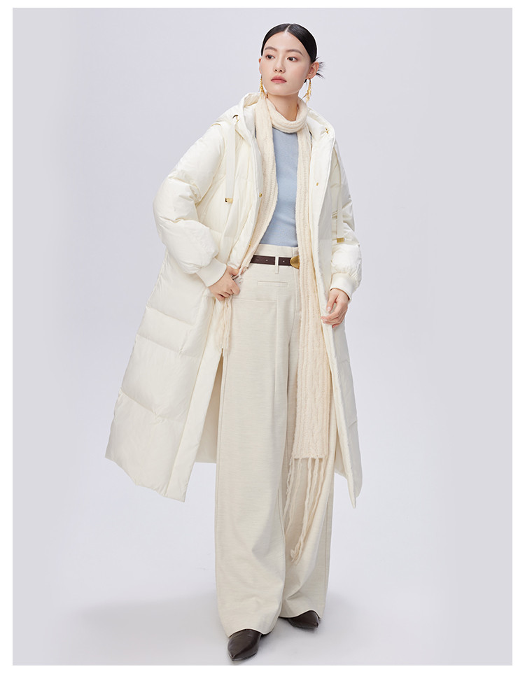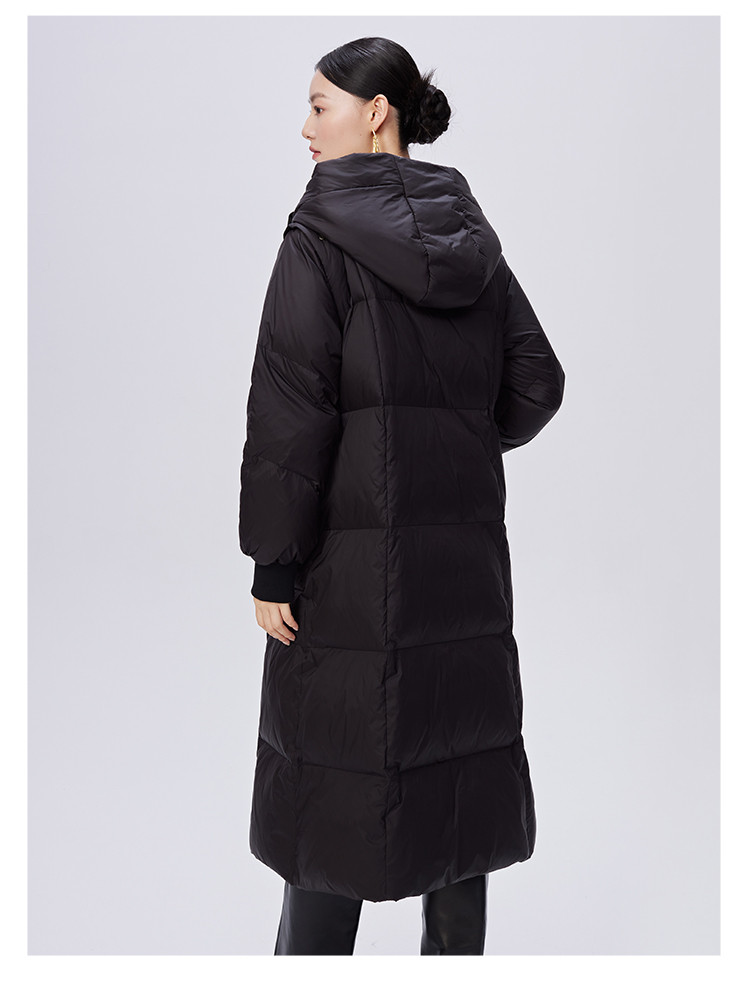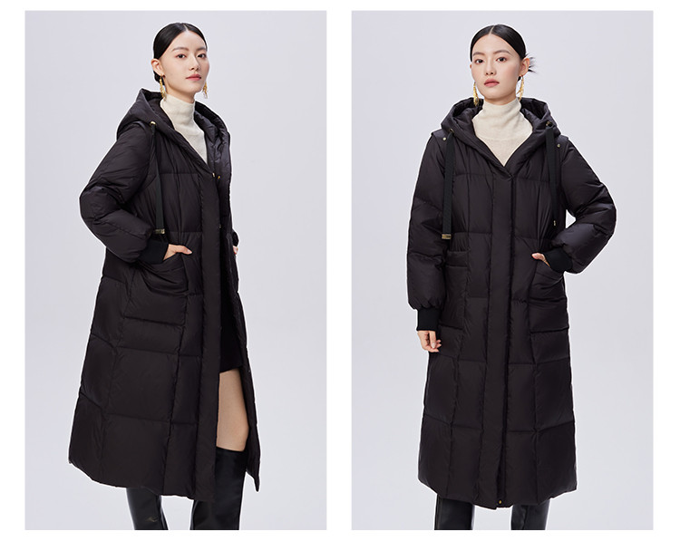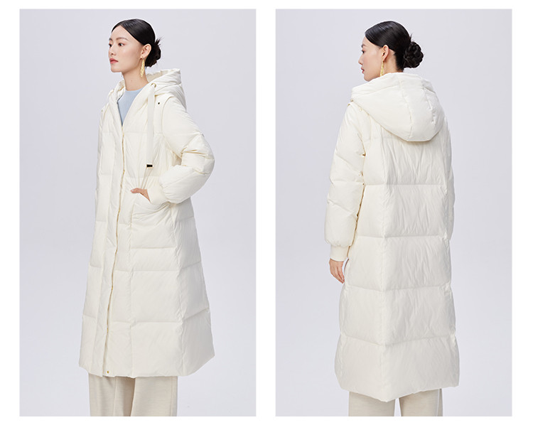 商品名称:【国色系列】连帽长款羽绒服女冬季御寒保暖过膝高充鹅绒服外套女 019350