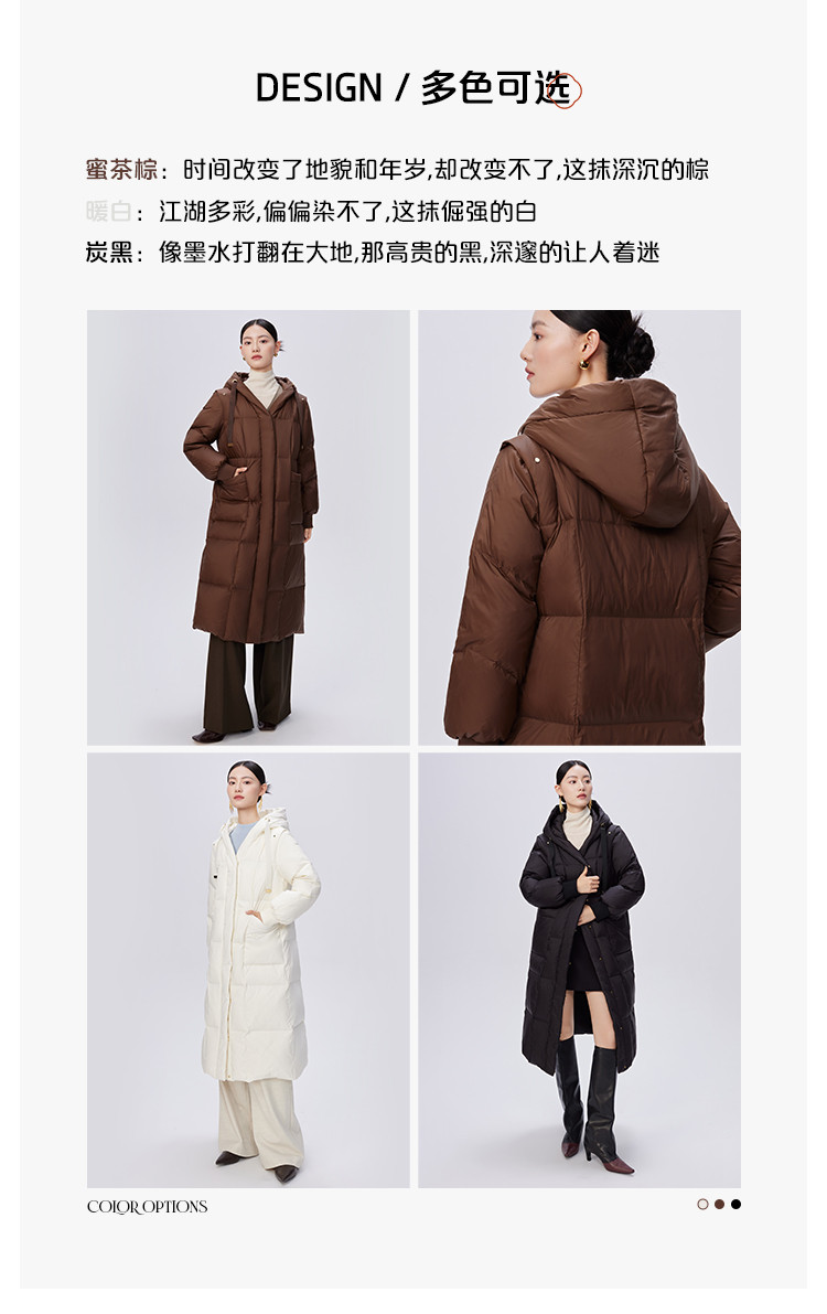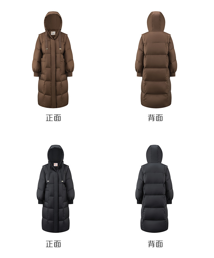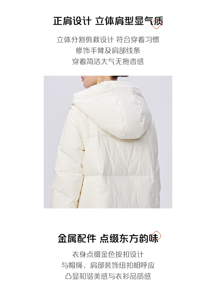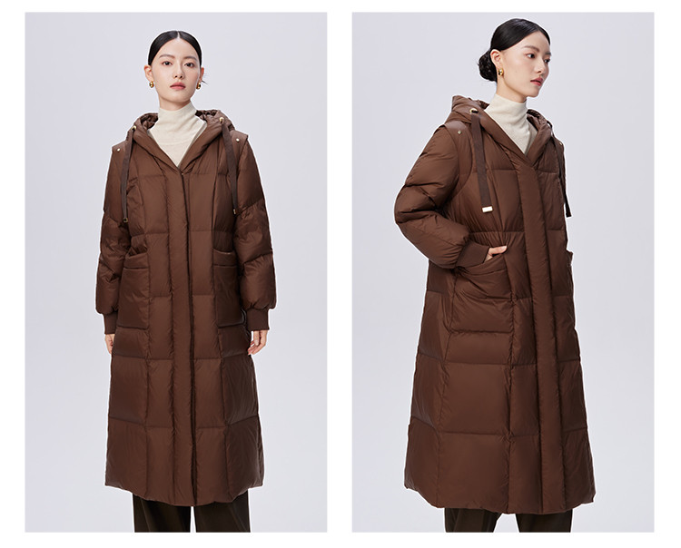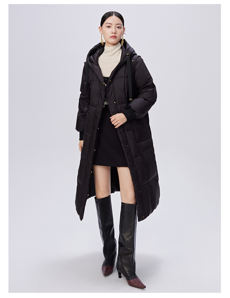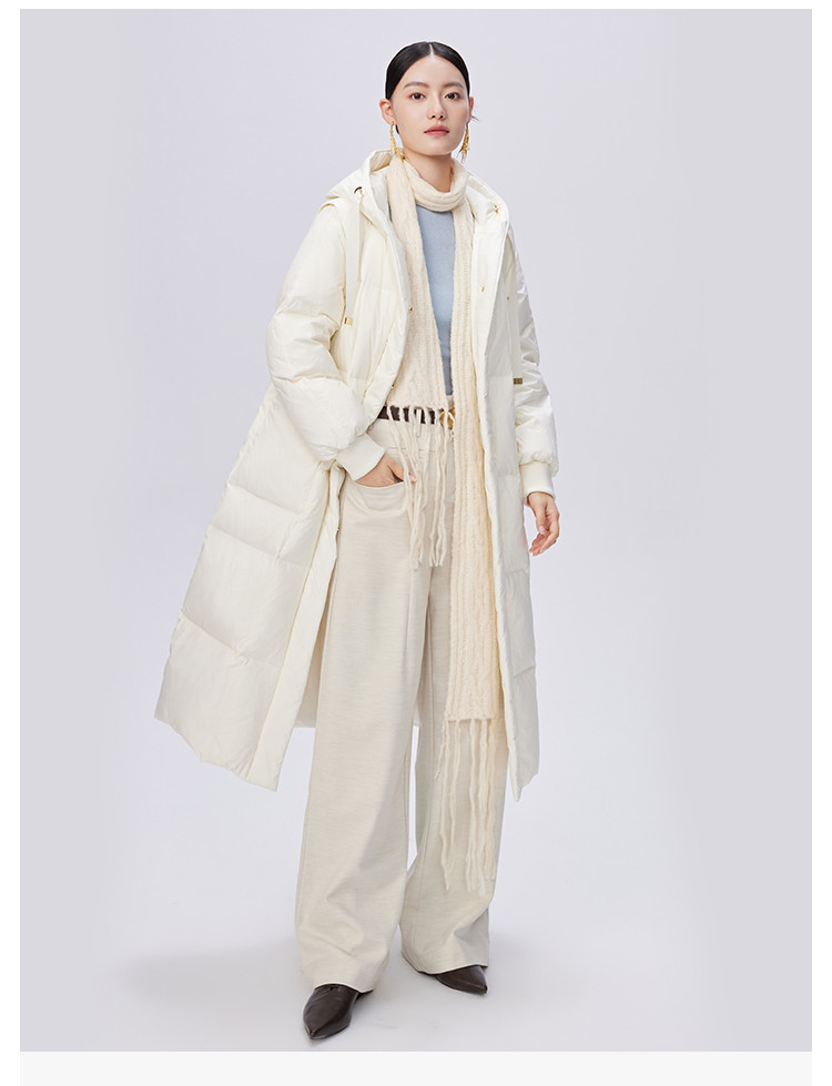 商品名称:【国色系列】连帽长款羽绒服女冬季御寒保暖过膝高充鹅绒服外套女 019350