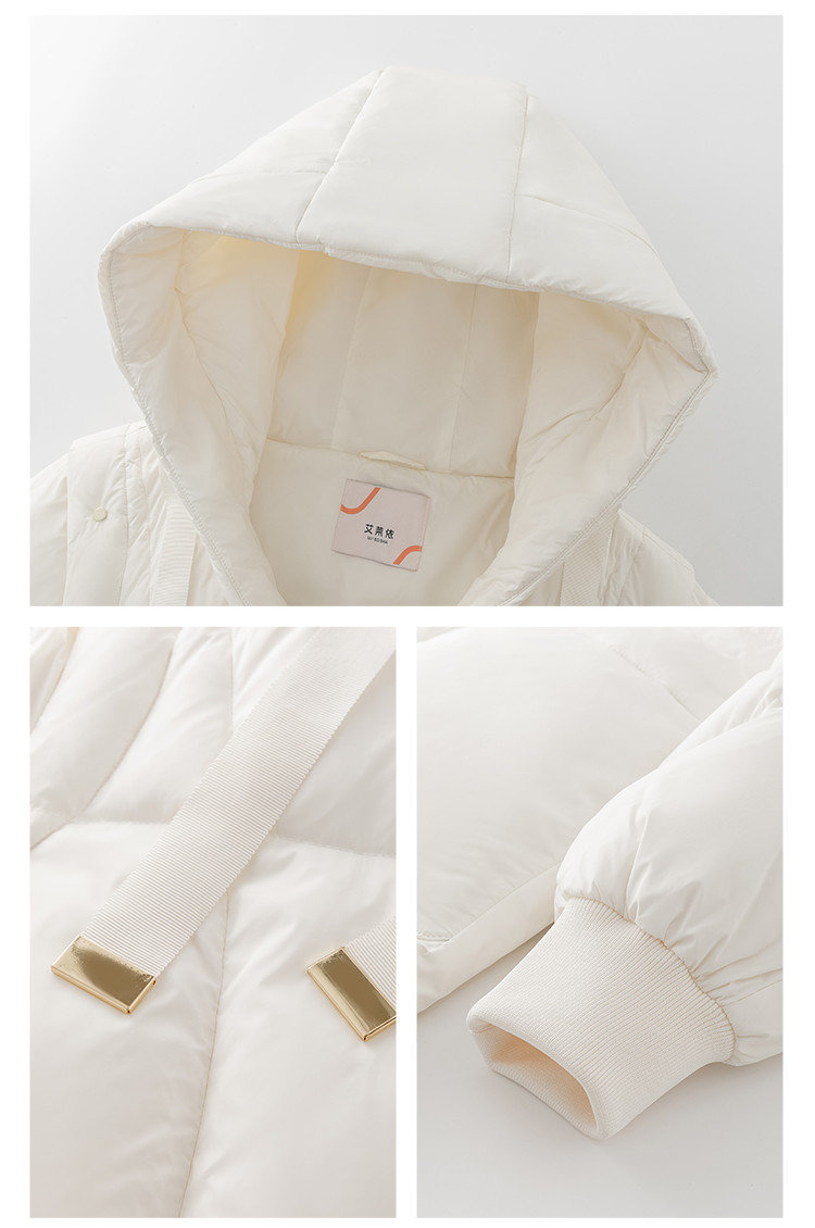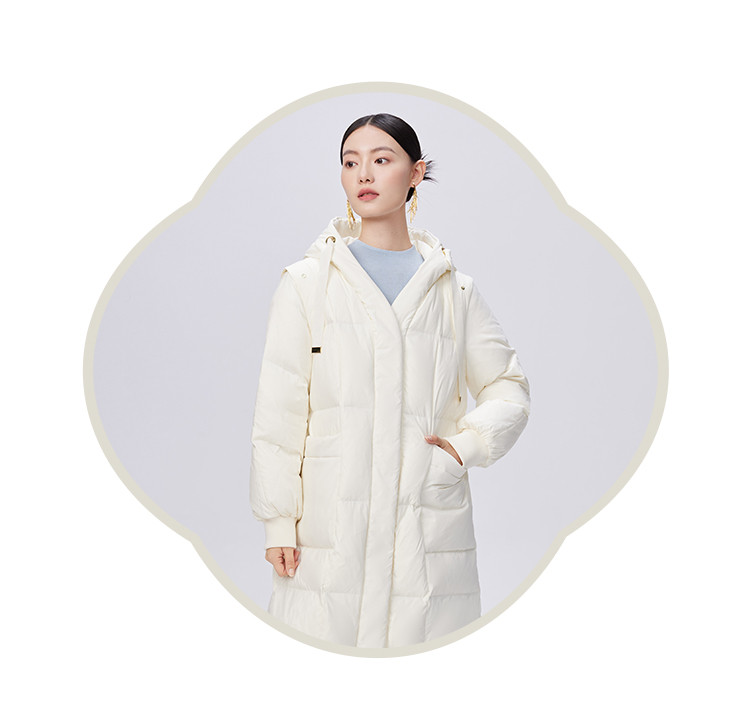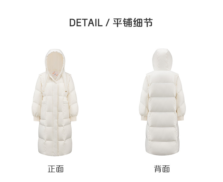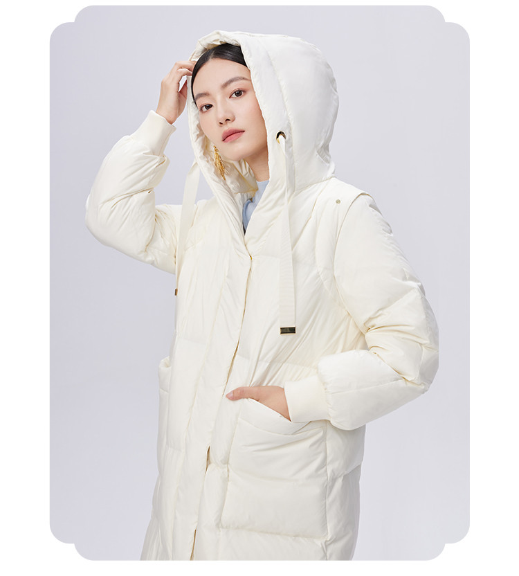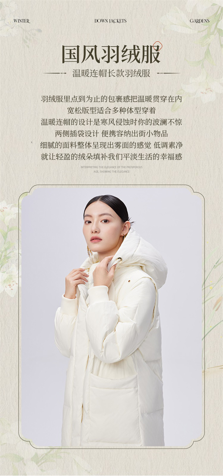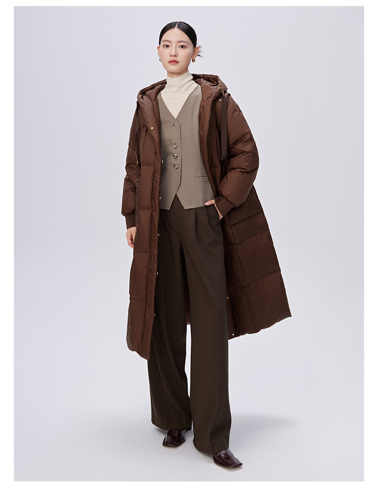 商品名称:【国色系列】连帽长款羽绒服女冬季御寒保暖过膝高充鹅绒服外套女 019350