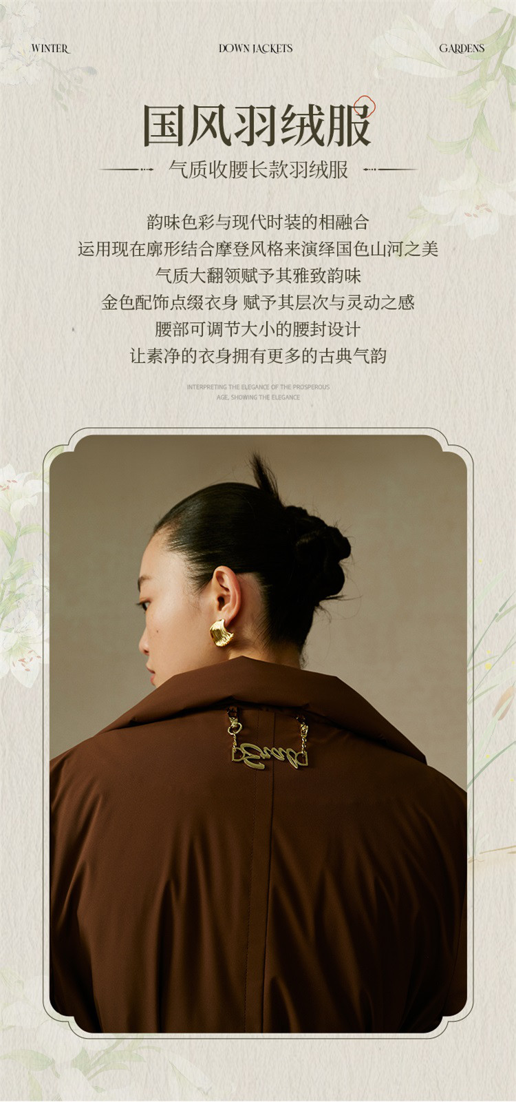 商品名称:【国风系列】鹅绒羽绒服女反季特卖过膝长款时尚新中式收腰外套 635414