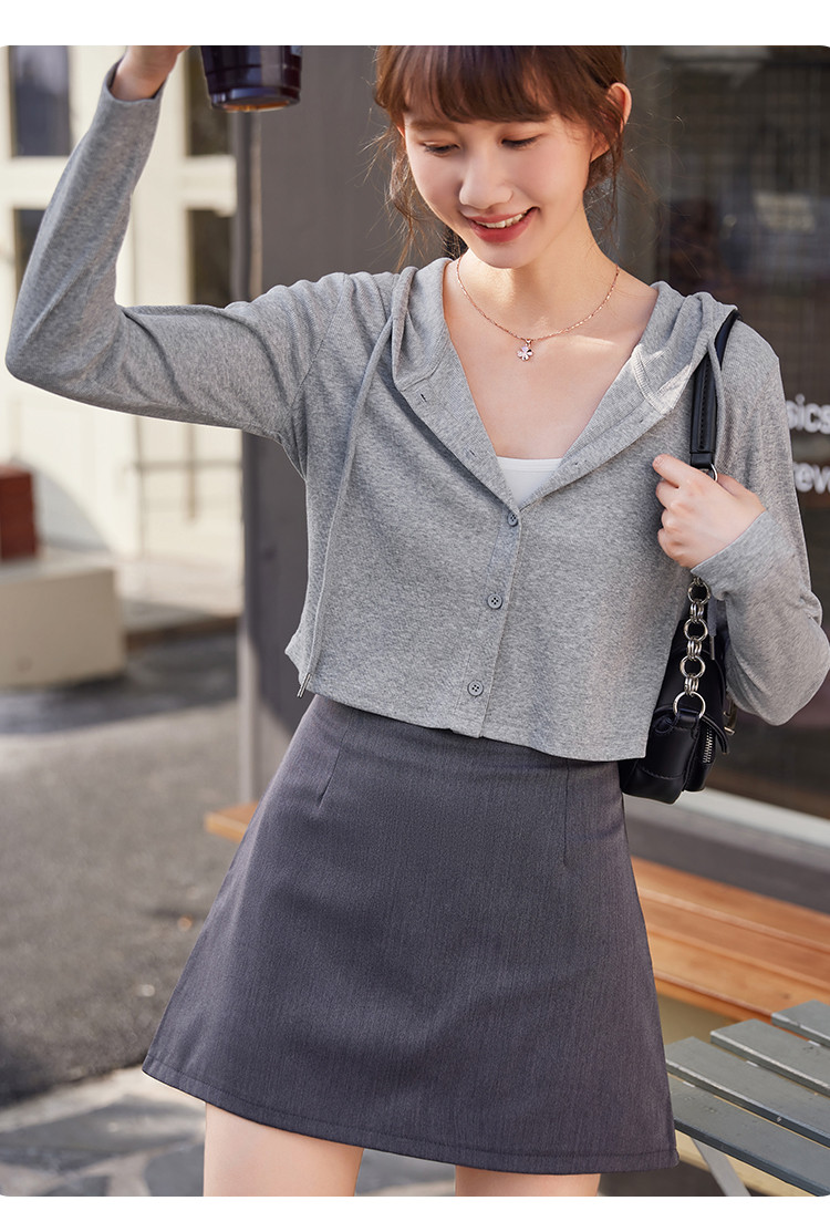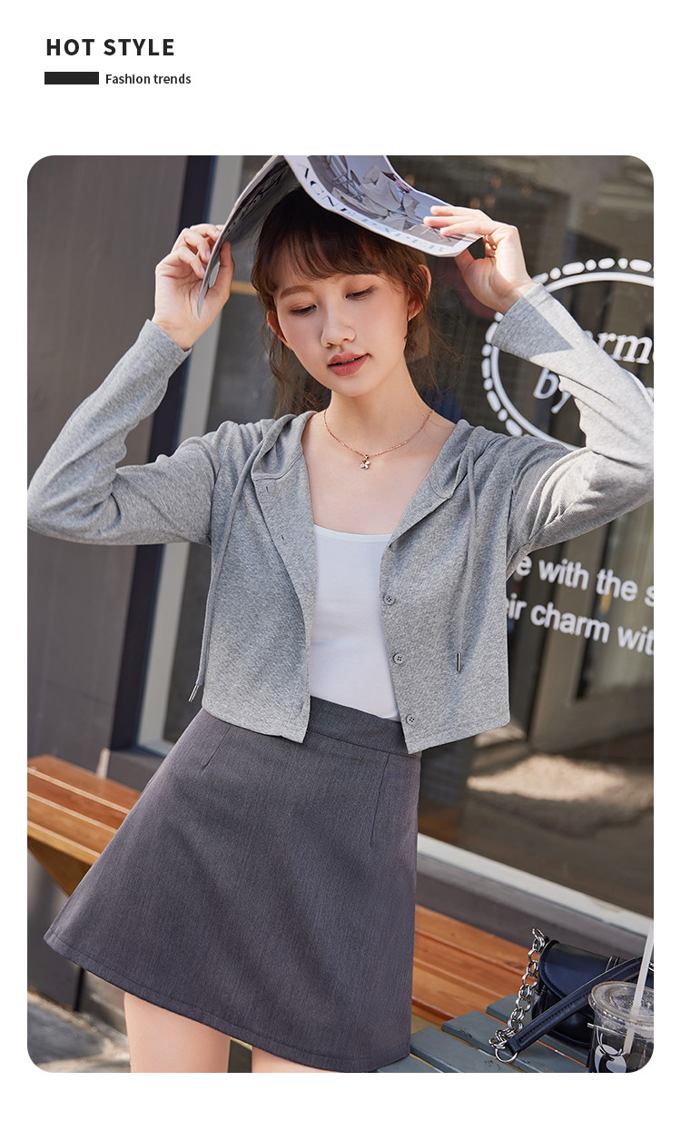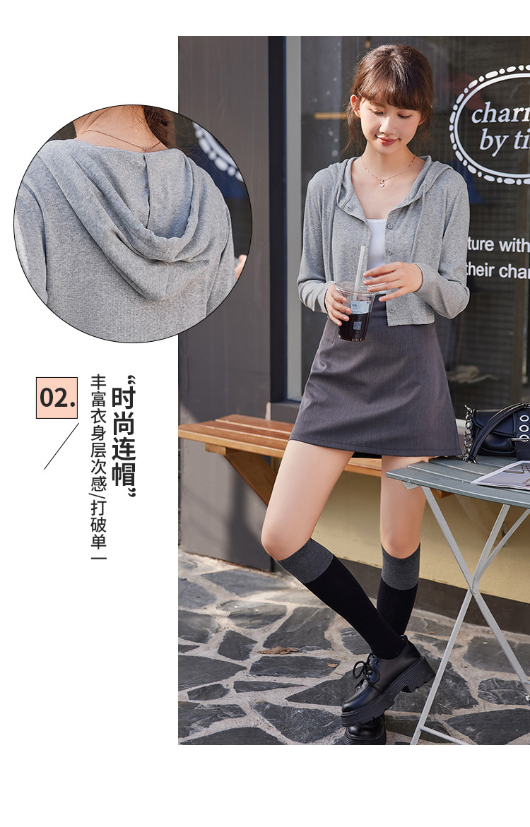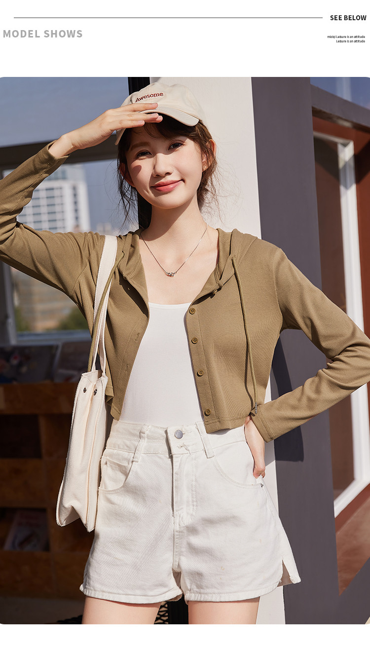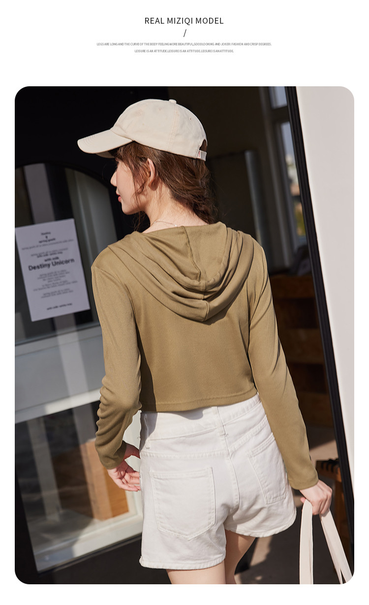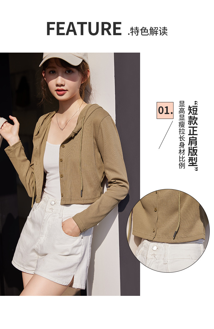 商品名称:米子旗夏季连帽纽扣短款薄款开衫外套长袖遮阳上衣 641306