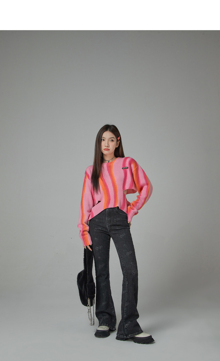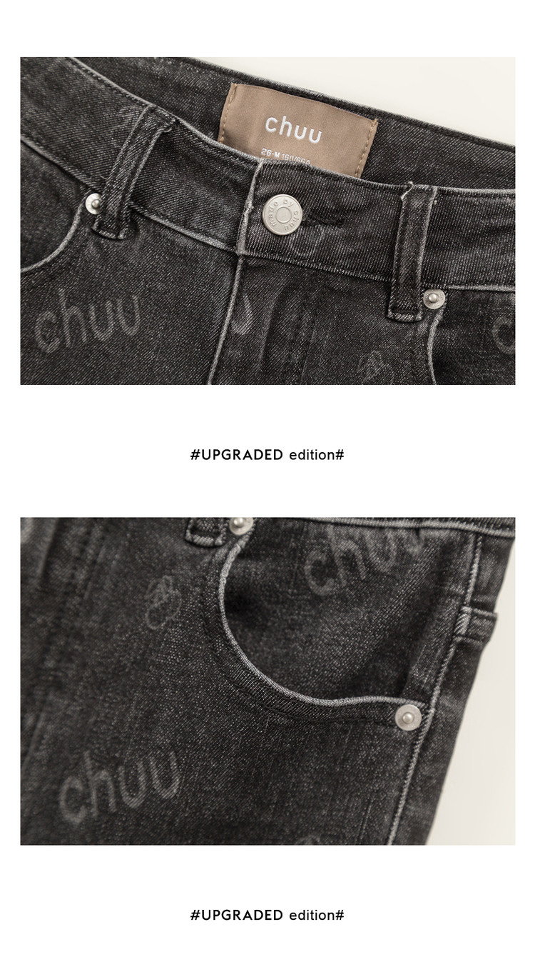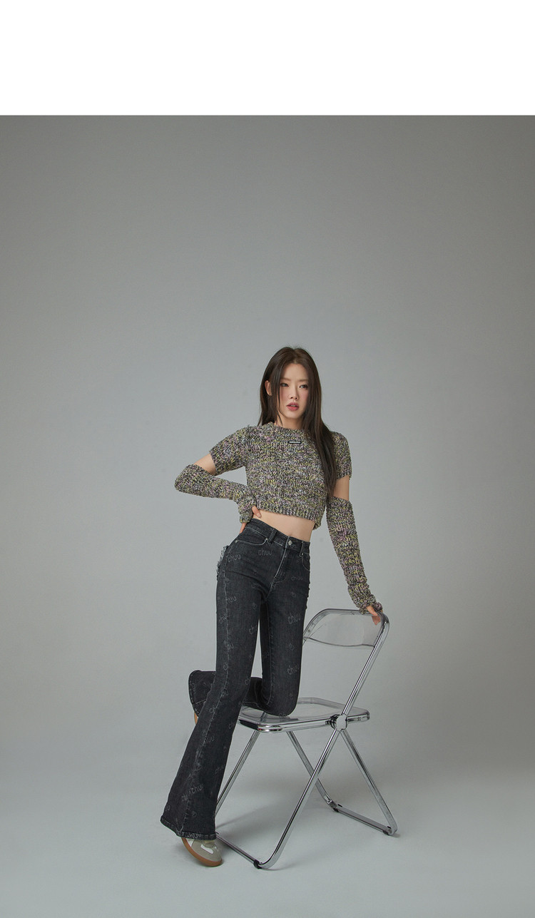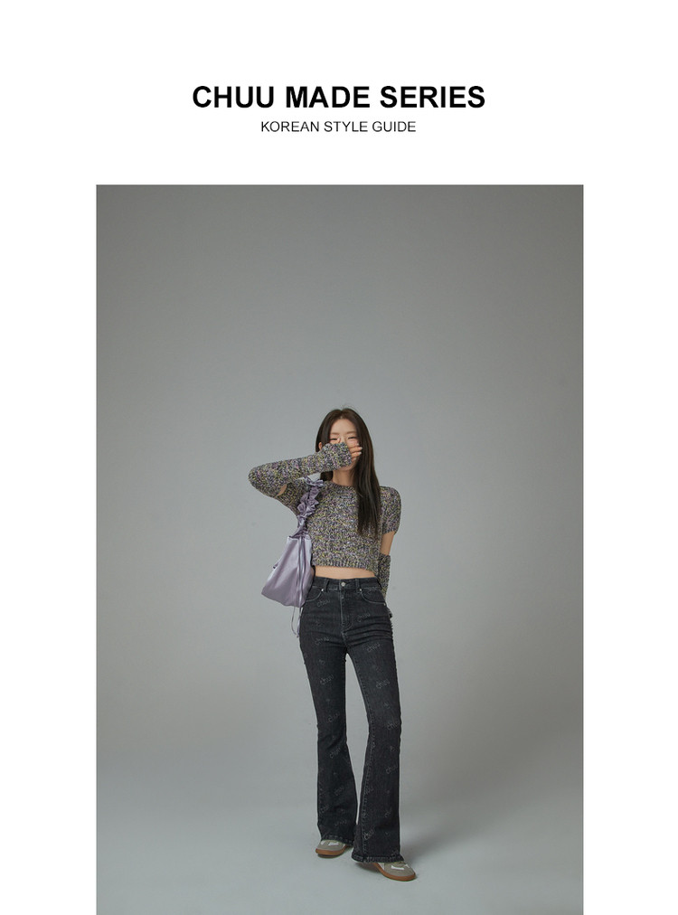 字母高腰牛仔裤女春秋设计感百搭微喇裤长裤子 354643