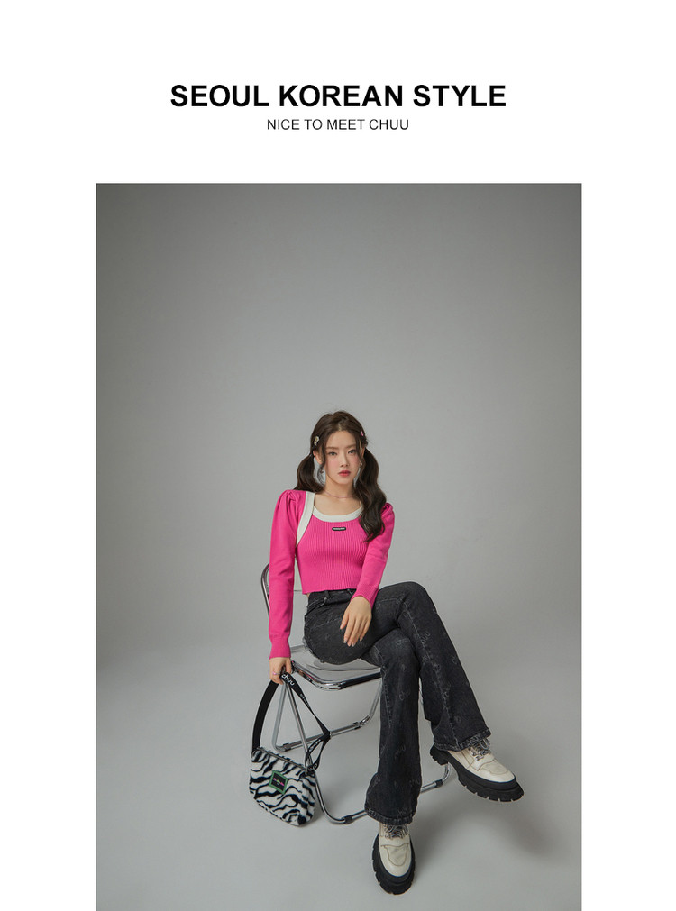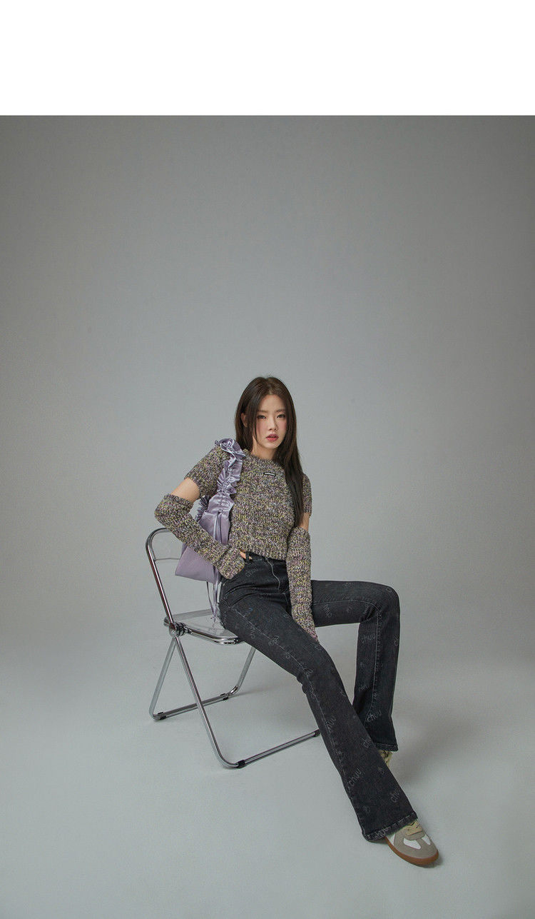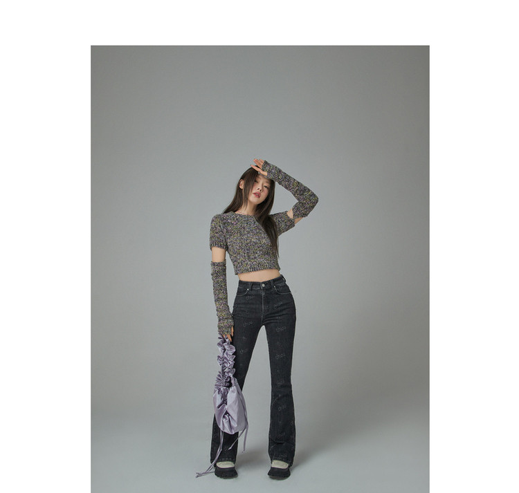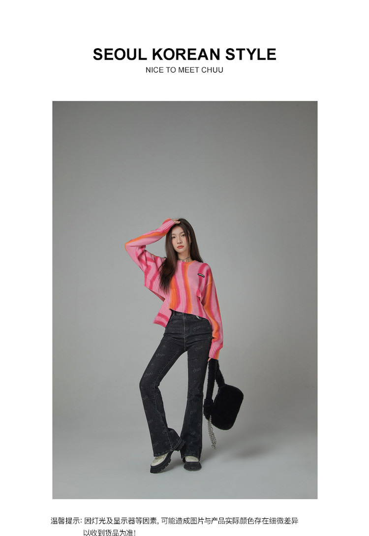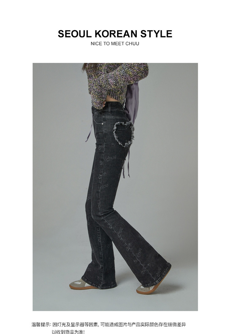 商品名称:字母高腰牛仔裤女春秋设计感百搭微喇裤长裤子 354643