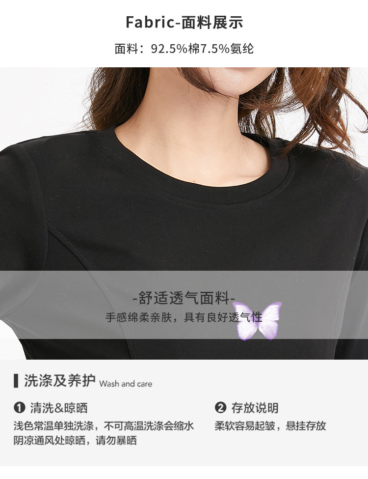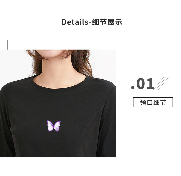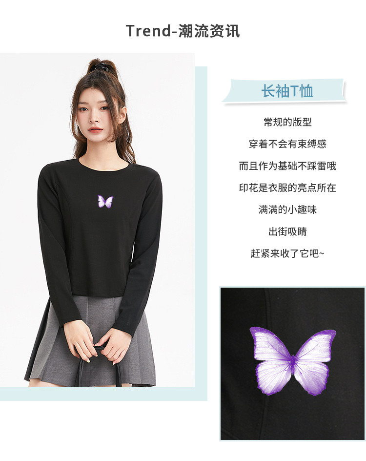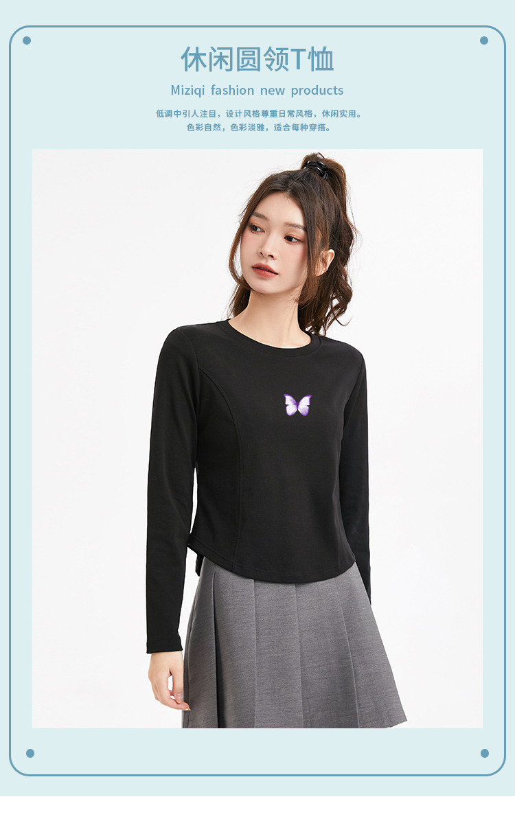 商品名称:米子旗春秋圆领T恤女撞色蝴蝶印花基础款百搭潮 426586