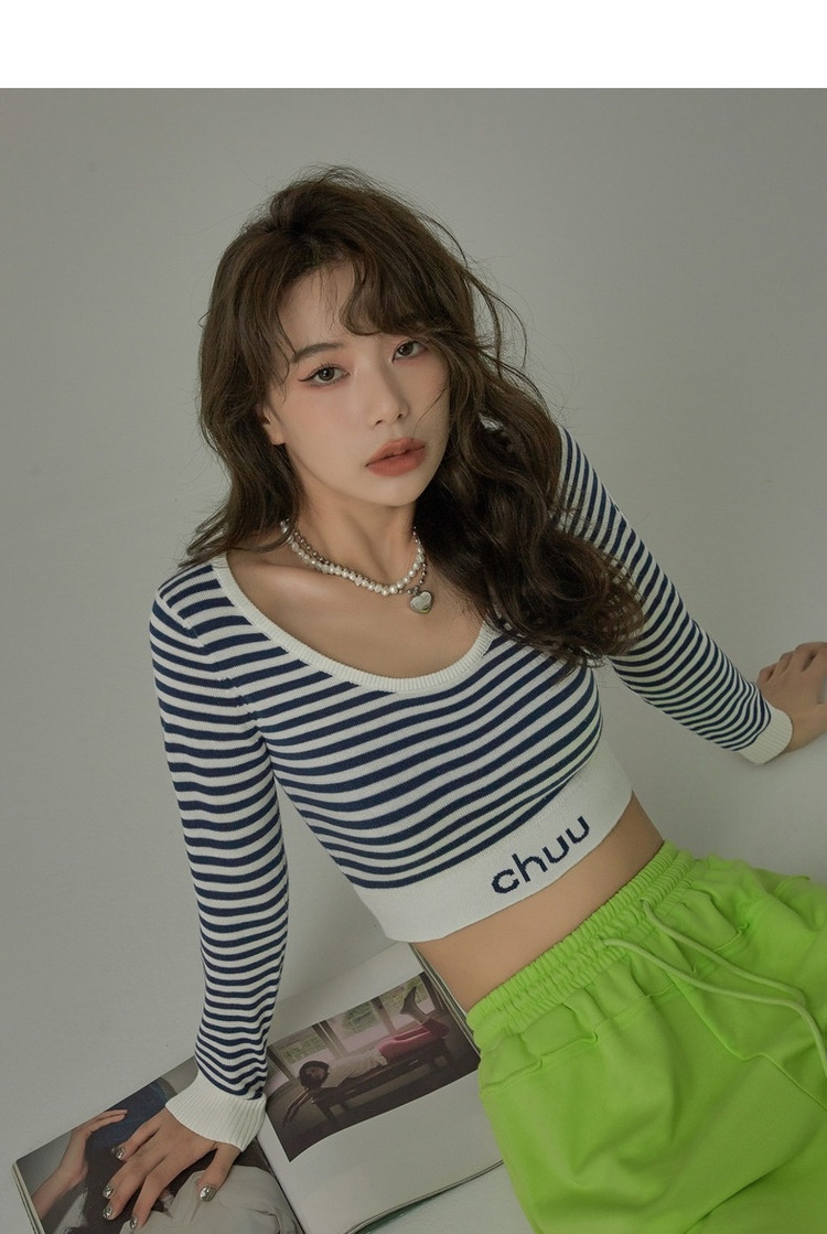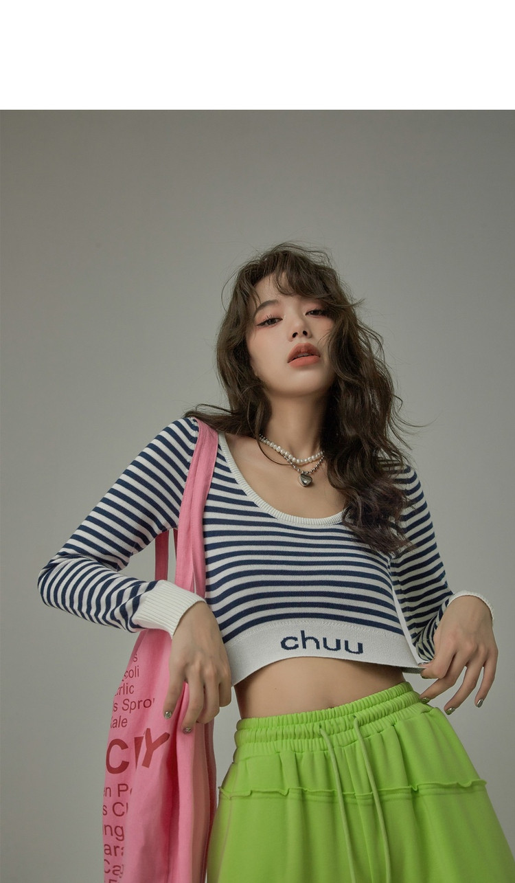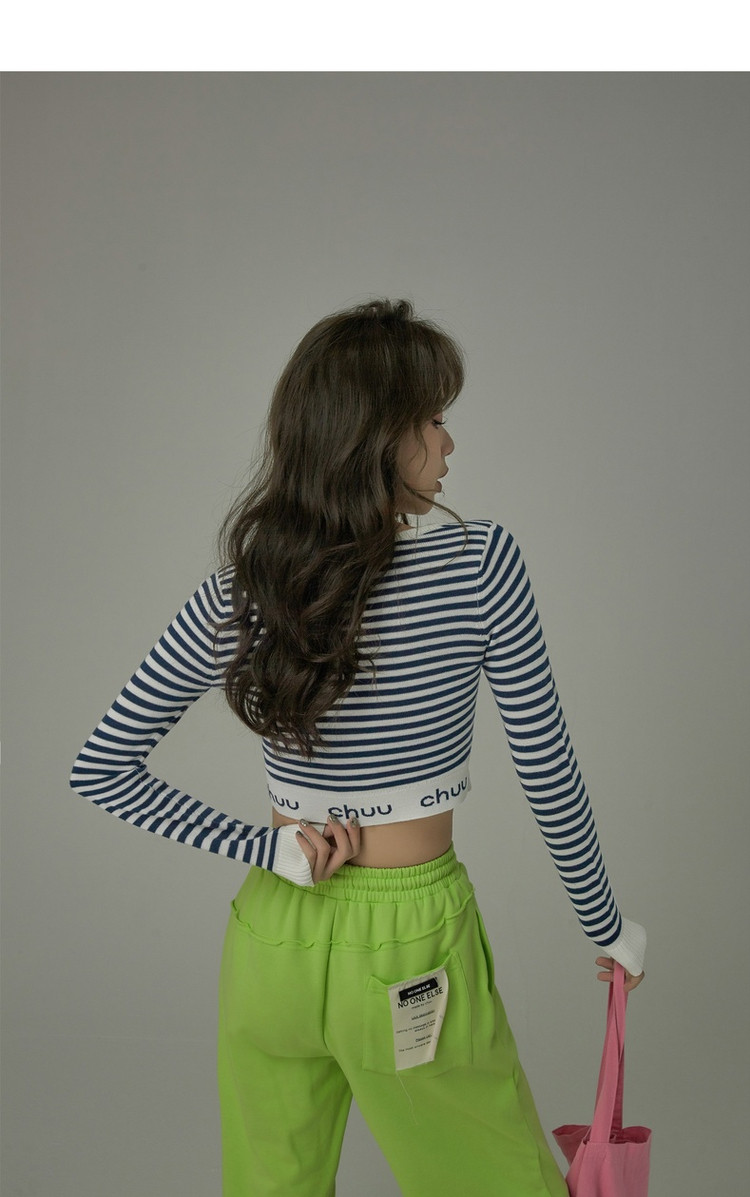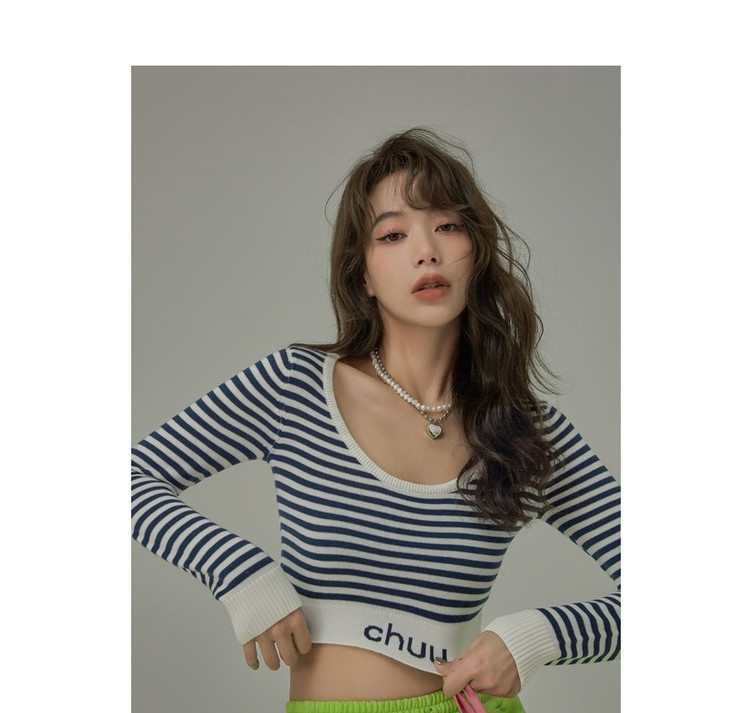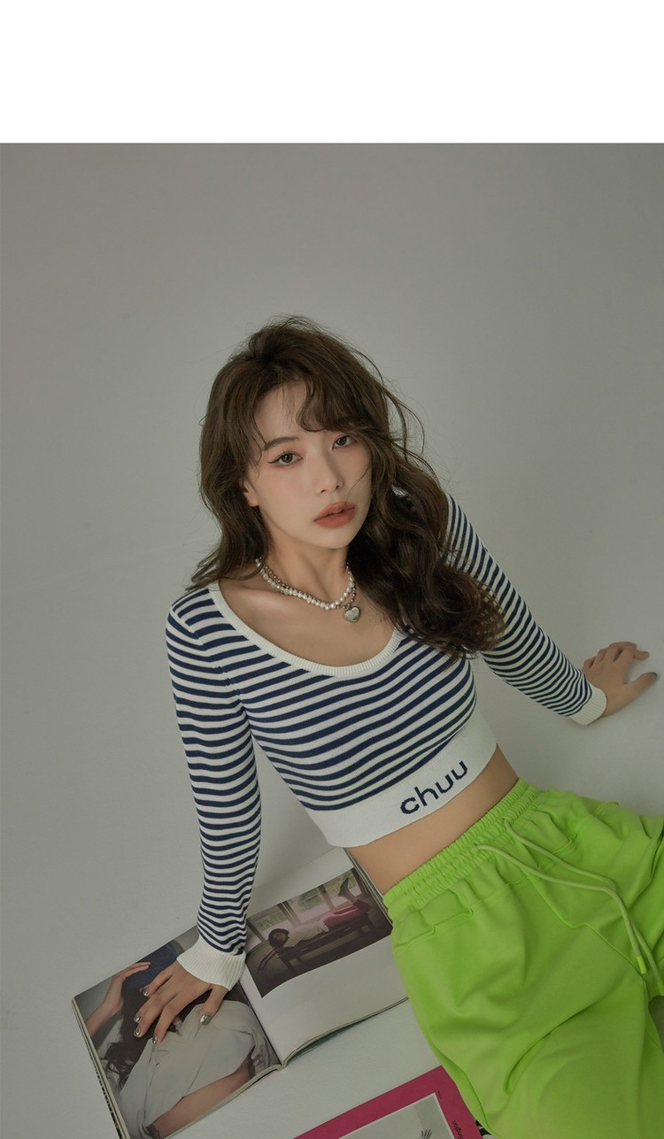 商品名称:甜辣字母针织衫女春秋条纹短款收腰修身上衣 469331