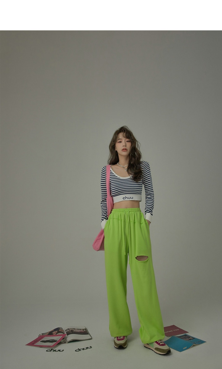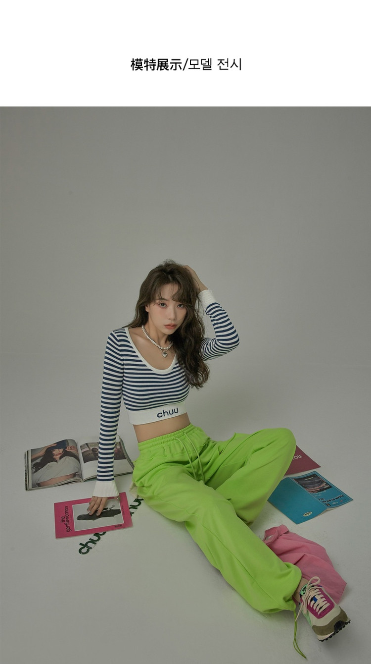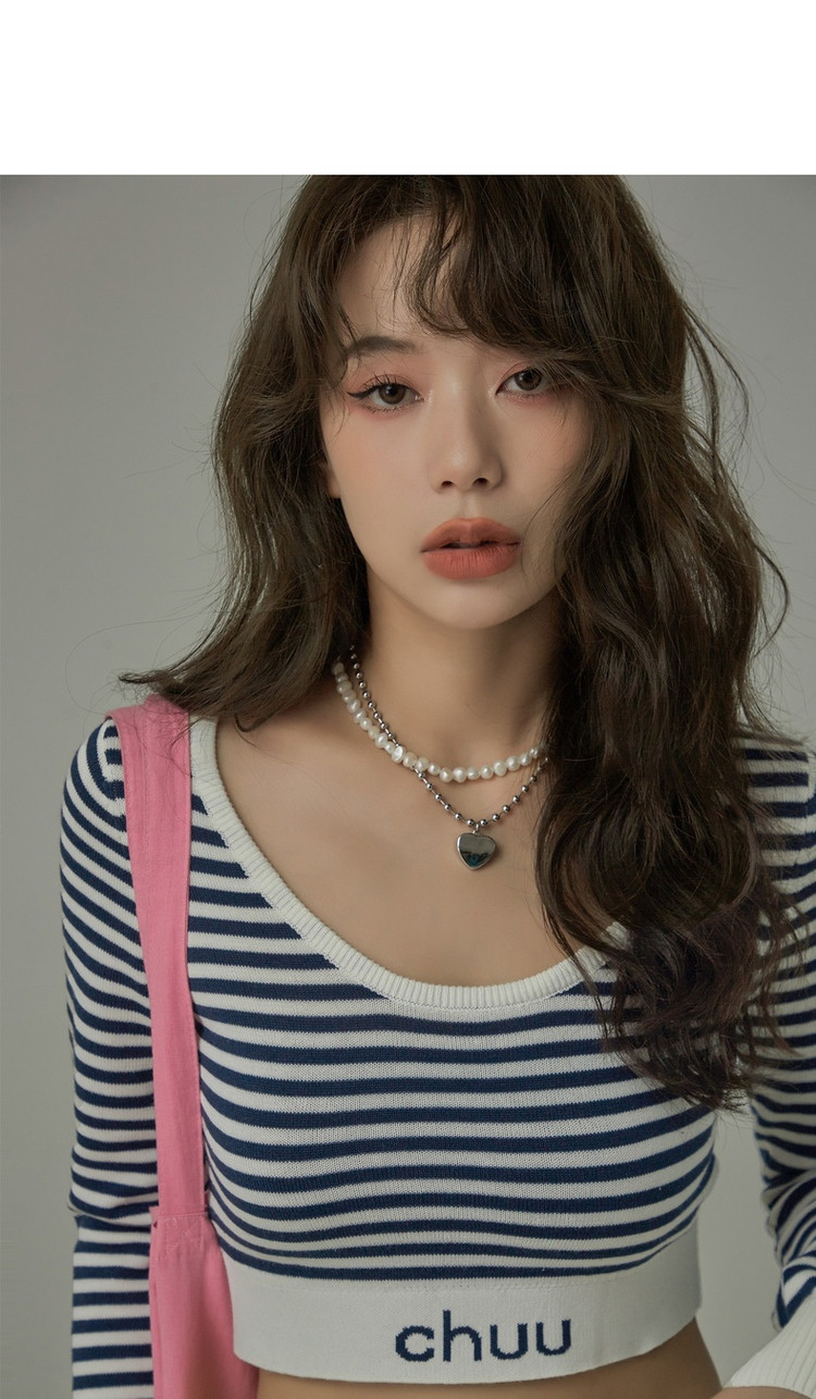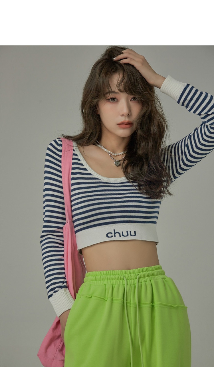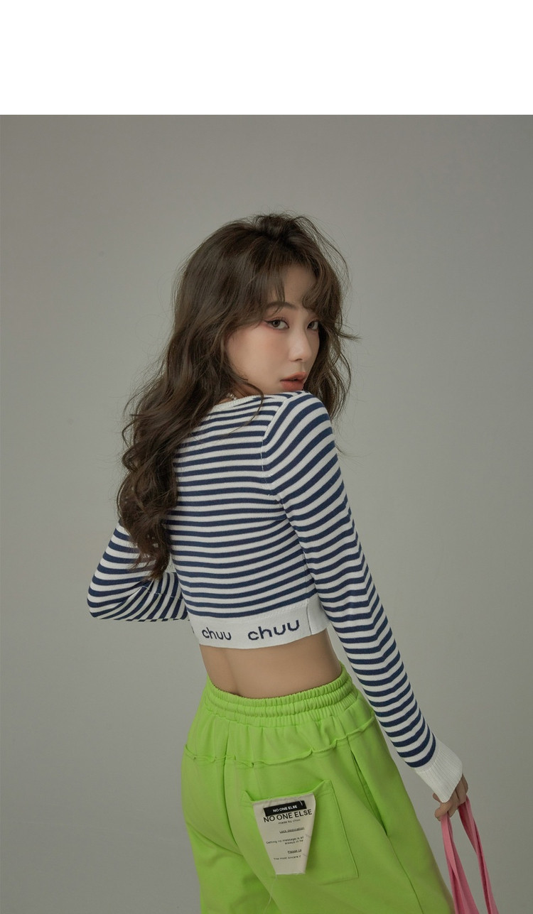 商品名称:甜辣字母针织衫女春秋条纹短款收腰修身上衣 469331