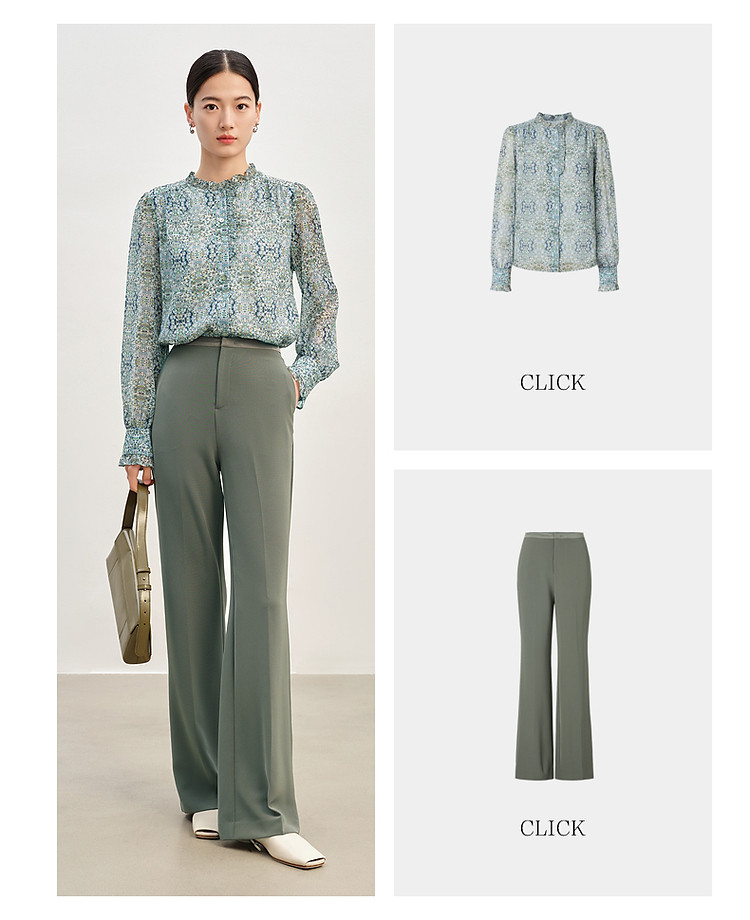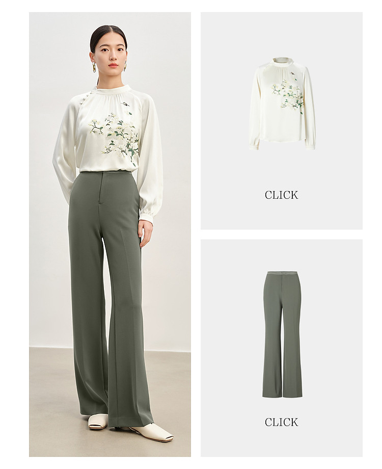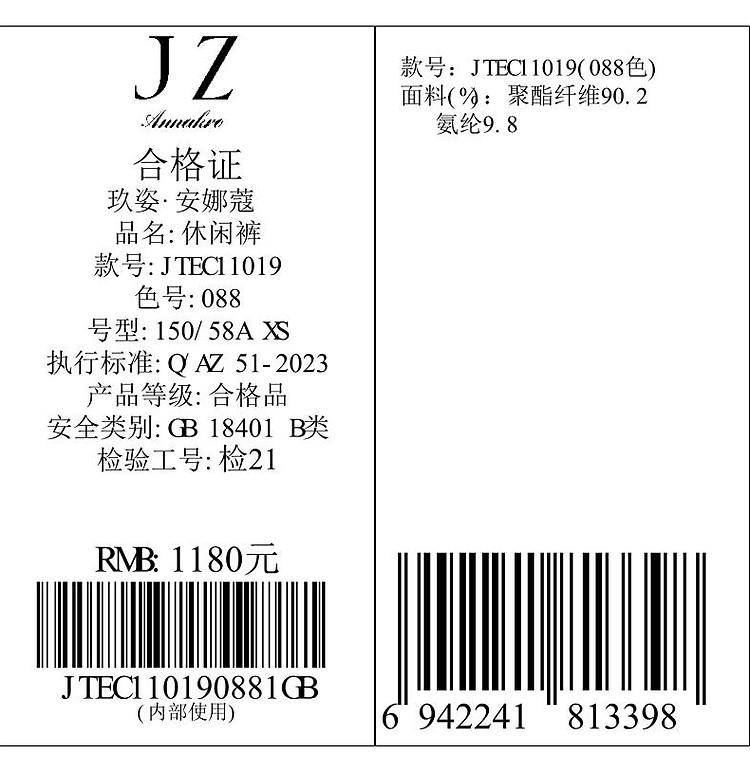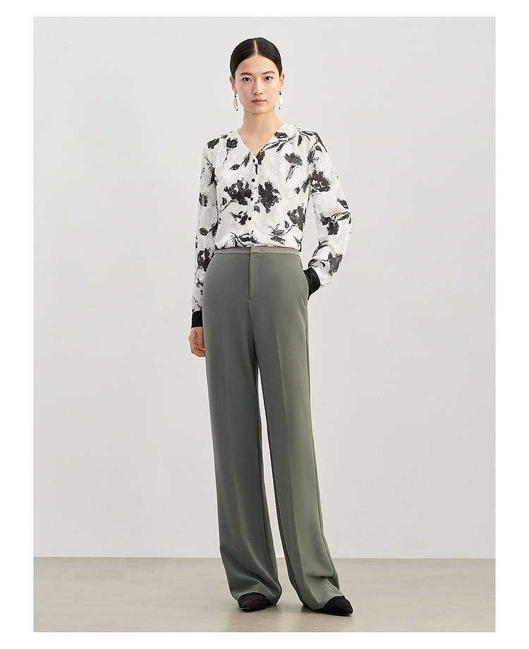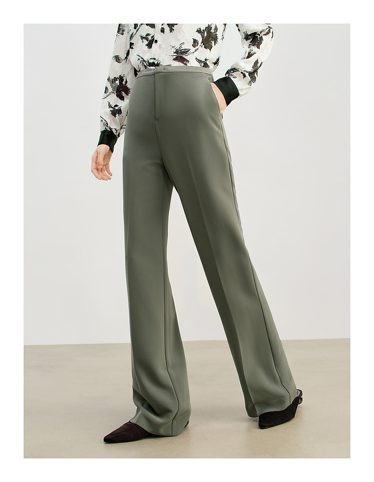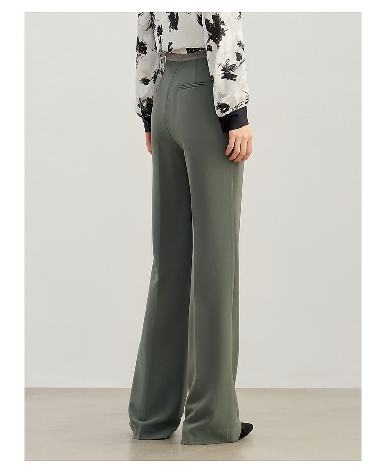 玖姿旗下安娜蔻系列简约通勤侧拉拼接微喇休闲裤女春季 371468