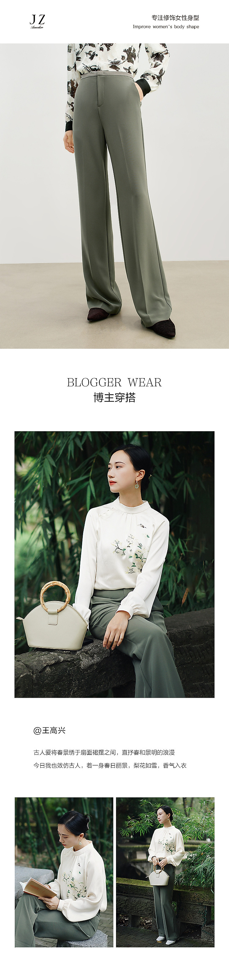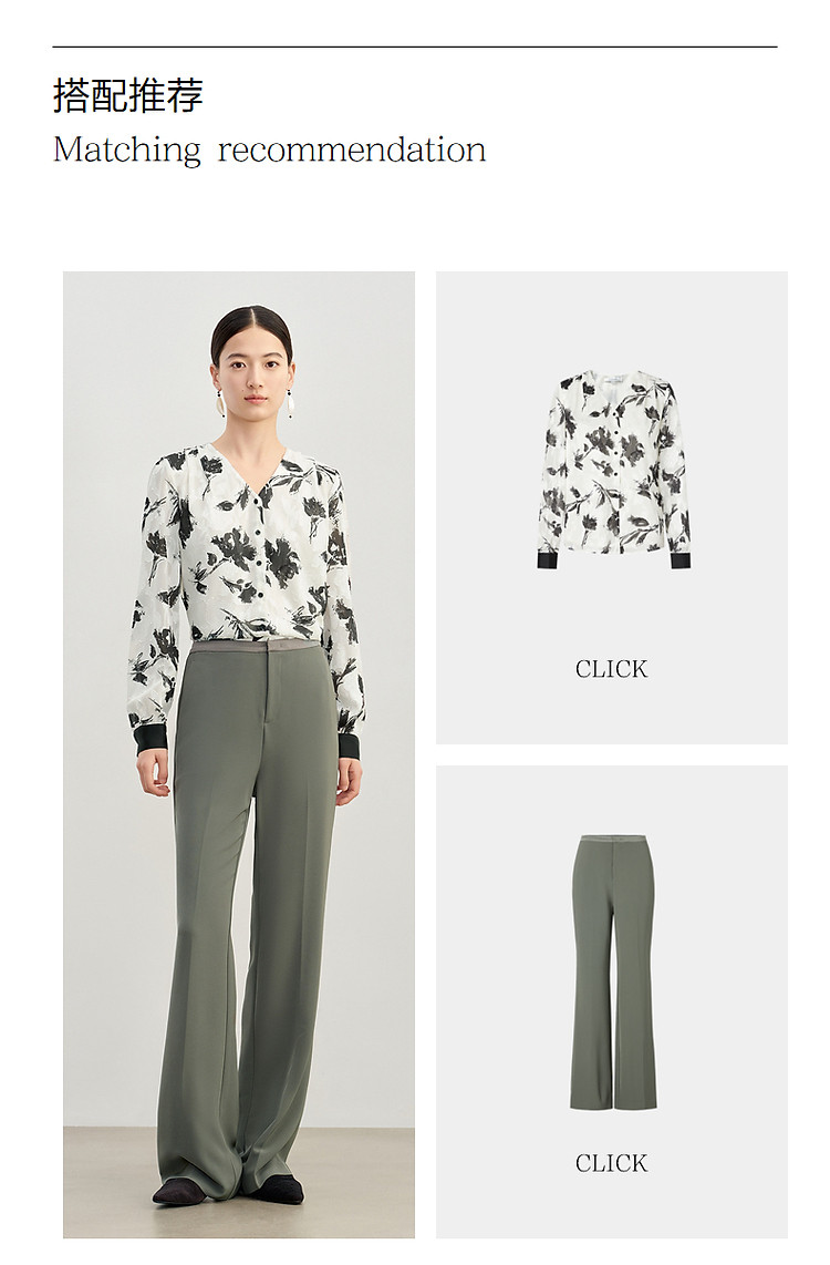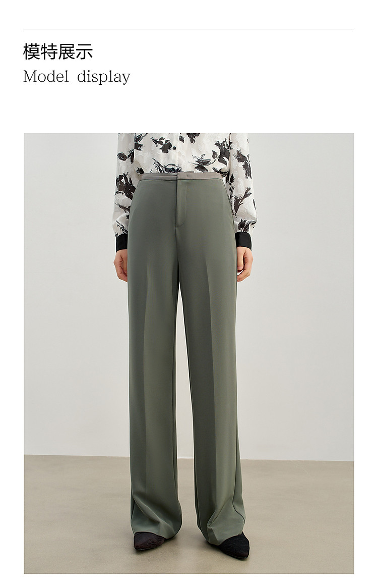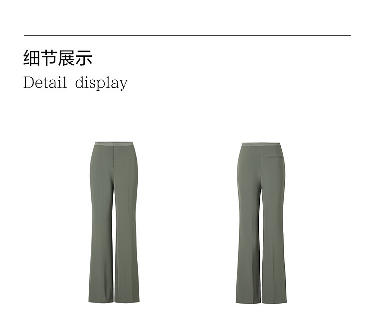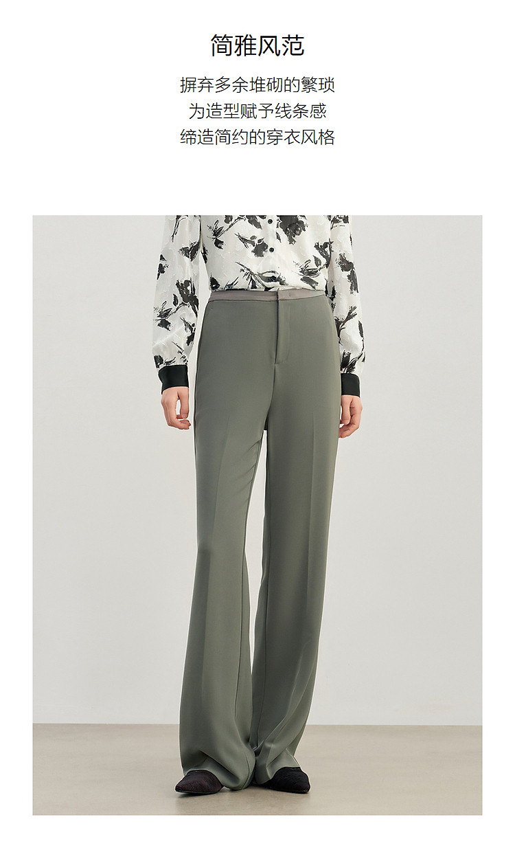 商品名称:玖姿旗下安娜蔻系列简约通勤侧拉拼接微喇休闲裤女春季 371468