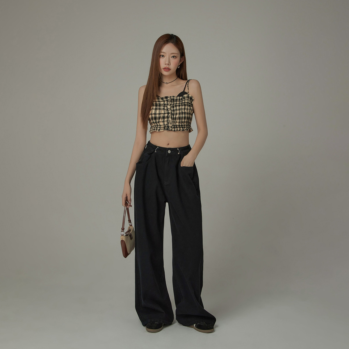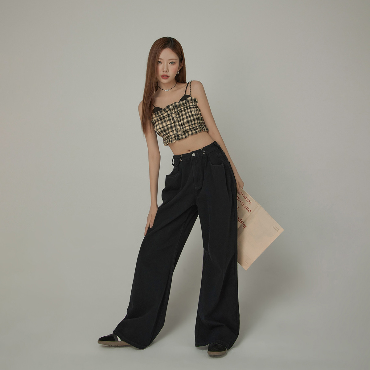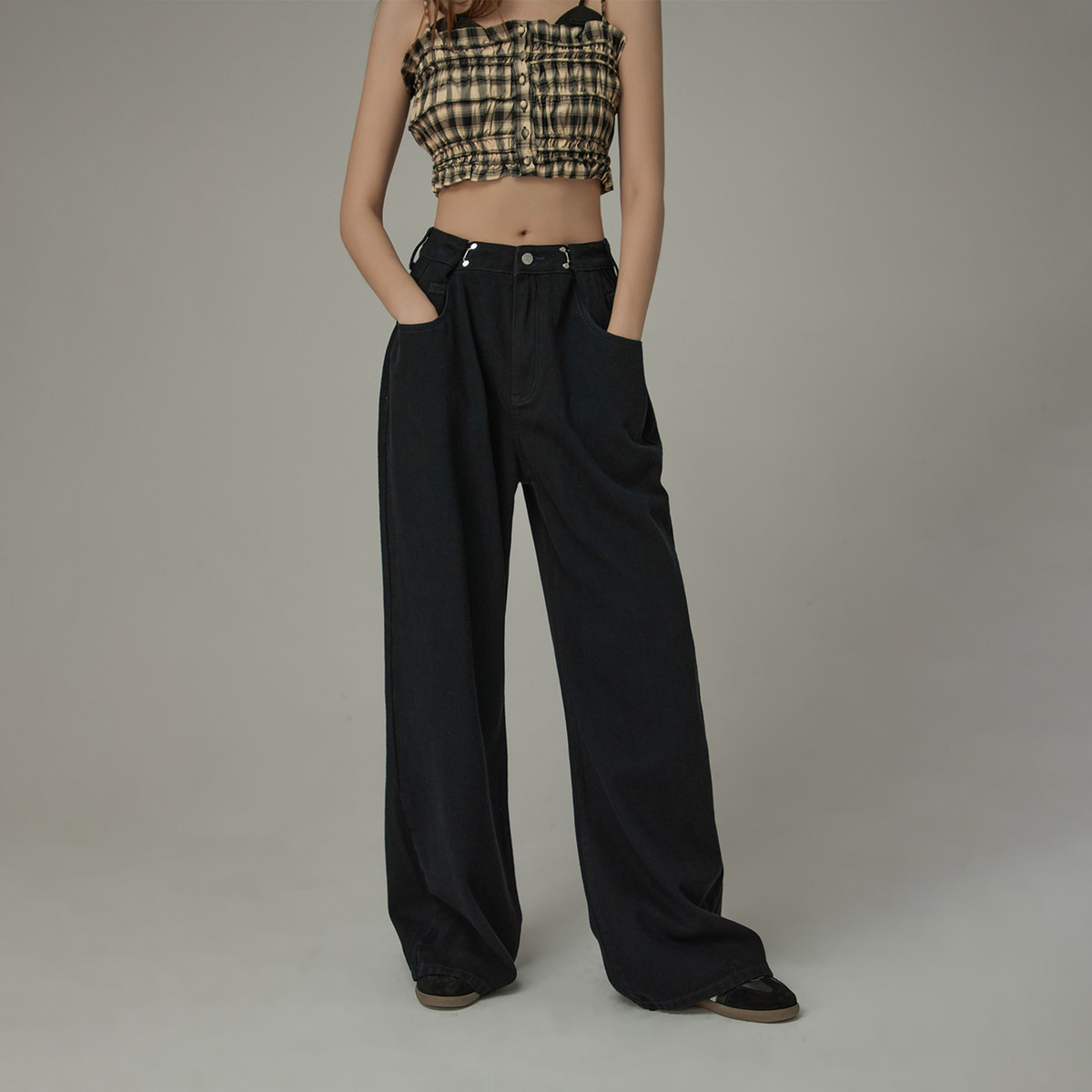 商品名称:可调节高腰阔腿休闲裤女春秋宽松拖地长裤 620883