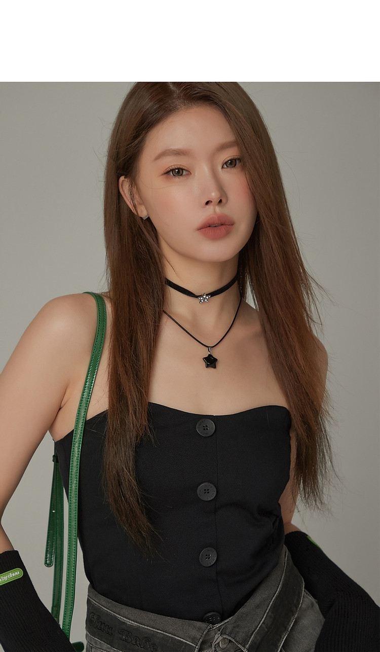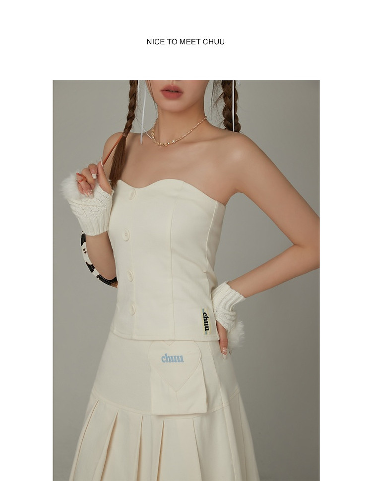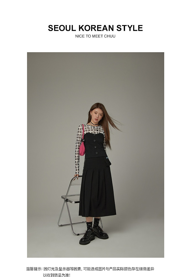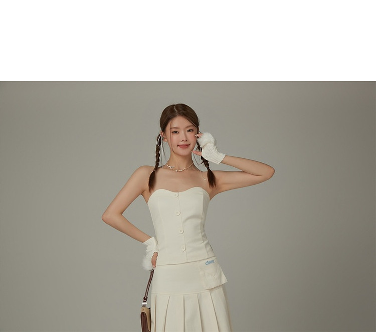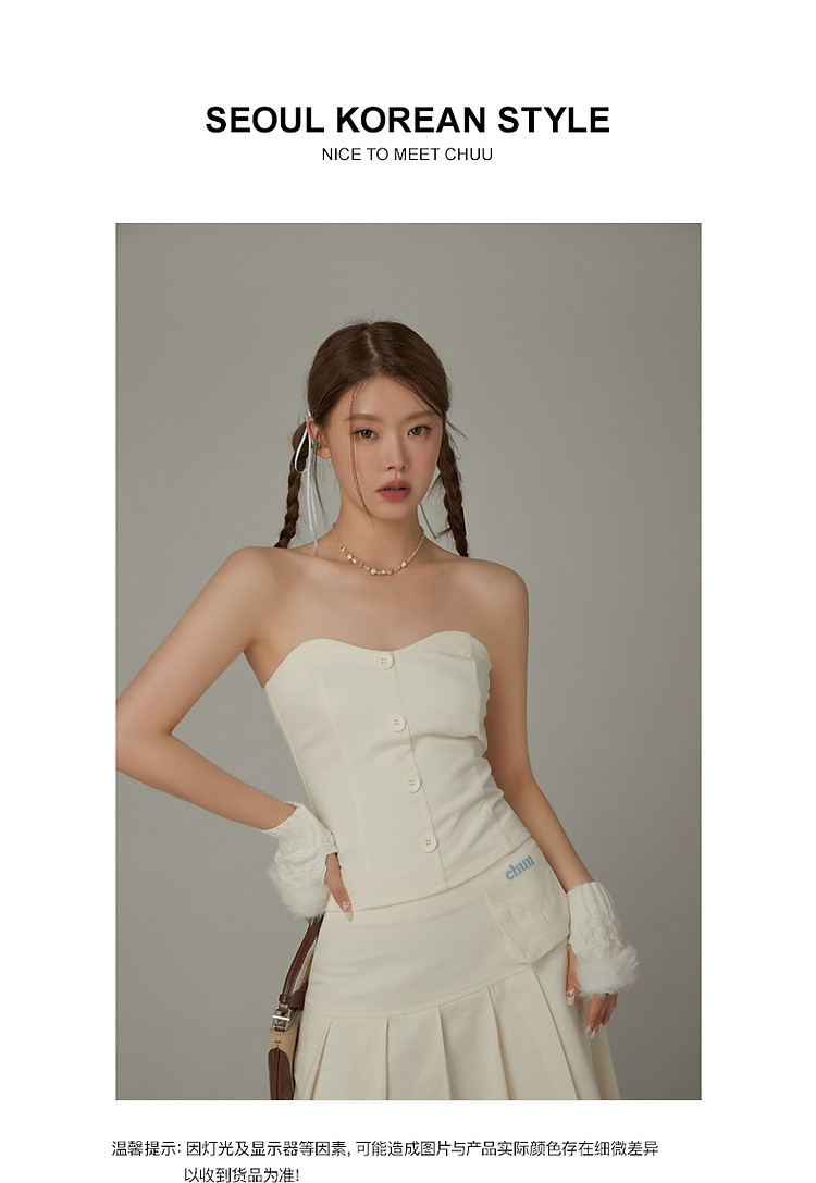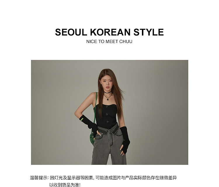 商品名称:CHUU字母刺绣抹胸背心女春秋纽扣无袖辣妹修身上衣 441363