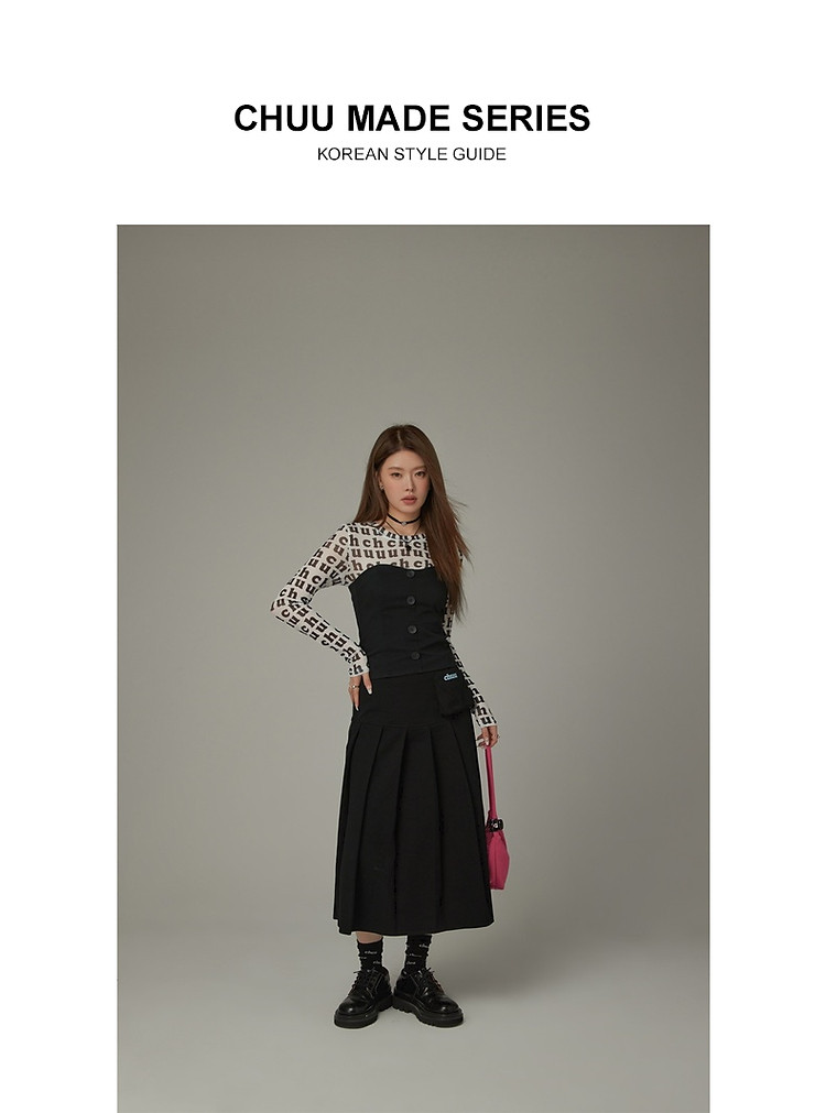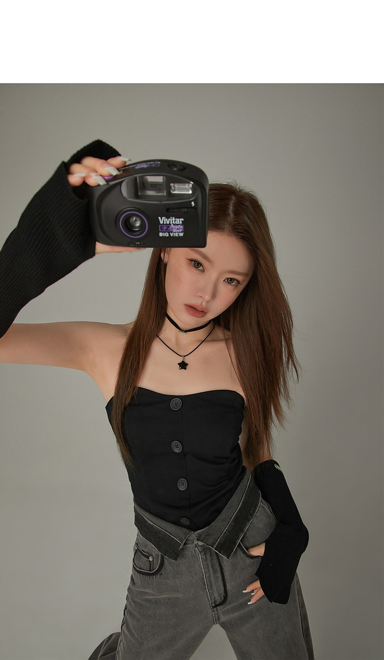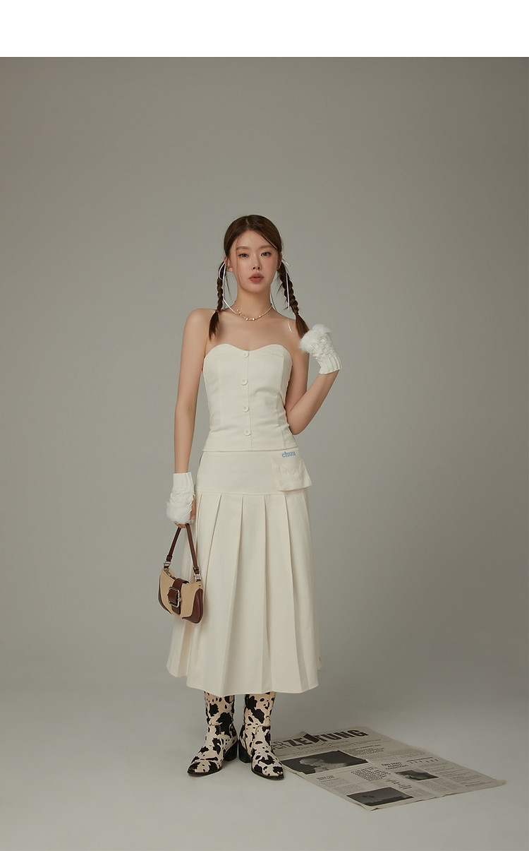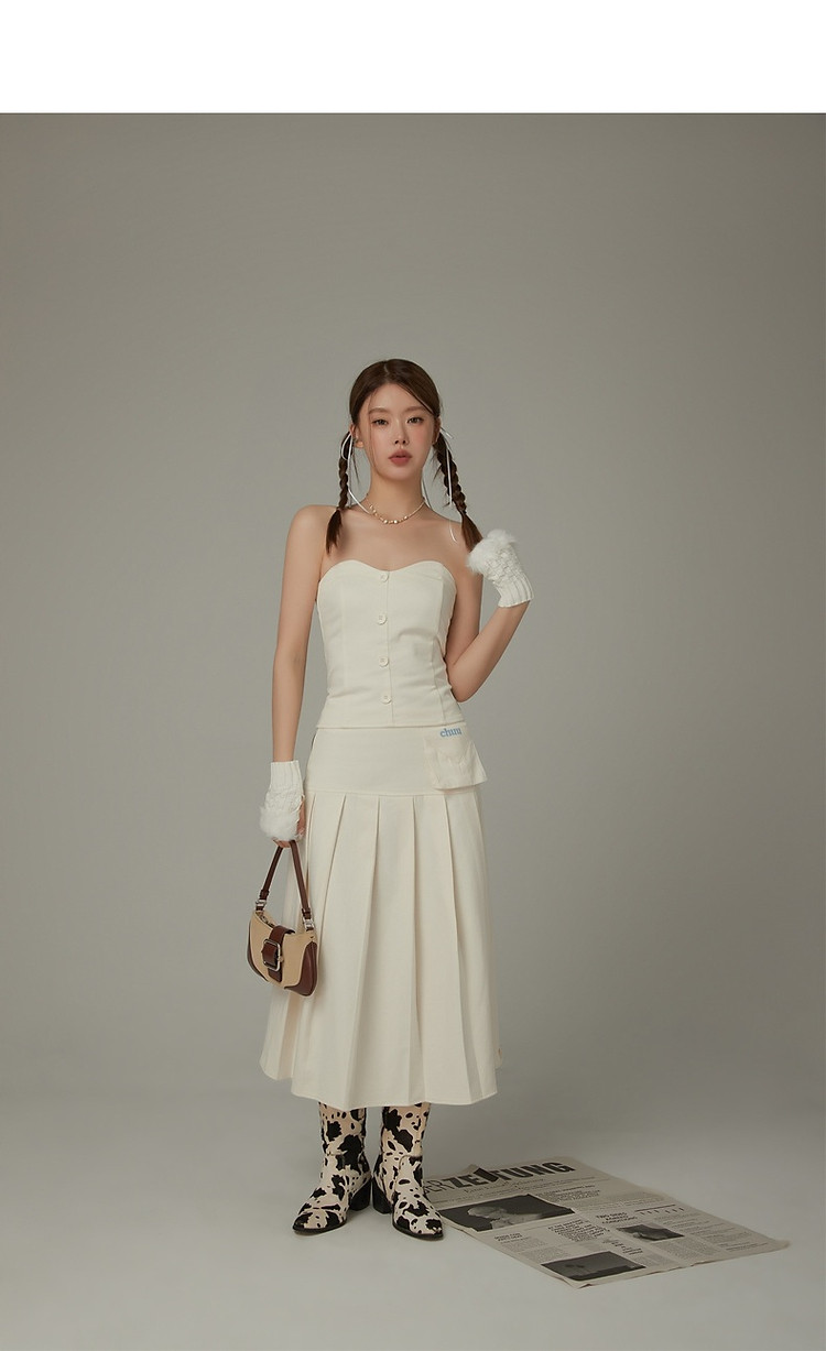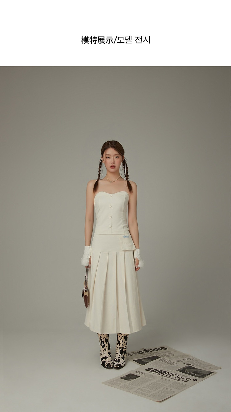 商品名称:CHUU字母刺绣抹胸背心女春秋纽扣无袖辣妹修身上衣 441363