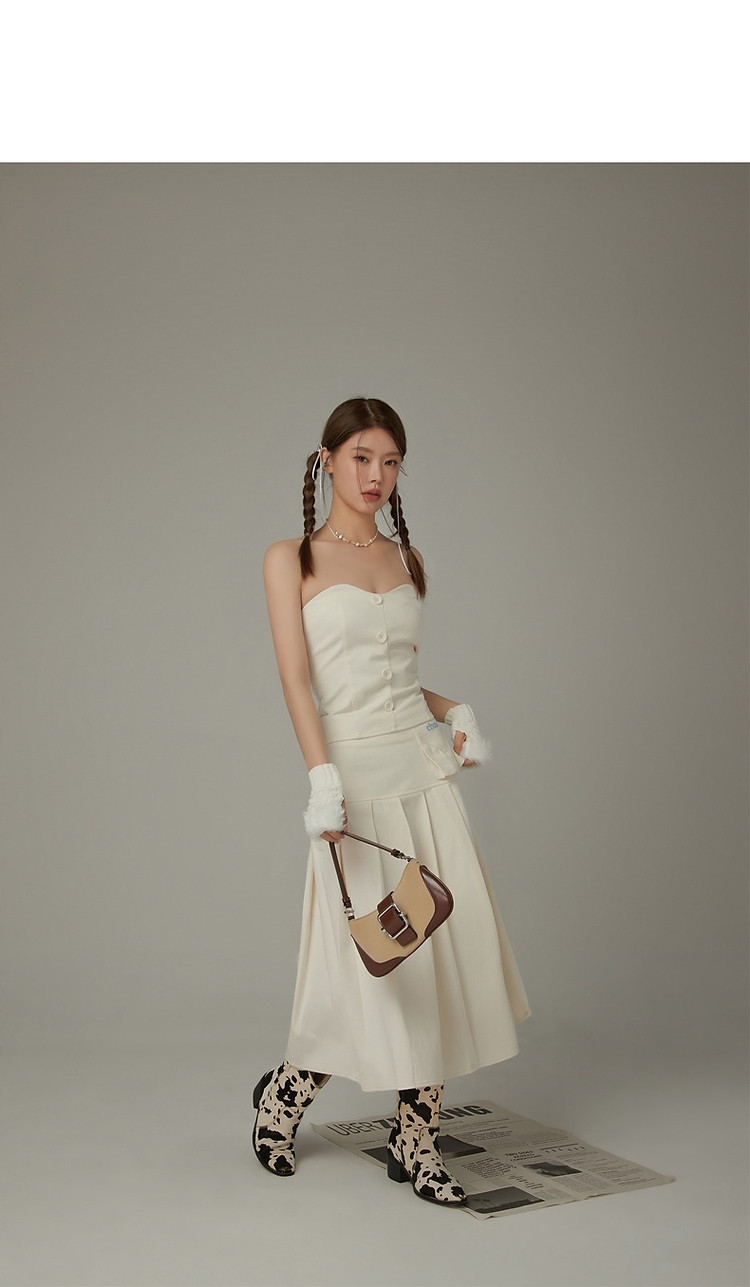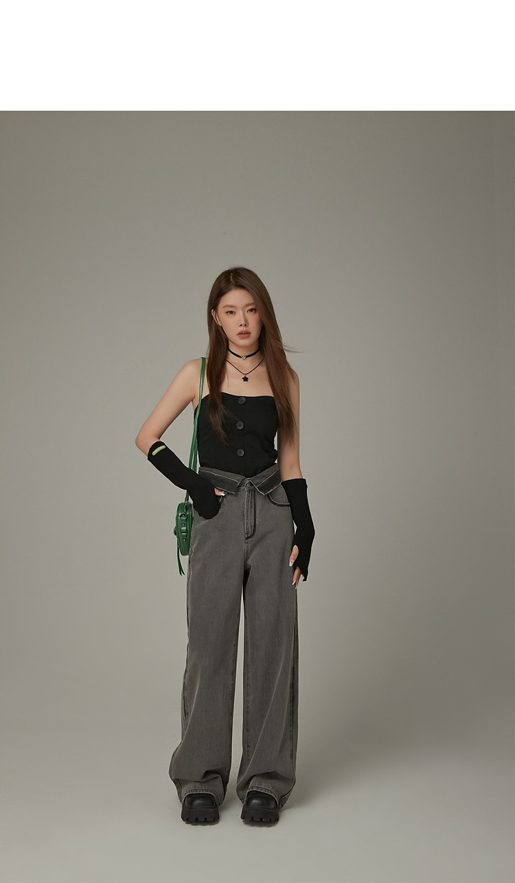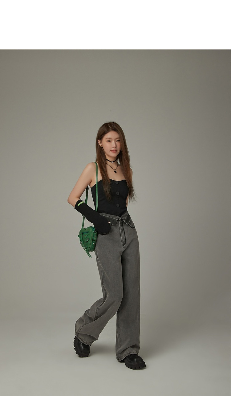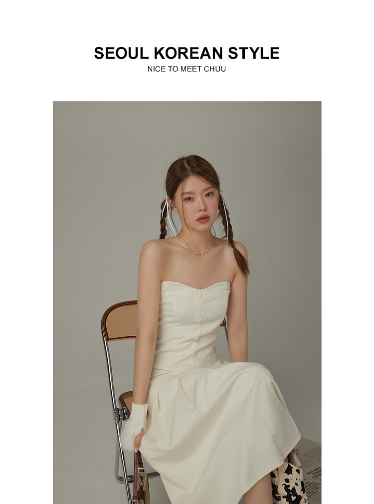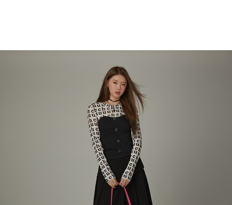 商品名称:CHUU字母刺绣抹胸背心女春秋纽扣无袖辣妹修身上衣 441363