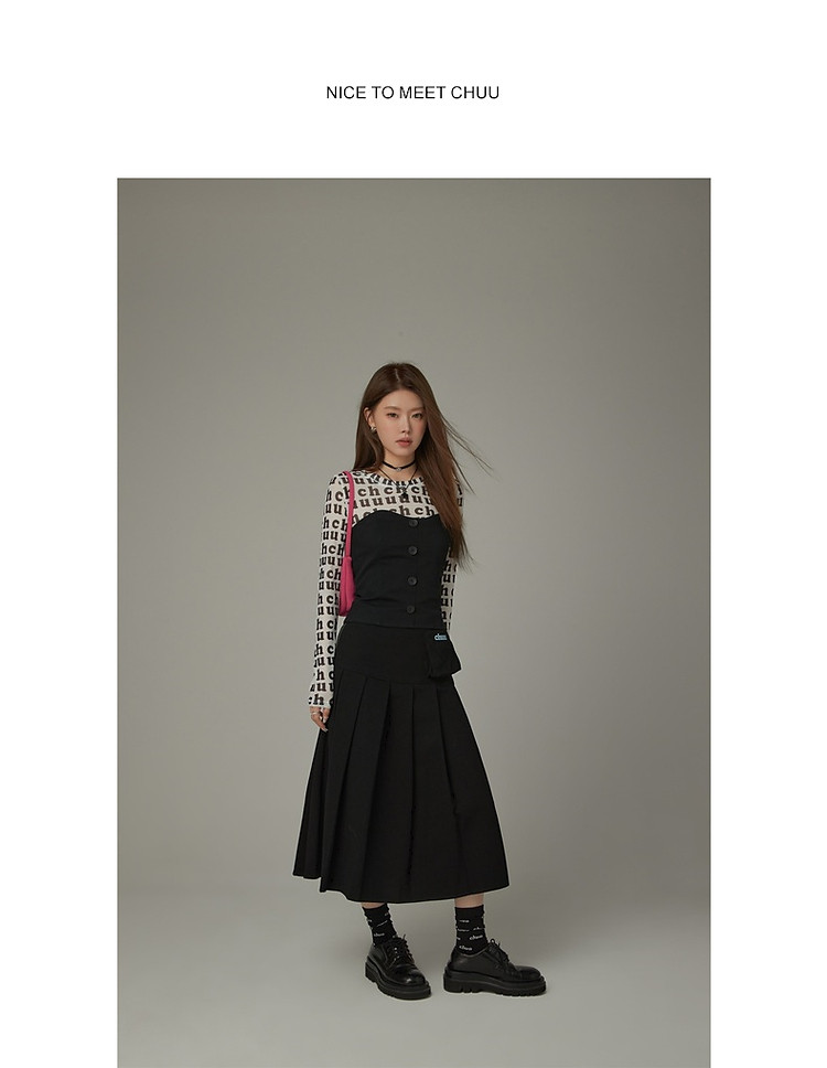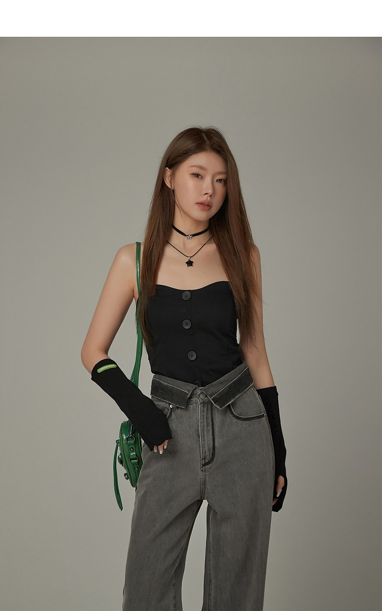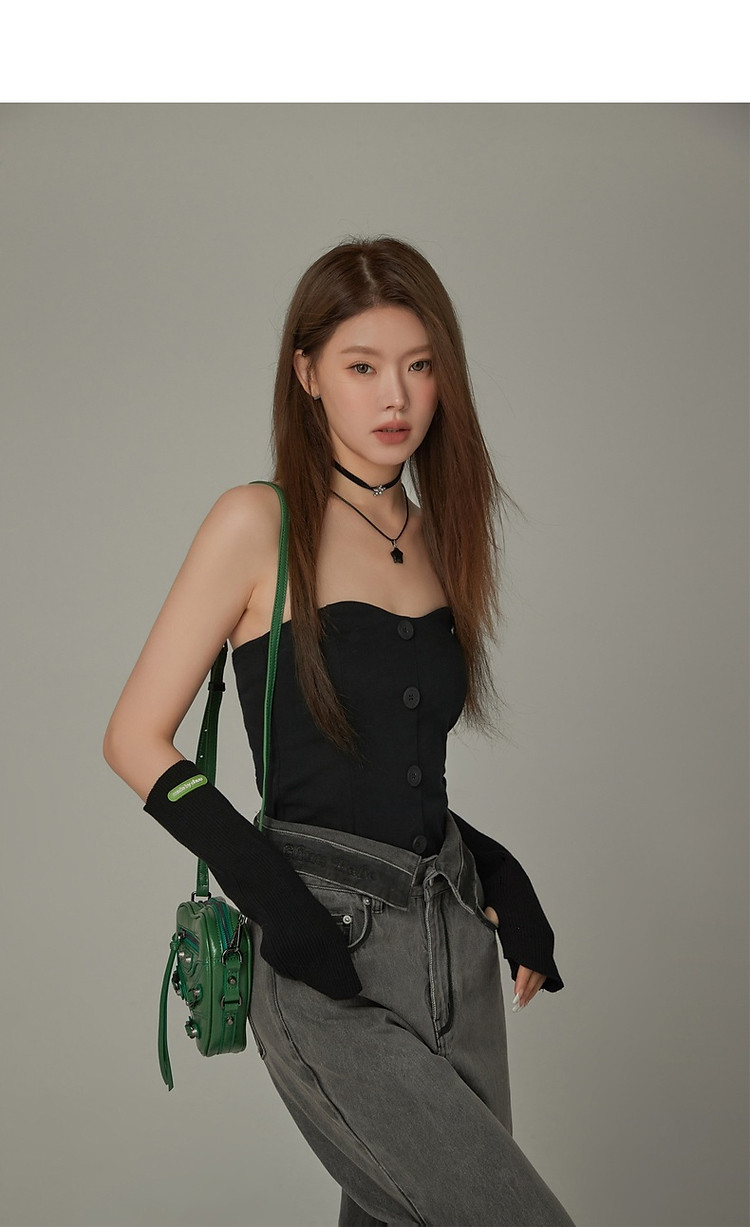 CHUU字母刺绣抹胸背心女春秋纽扣无袖辣妹修身上衣 441363