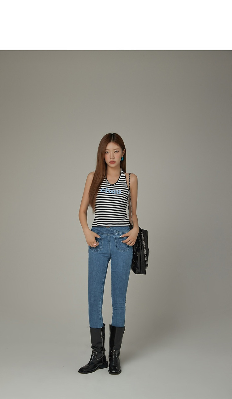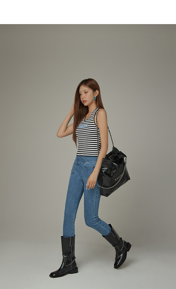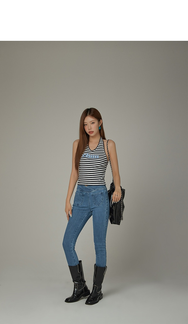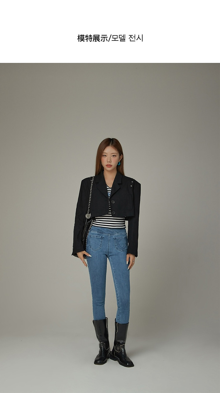 露脐牛仔裤女春秋法式水洗包臀修身小脚长裤子 287635