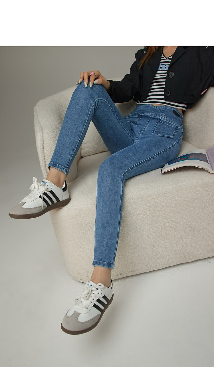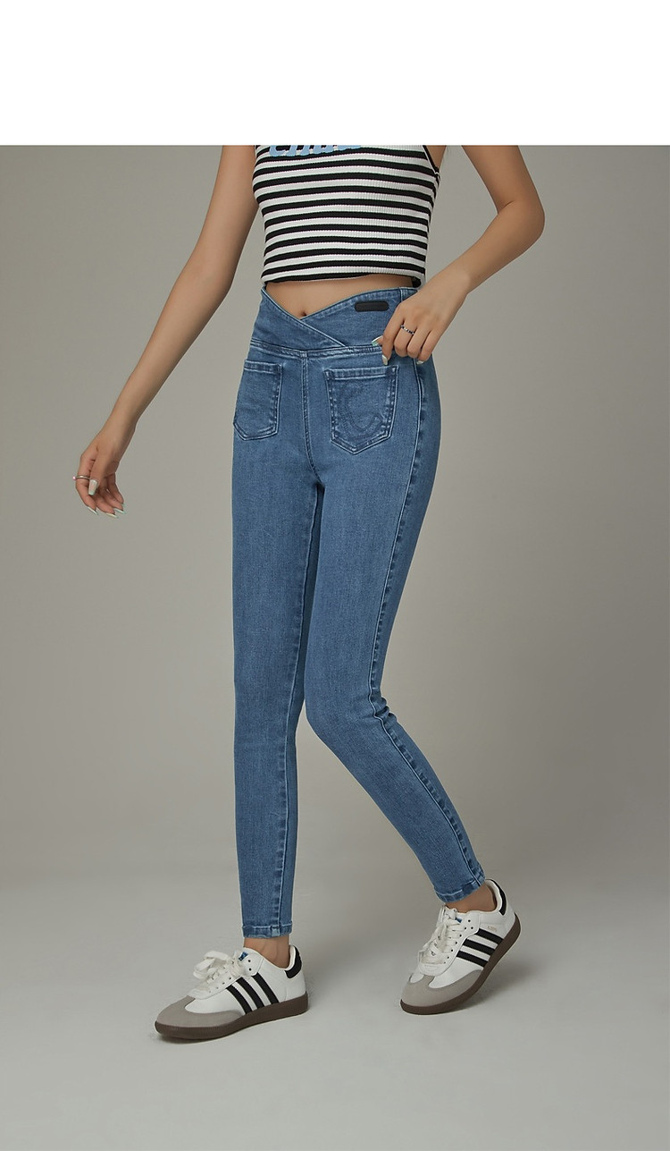 商品名称:露脐牛仔裤女春秋法式水洗包臀修身小脚长裤子 287635