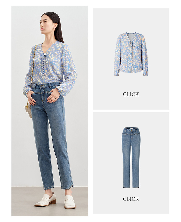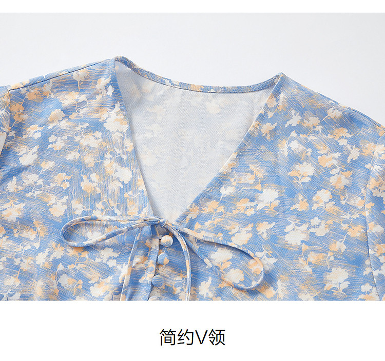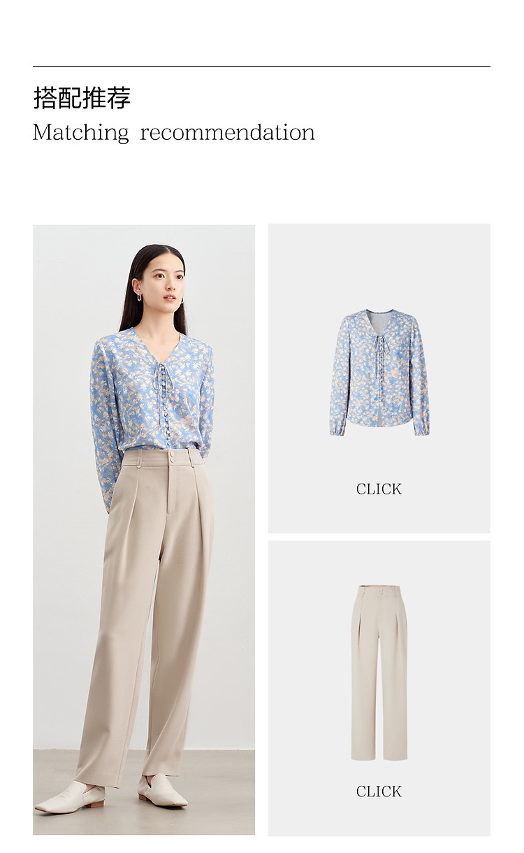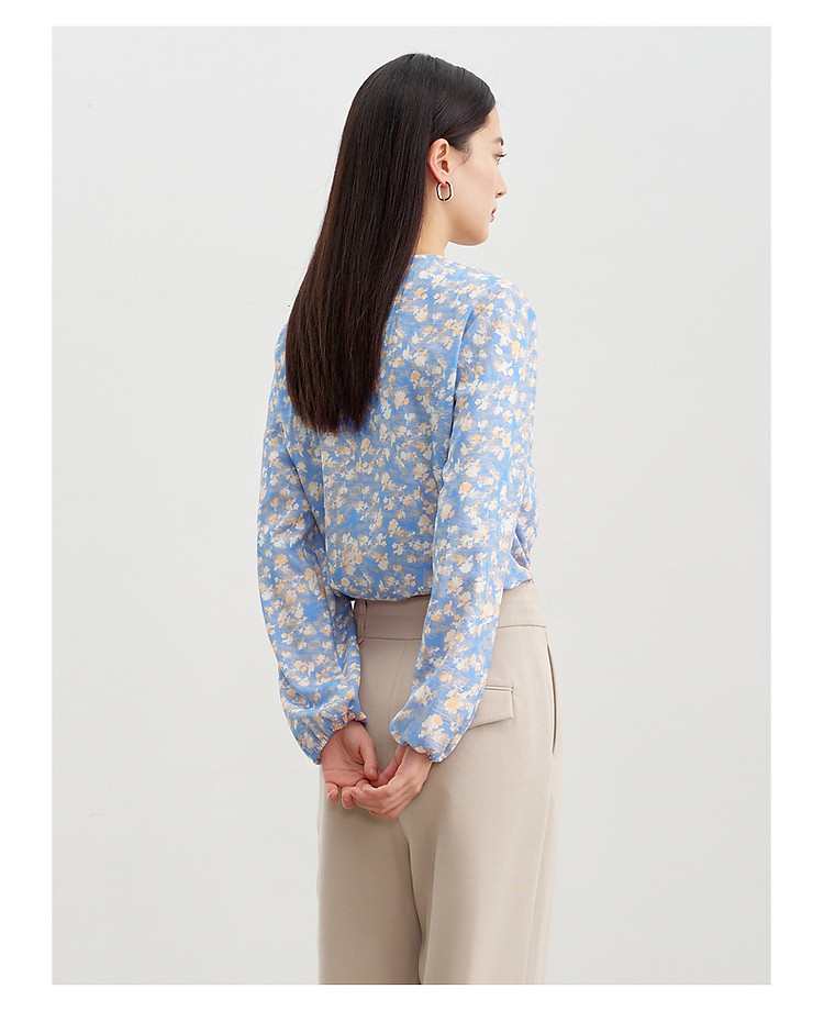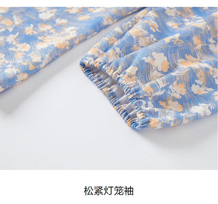 商品名称:玖姿旗下安娜蔻系列优雅花卉印花V领系带长袖衬衫女春季 514508