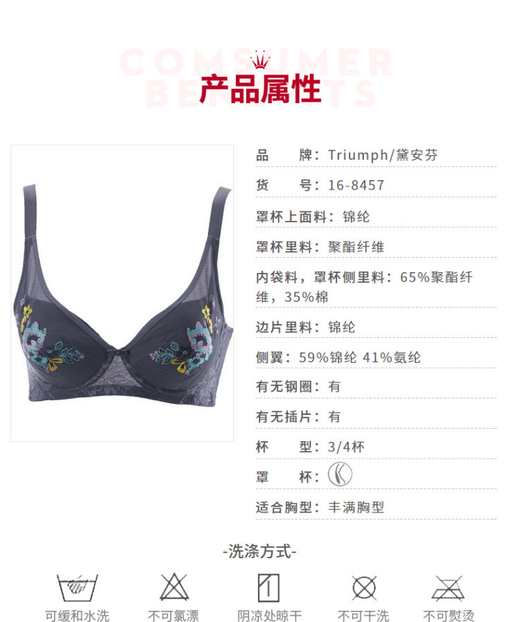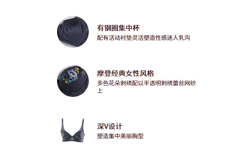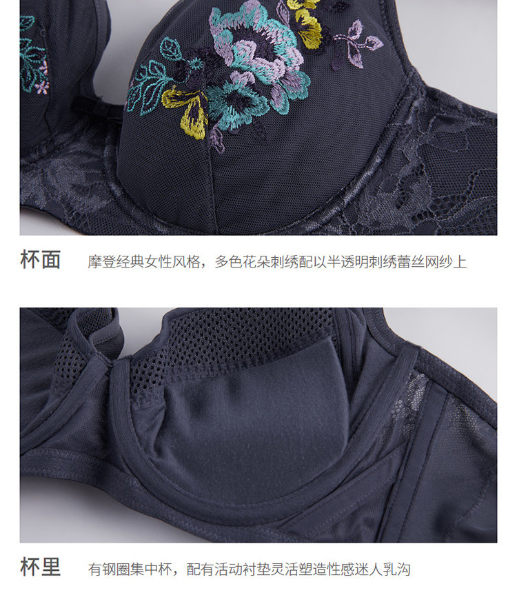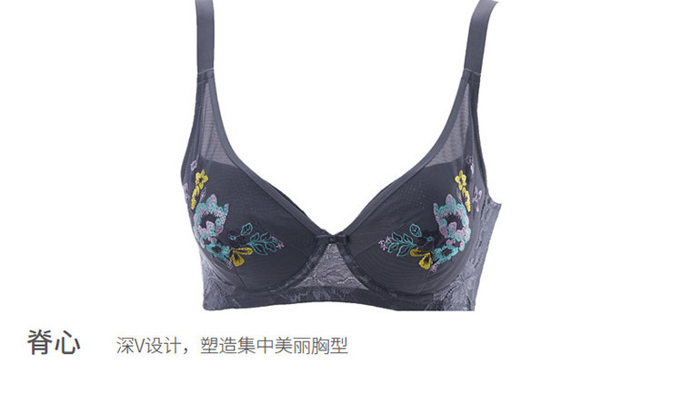 商品名称:【大胸显小】黛安芬网纱透气蕾丝内衣深V薄款文胸16-8457 190856
