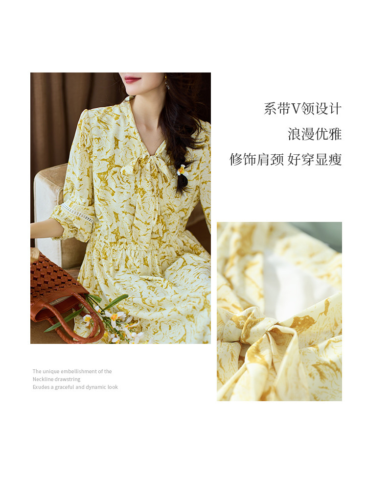 商品名称:【蝴蝶结碎花连衣裙女】2025春夏新款时尚优雅法式浪漫连衣裙 084553
