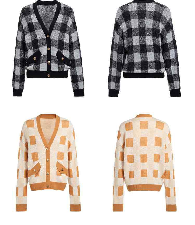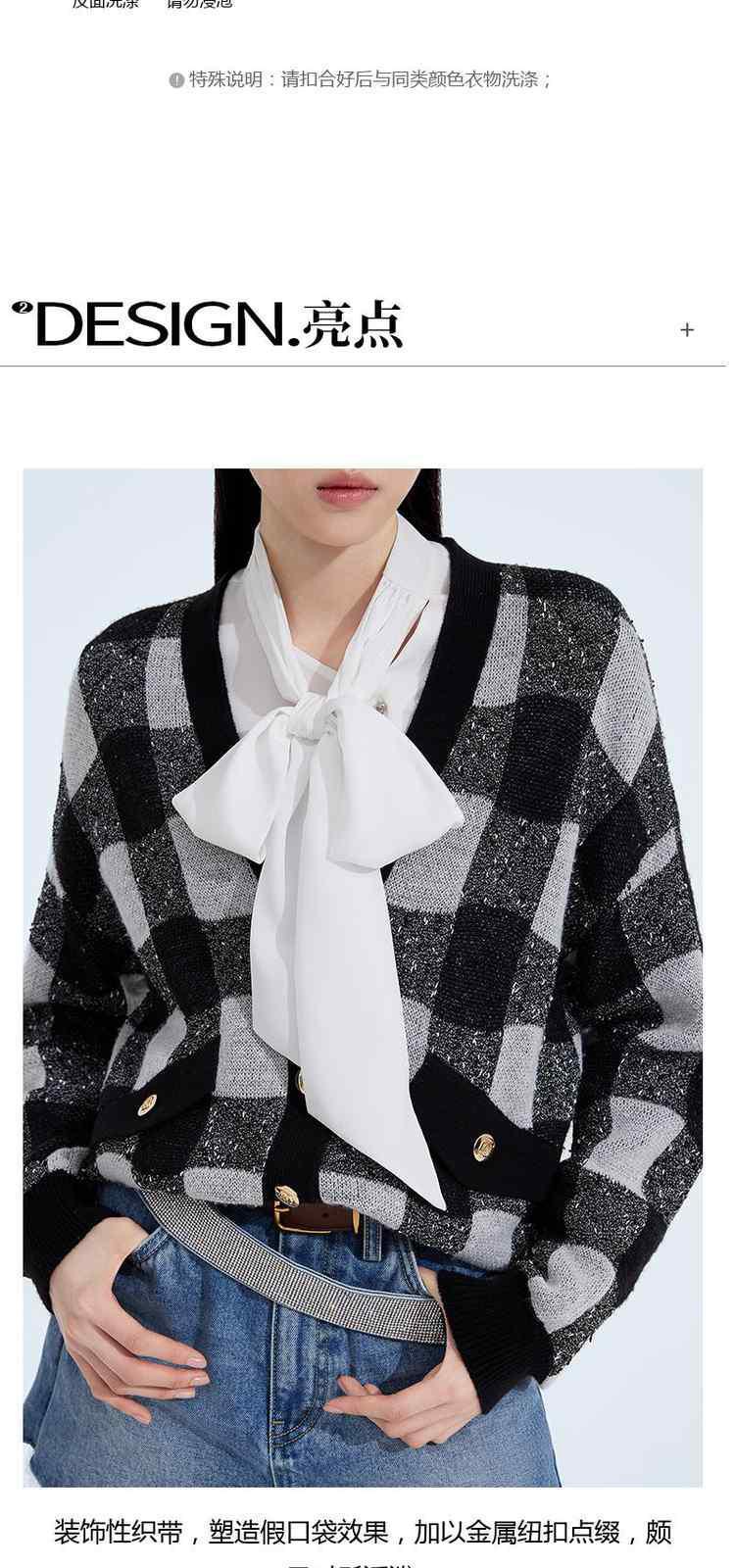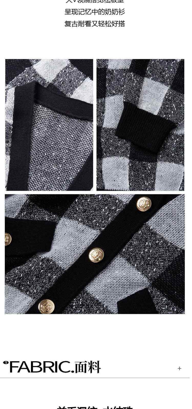 商品名称:黑标系列春装 V领棋盘格英伦风针织外套女 319439
