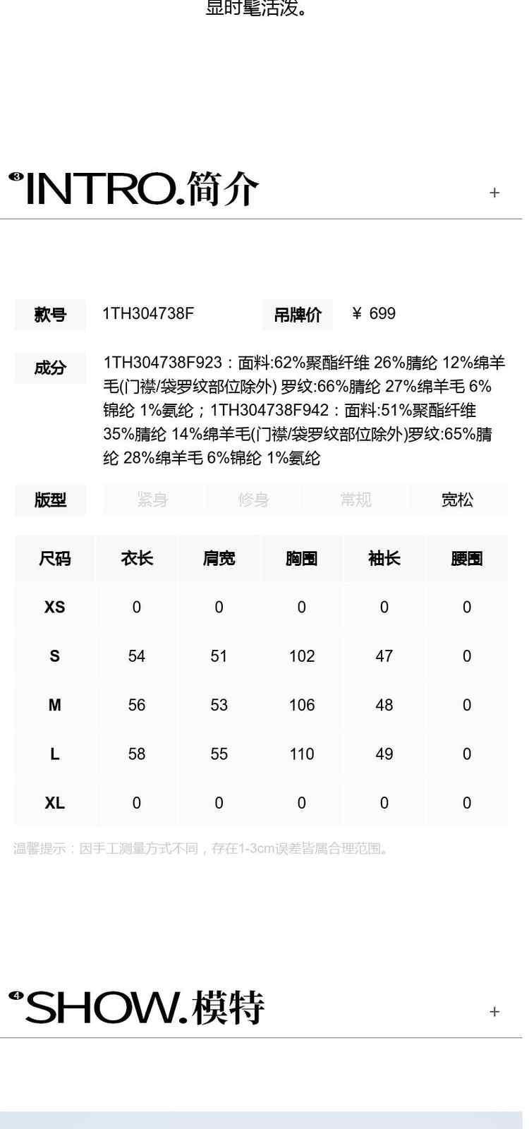 袖长(cm)