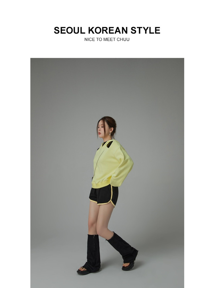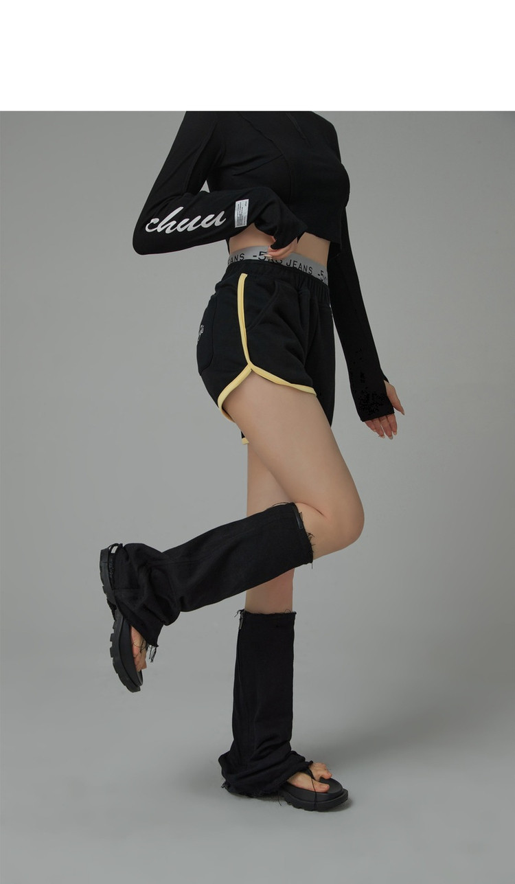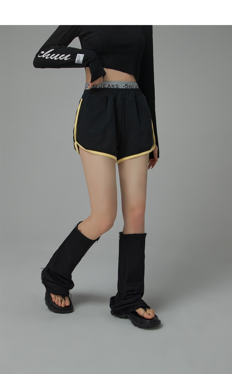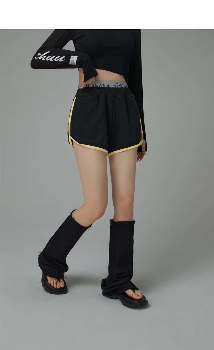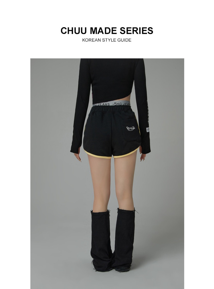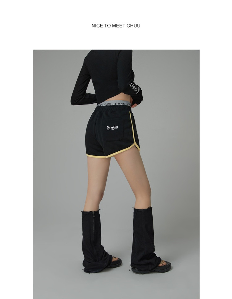 CHUU字母撞色休闲裤女秋设计感松紧腰宽松短裤 411987