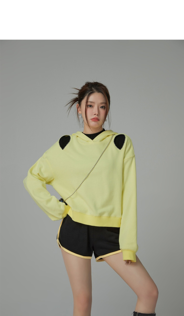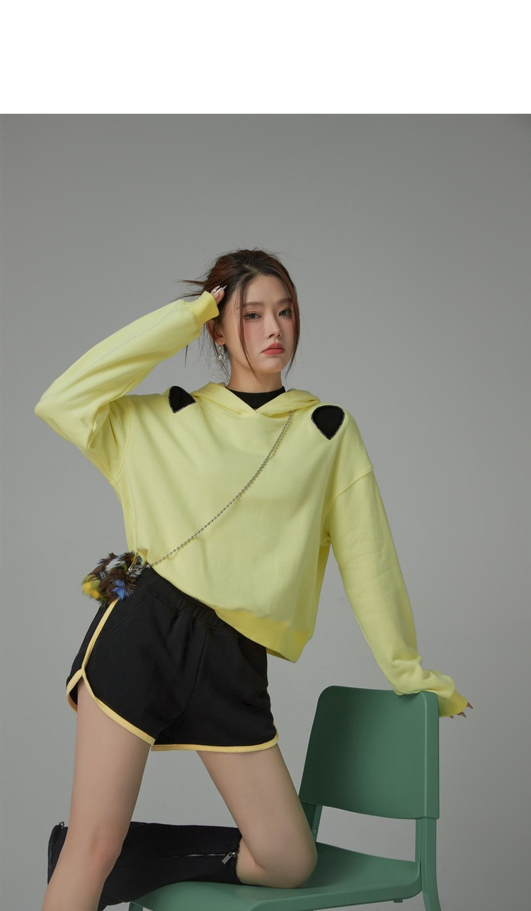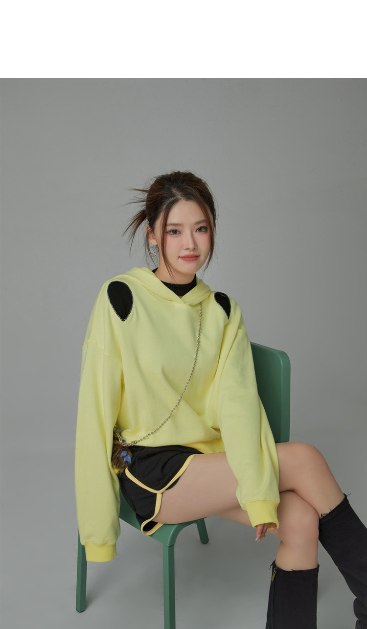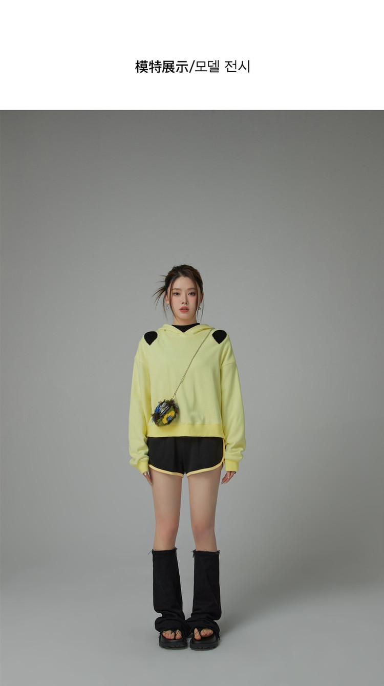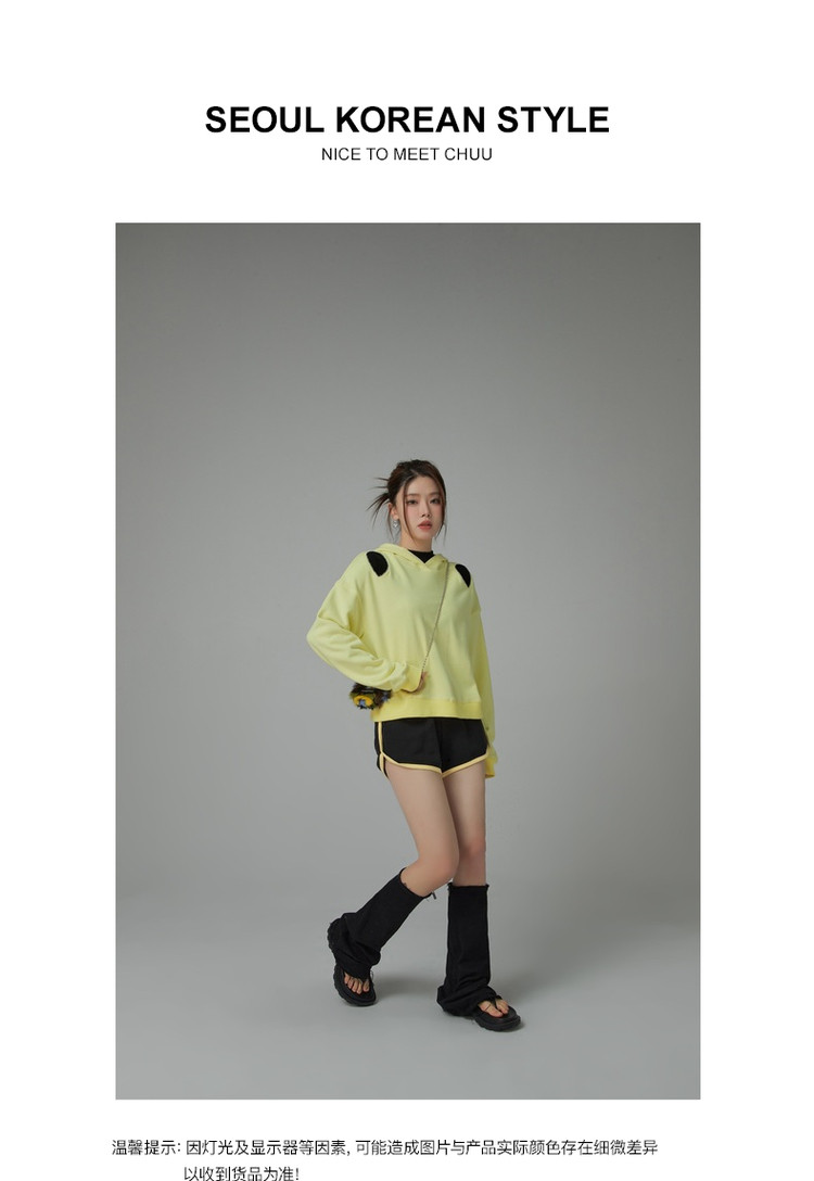 CHUU字母撞色休闲裤女秋设计感松紧腰宽松短裤 411987