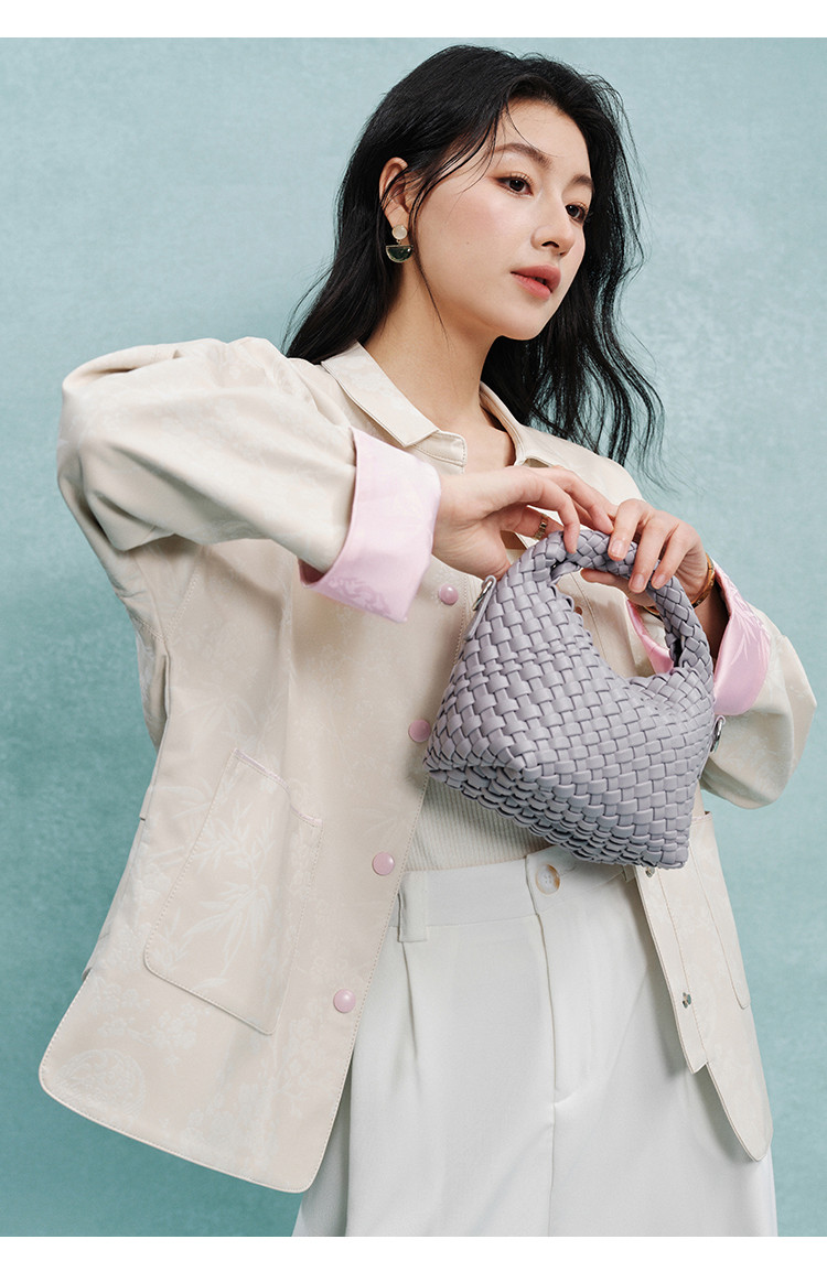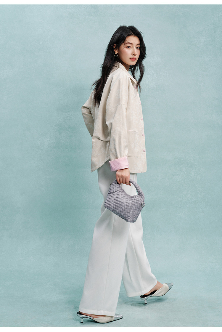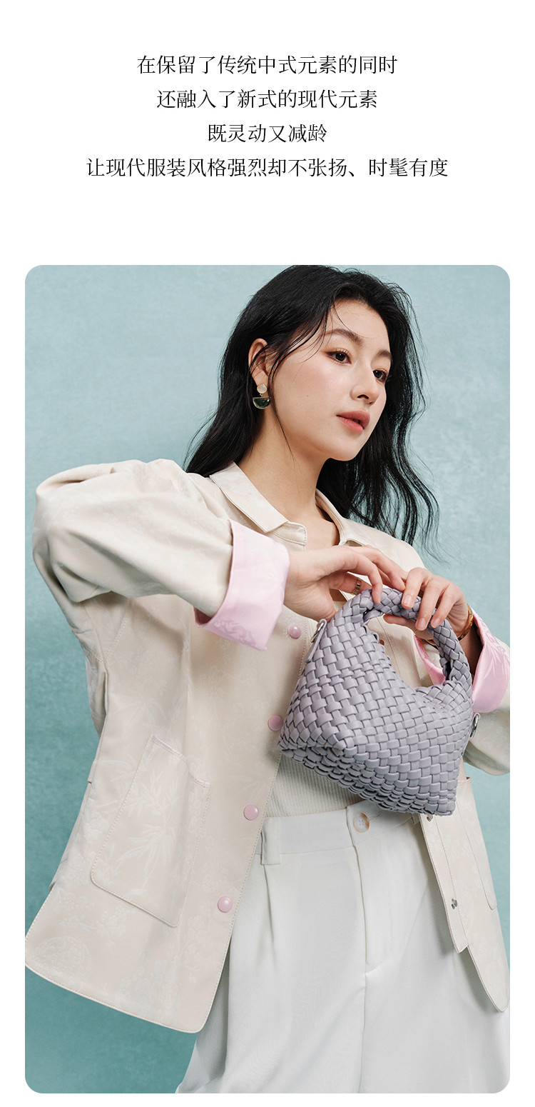 商品名称:新中式外套女2025春夏季高级感彩虹色纽扣提花料短外套女 109129