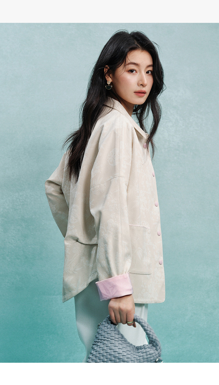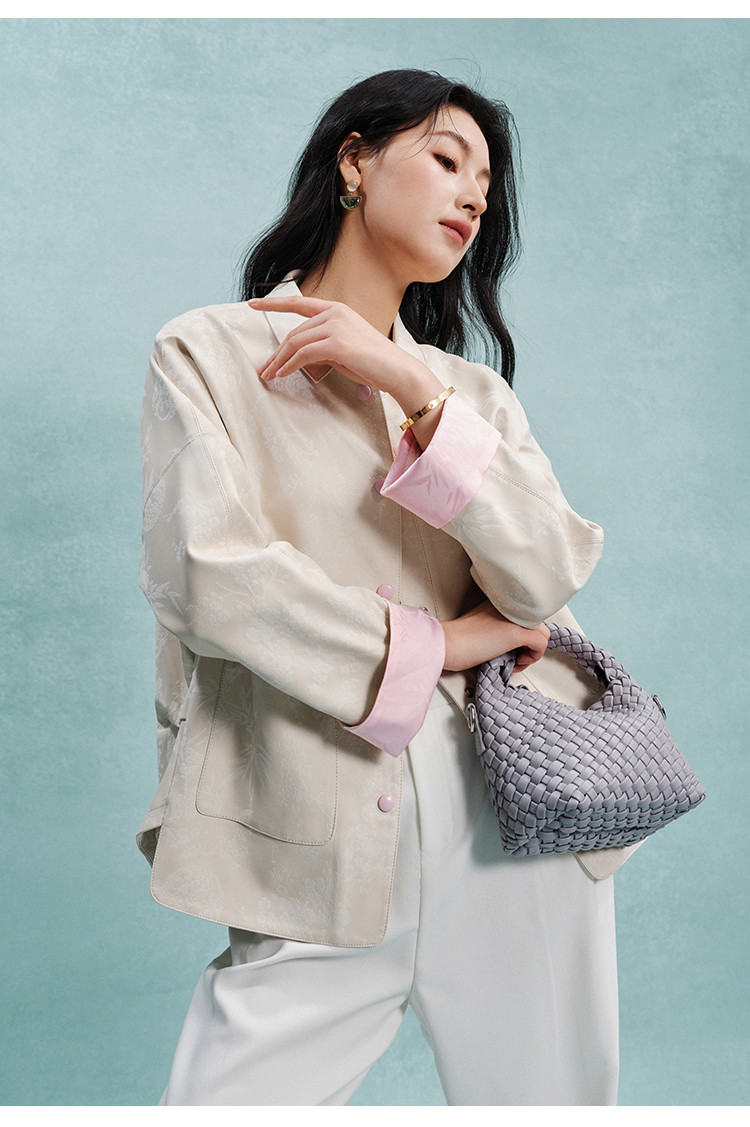 新中式外套女2025春夏季高级感彩虹色纽扣提花料短外套女 109129