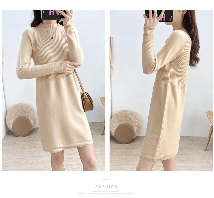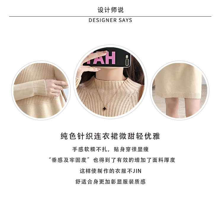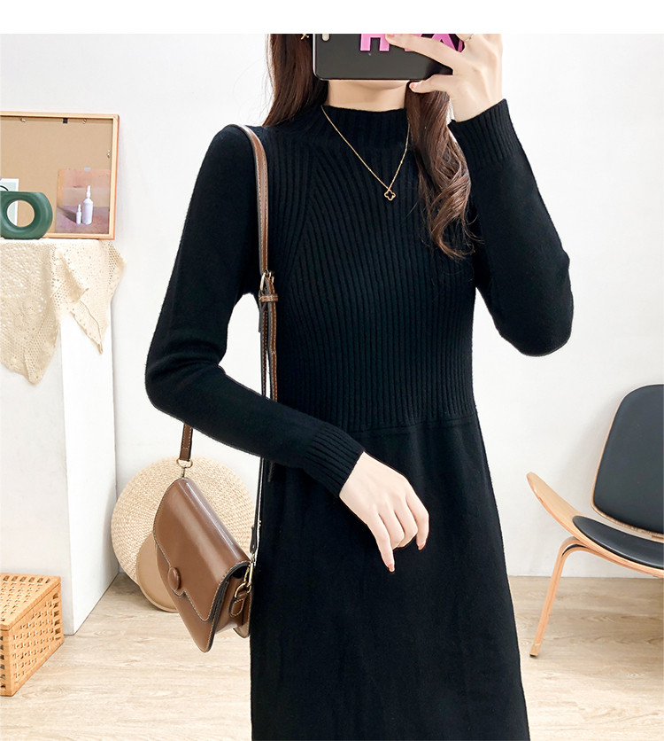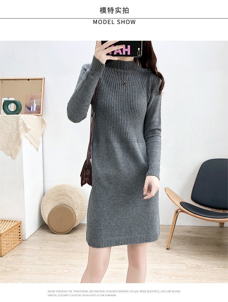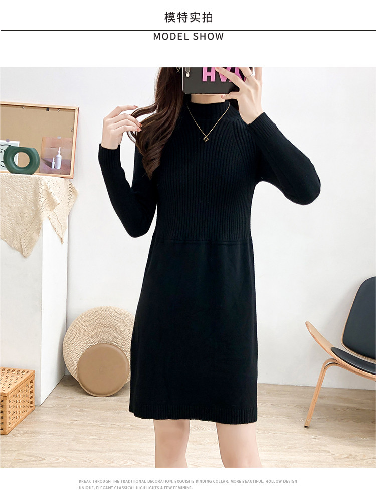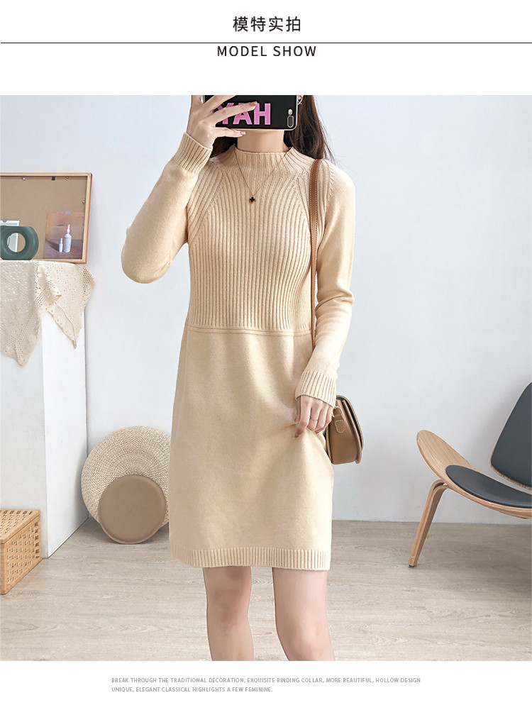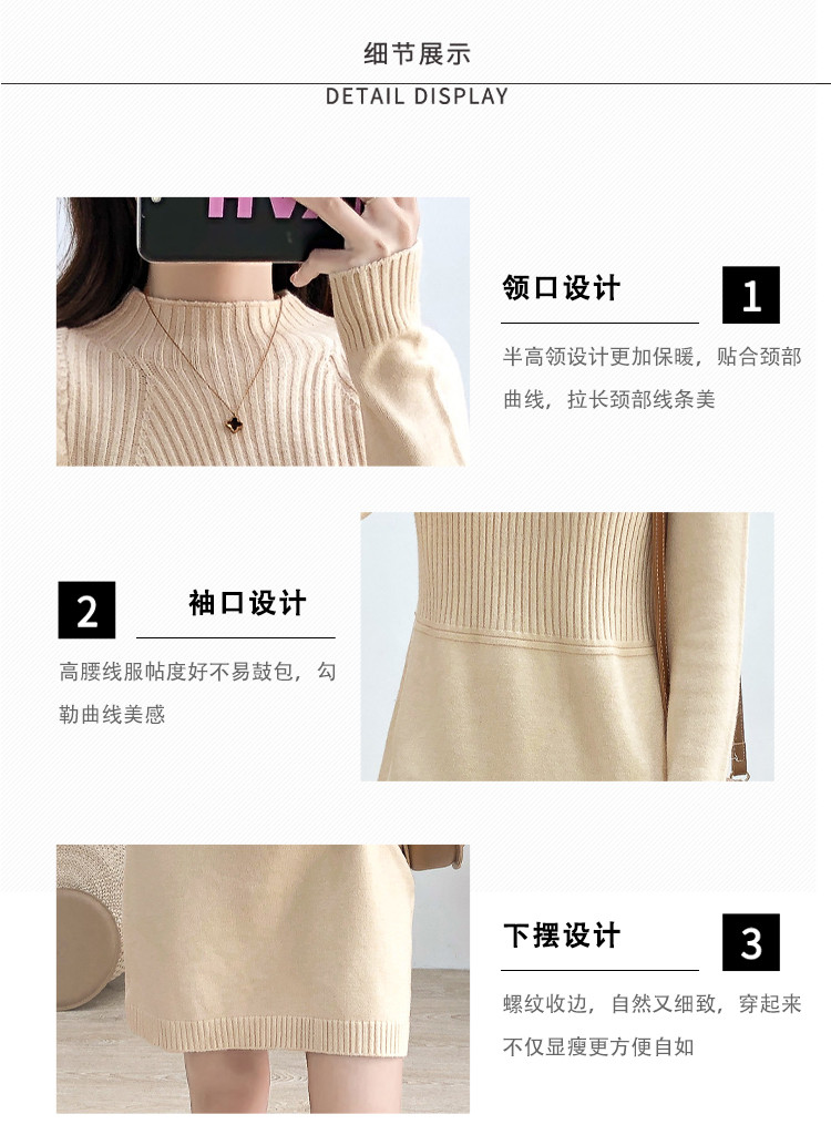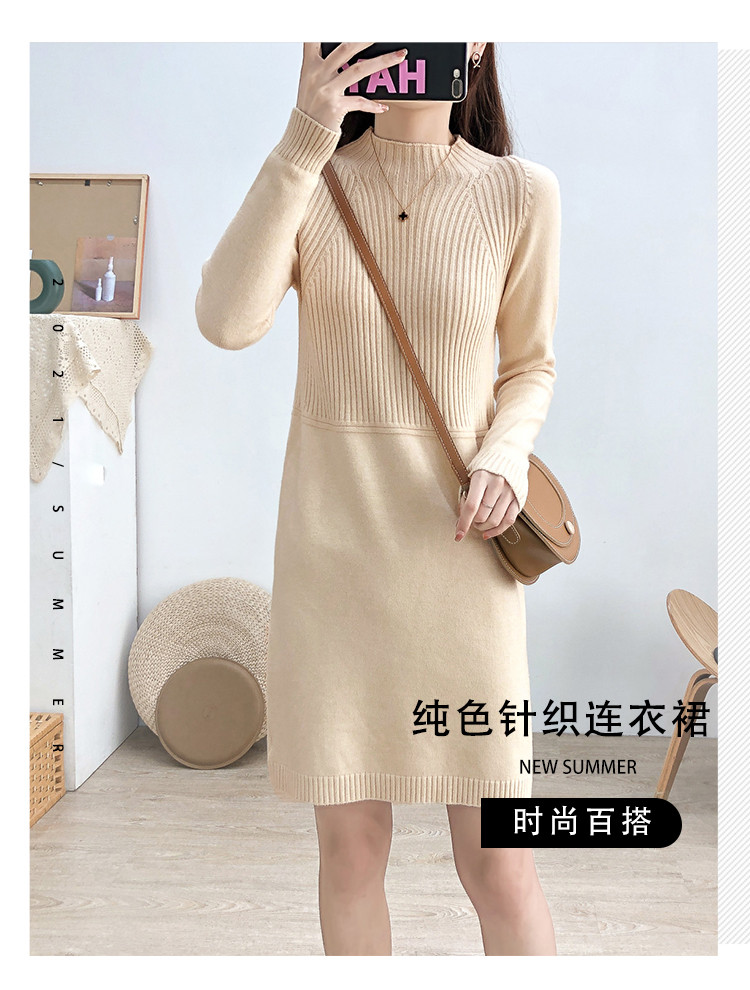 商品名称:针织连衣裙半高领针织连衣裙女宽松长袖针织裙 688387