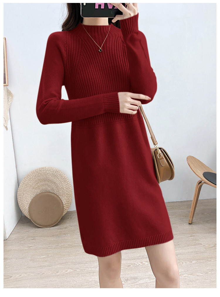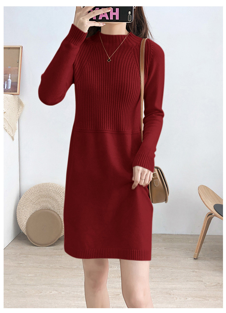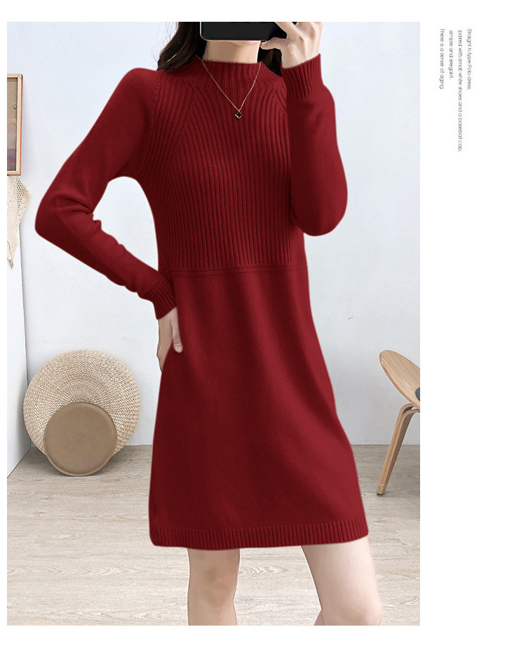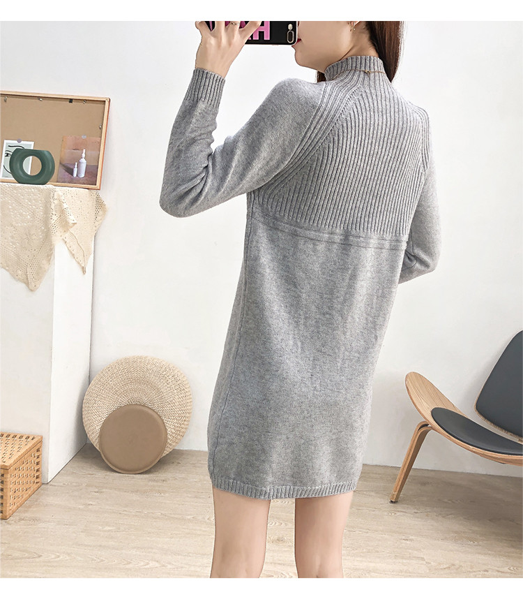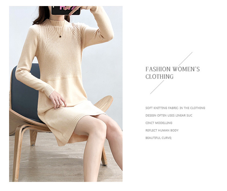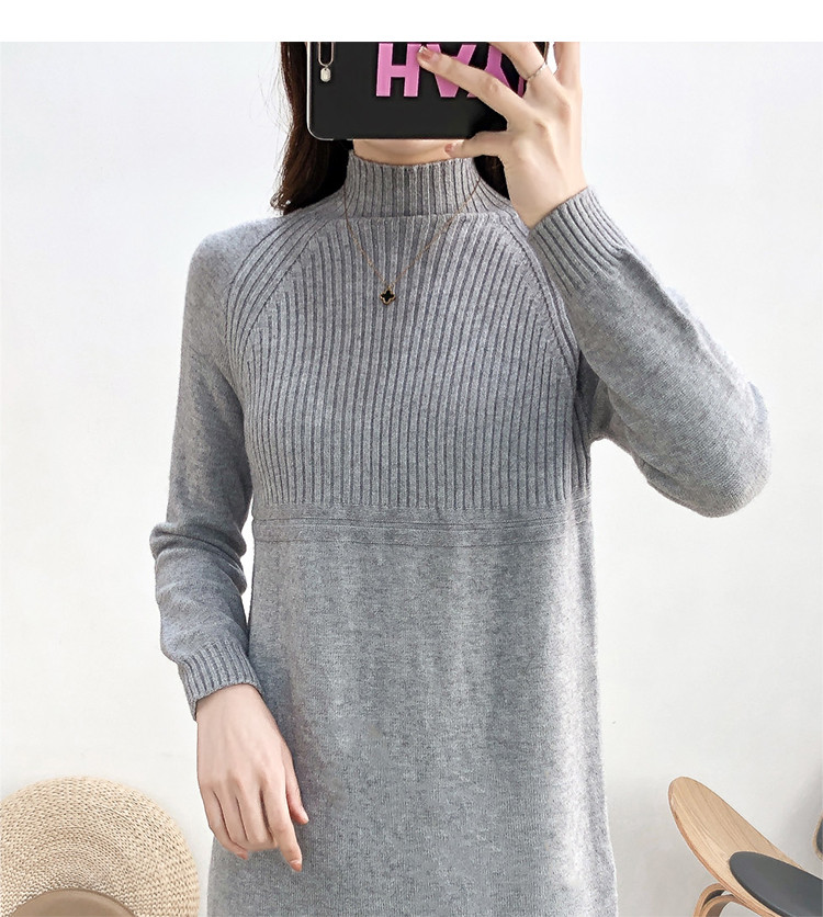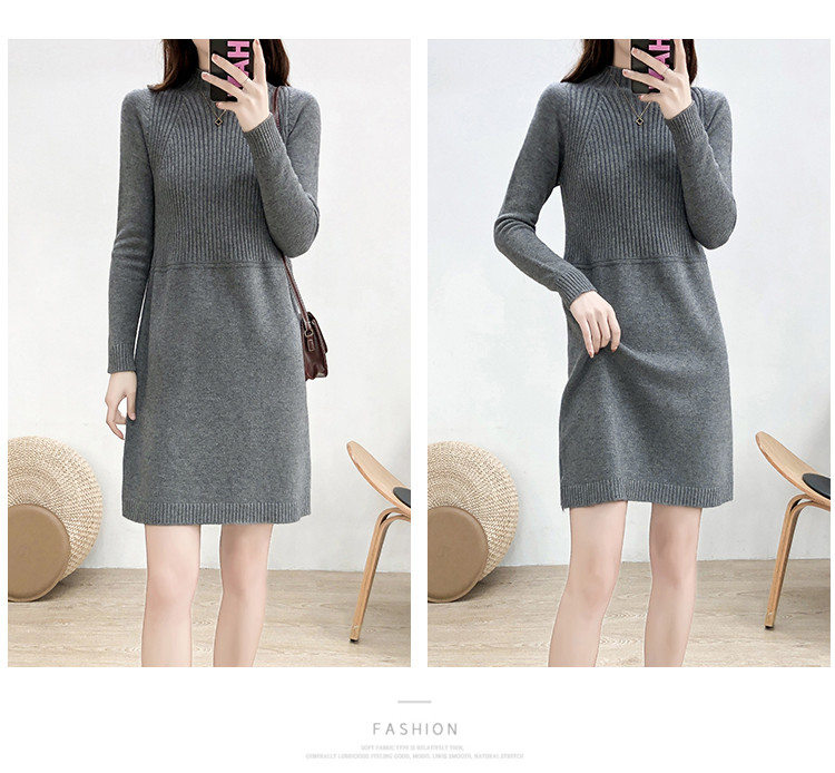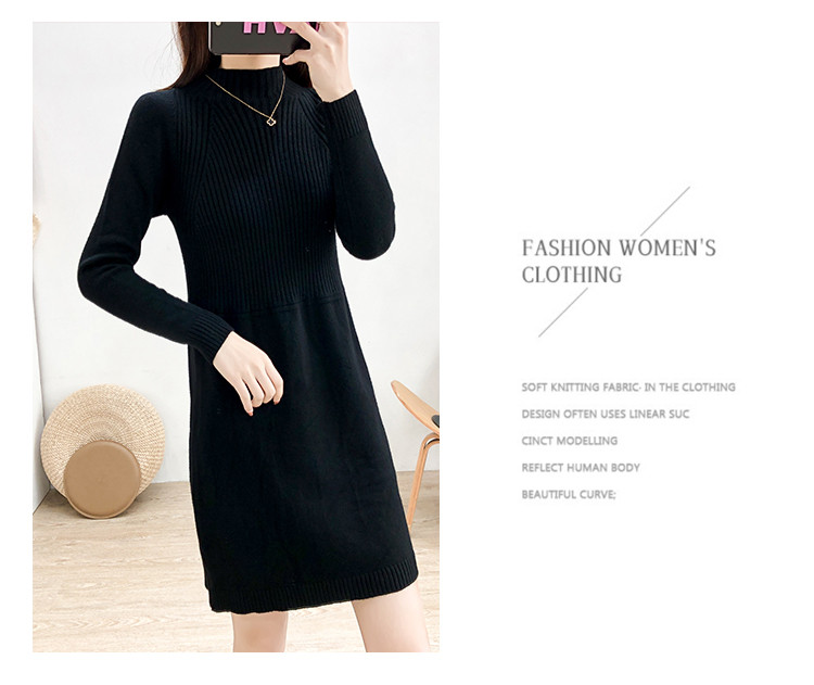 商品名称:针织连衣裙半高领针织连衣裙女宽松长袖针织裙 688387