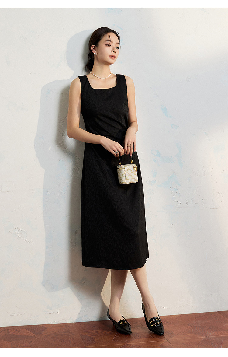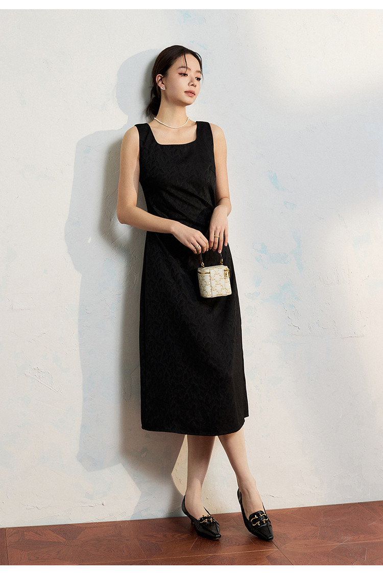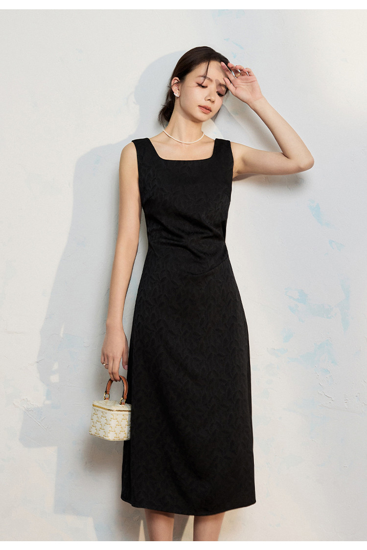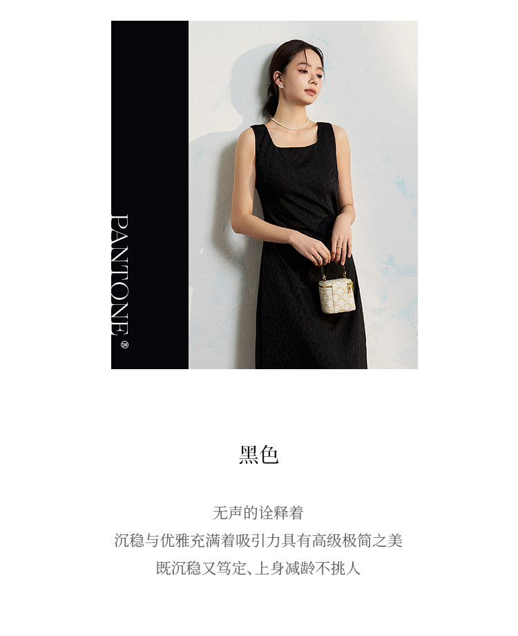 商品名称:吊带连衣裙女小黑裙夏季新品极简优雅抽褶收腰显瘦背心款连衣裙 365577