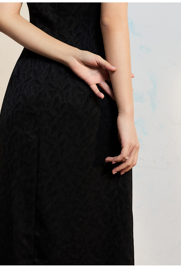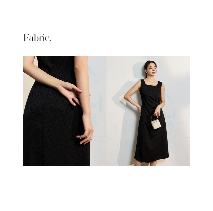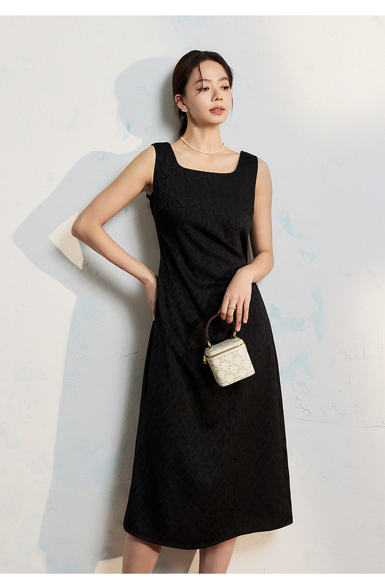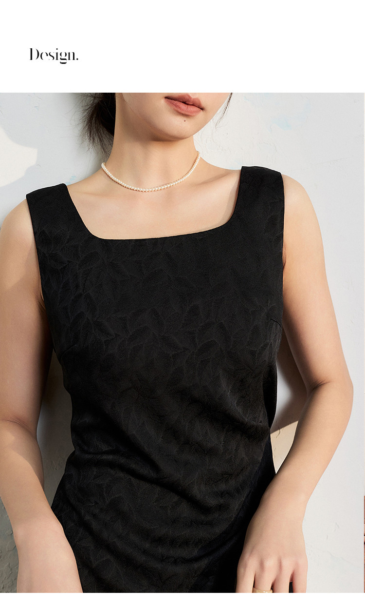 商品名称:吊带连衣裙女小黑裙夏季新品极简优雅抽褶收腰显瘦背心款连衣裙 365577
