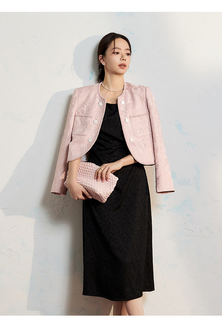 [商场同款]春季优雅花瓣领简约修身烫钻收腰显瘦连衣裙 505375