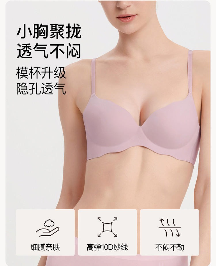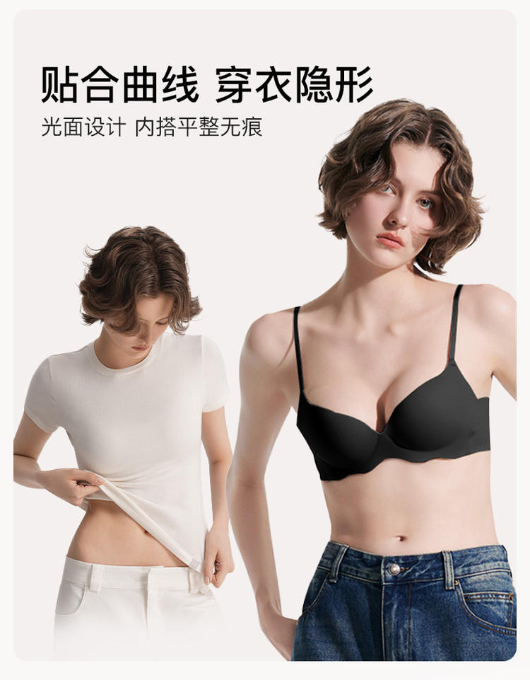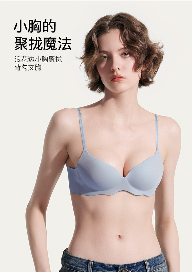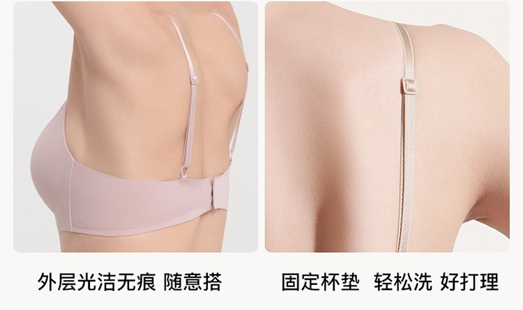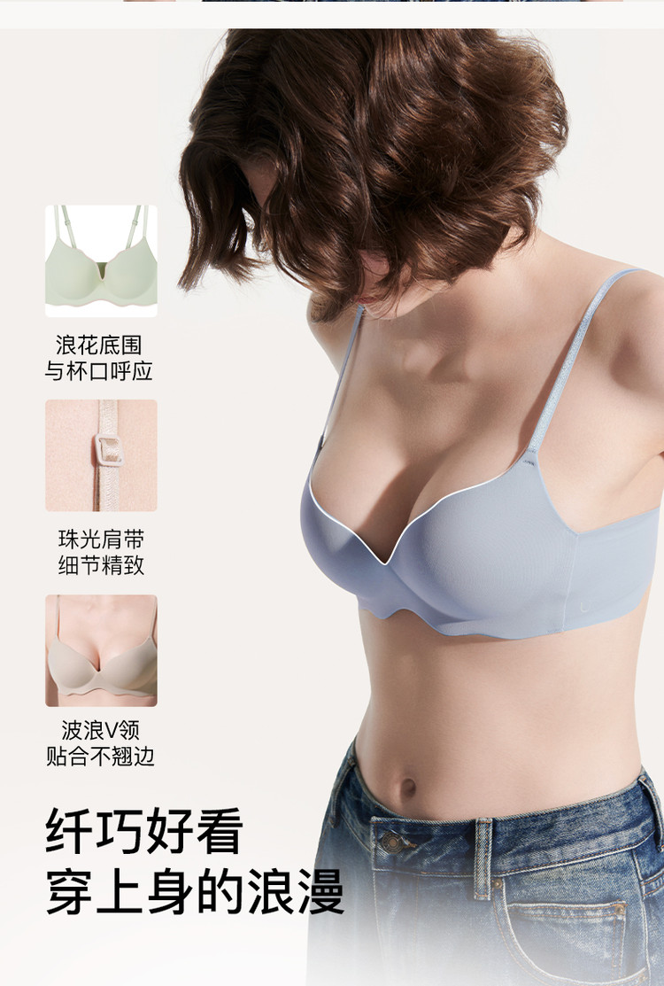 商品名称:【裸感无痕】小胸聚拢粉底液内衣美背一体式文胸波浪V领女夏薄款 939456