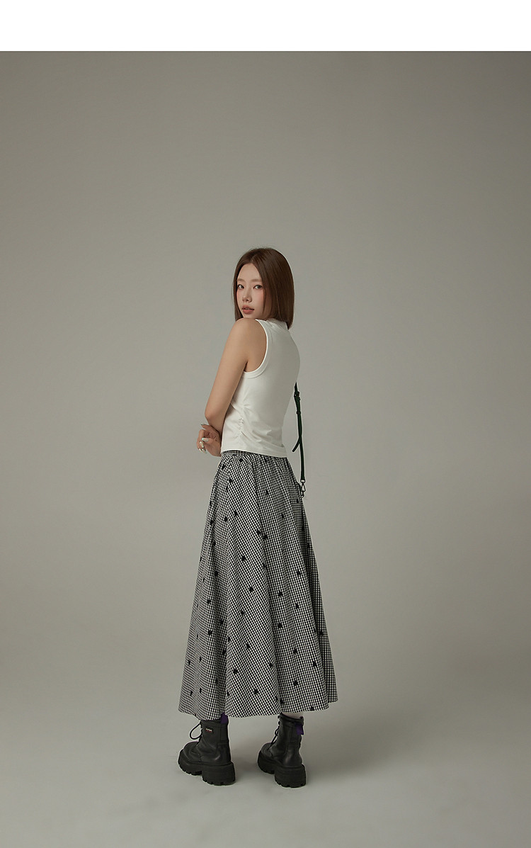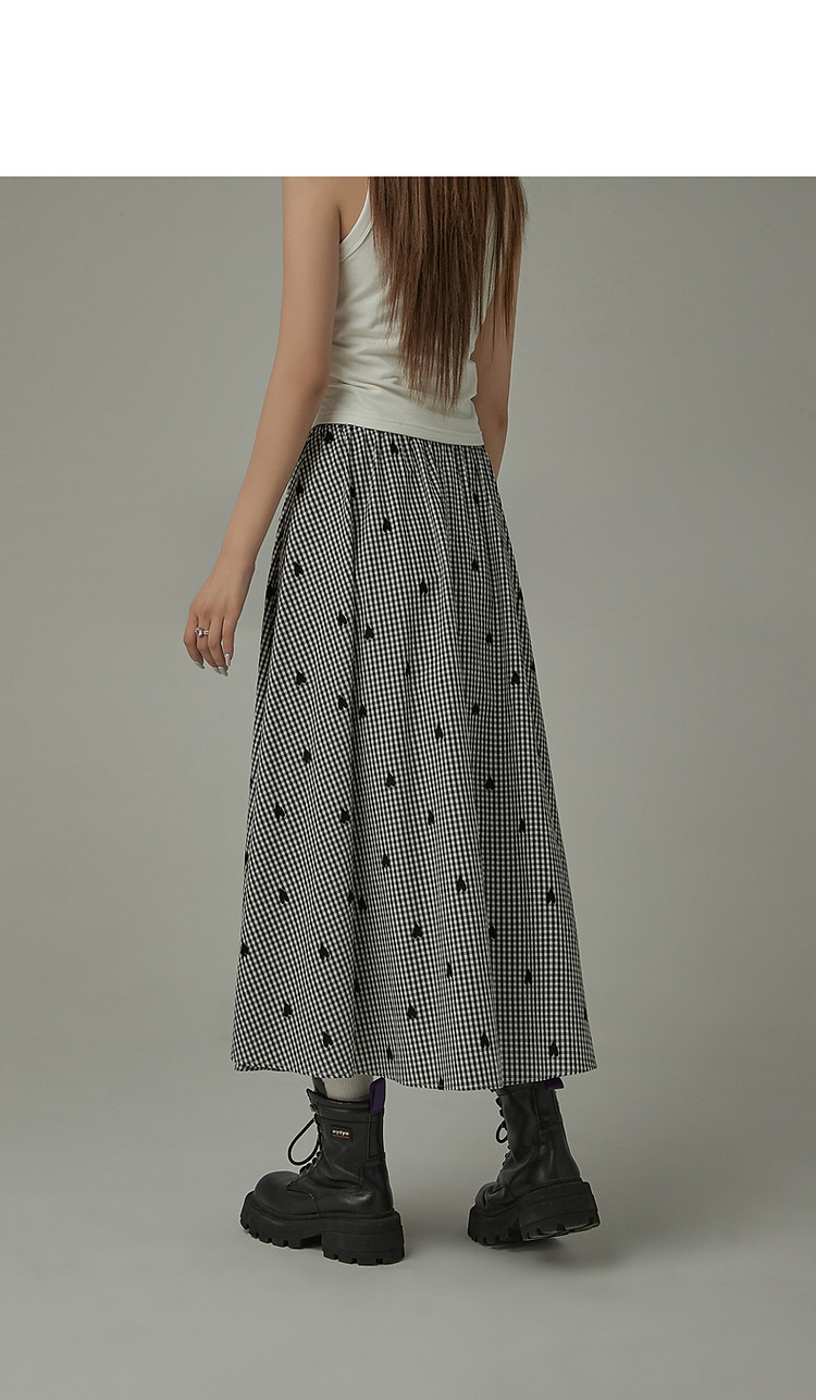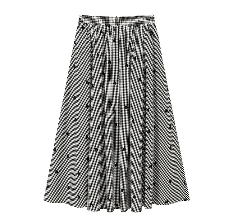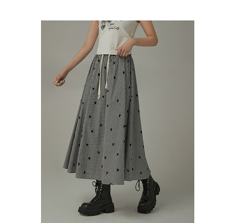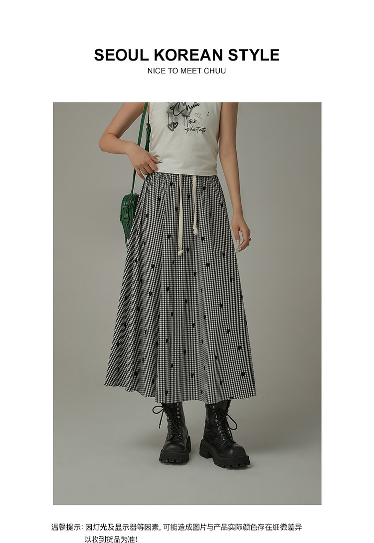 商品名称:黑白格半身裙女春秋休闲减龄小宽松抽绳中长裙 418387