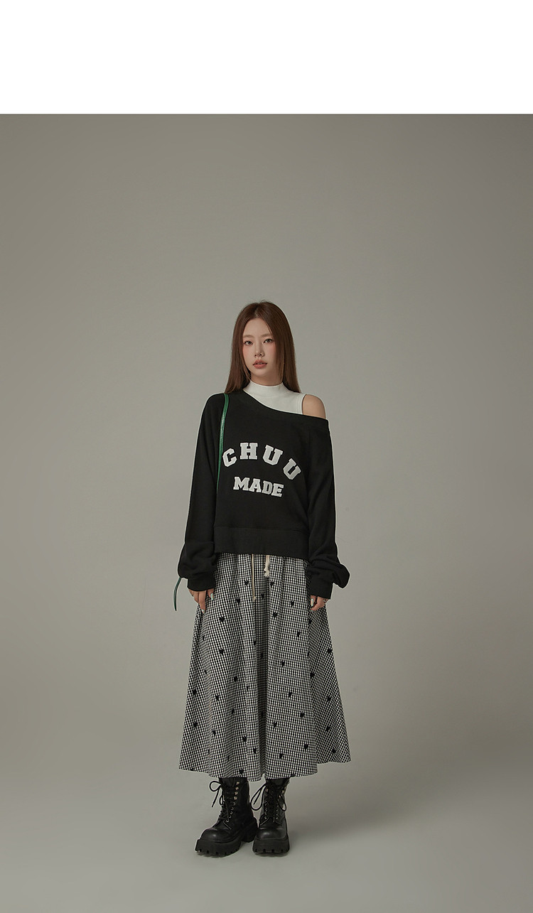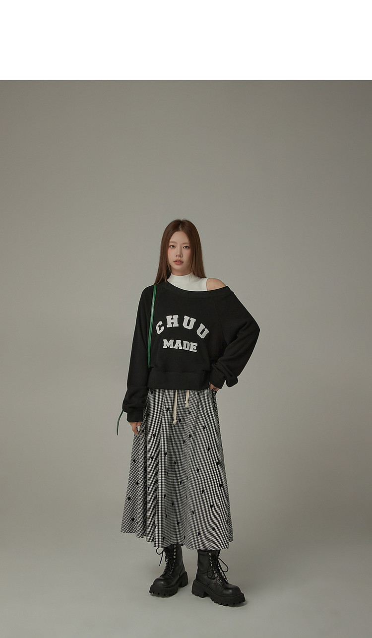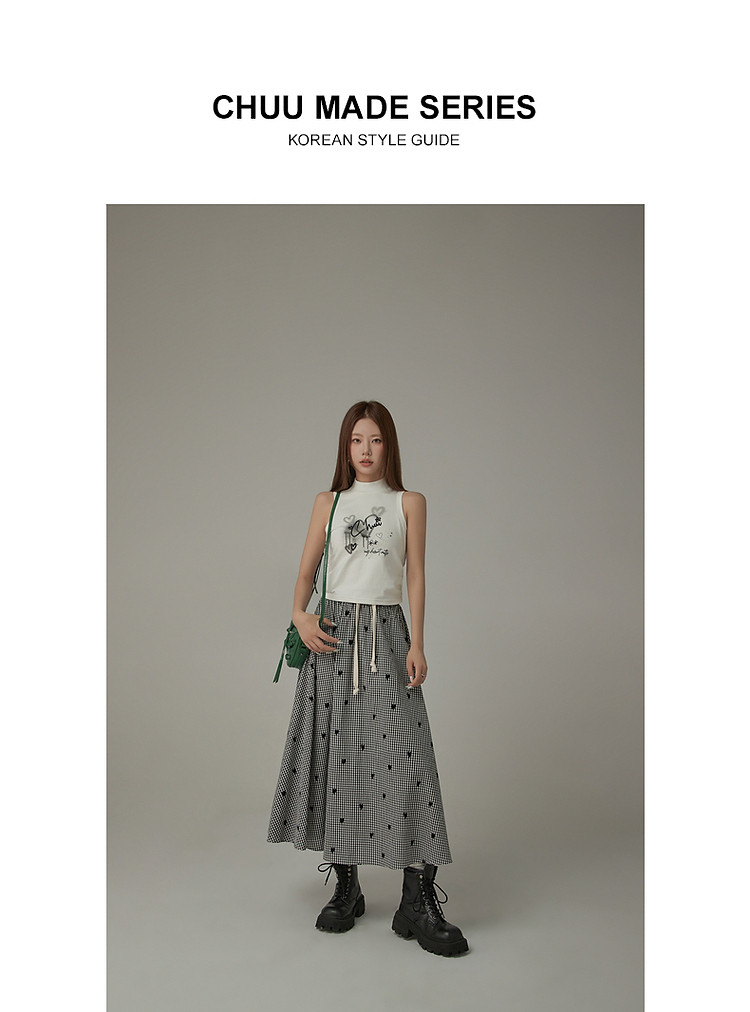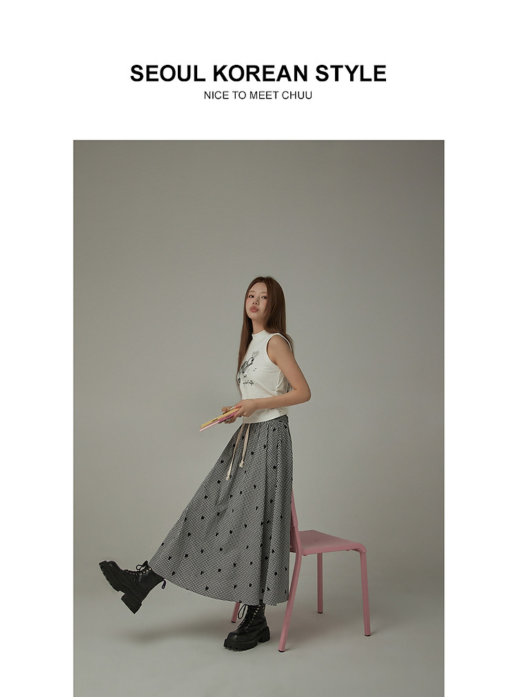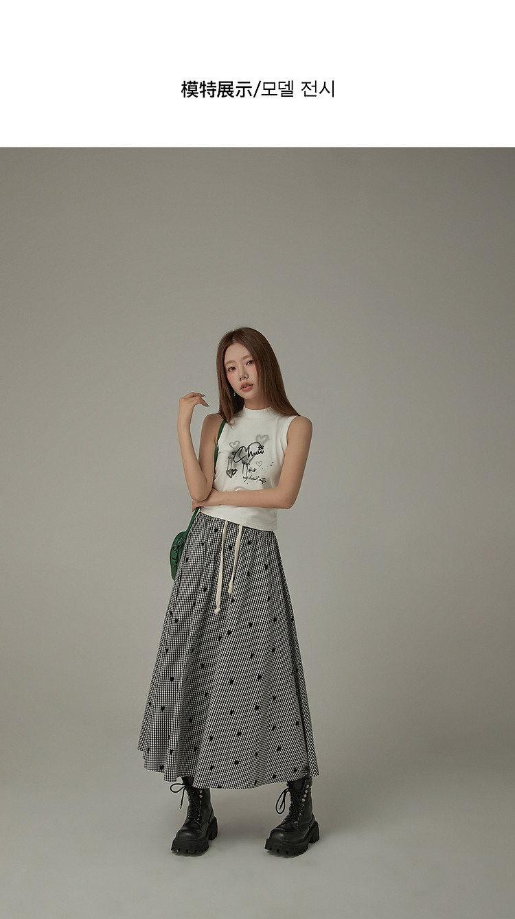 商品名称:黑白格半身裙女春秋休闲减龄小宽松抽绳中长裙 418387