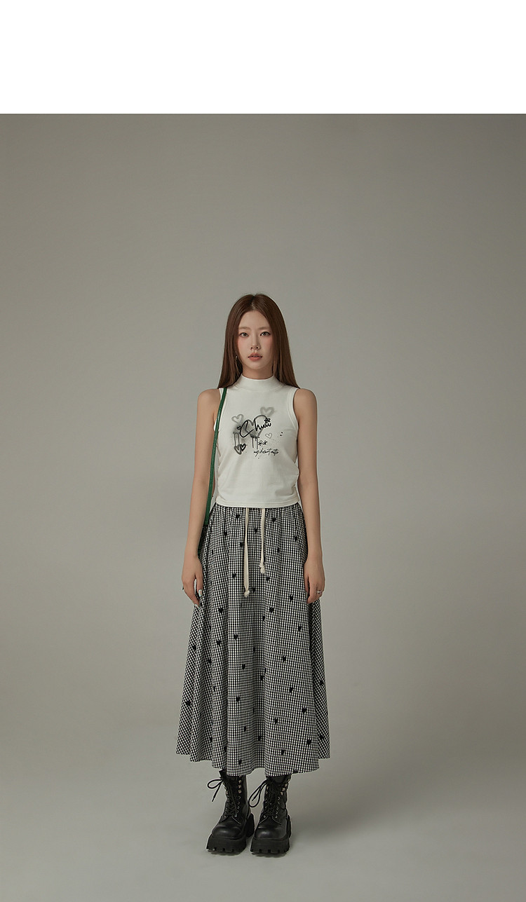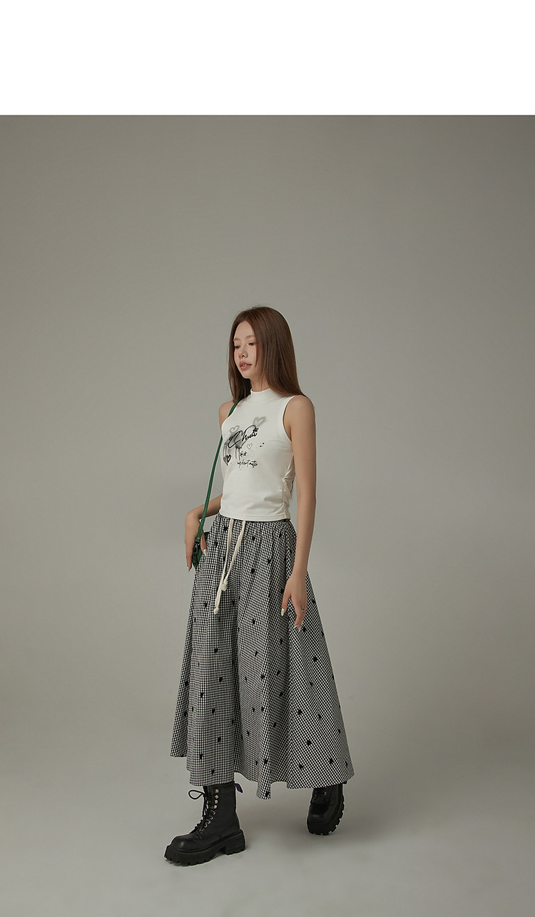 黑白格半身裙女春秋休闲减龄小宽松抽绳中长裙 418387