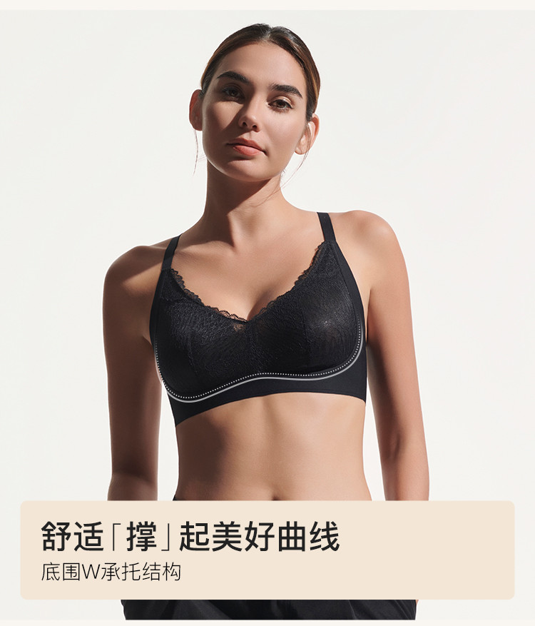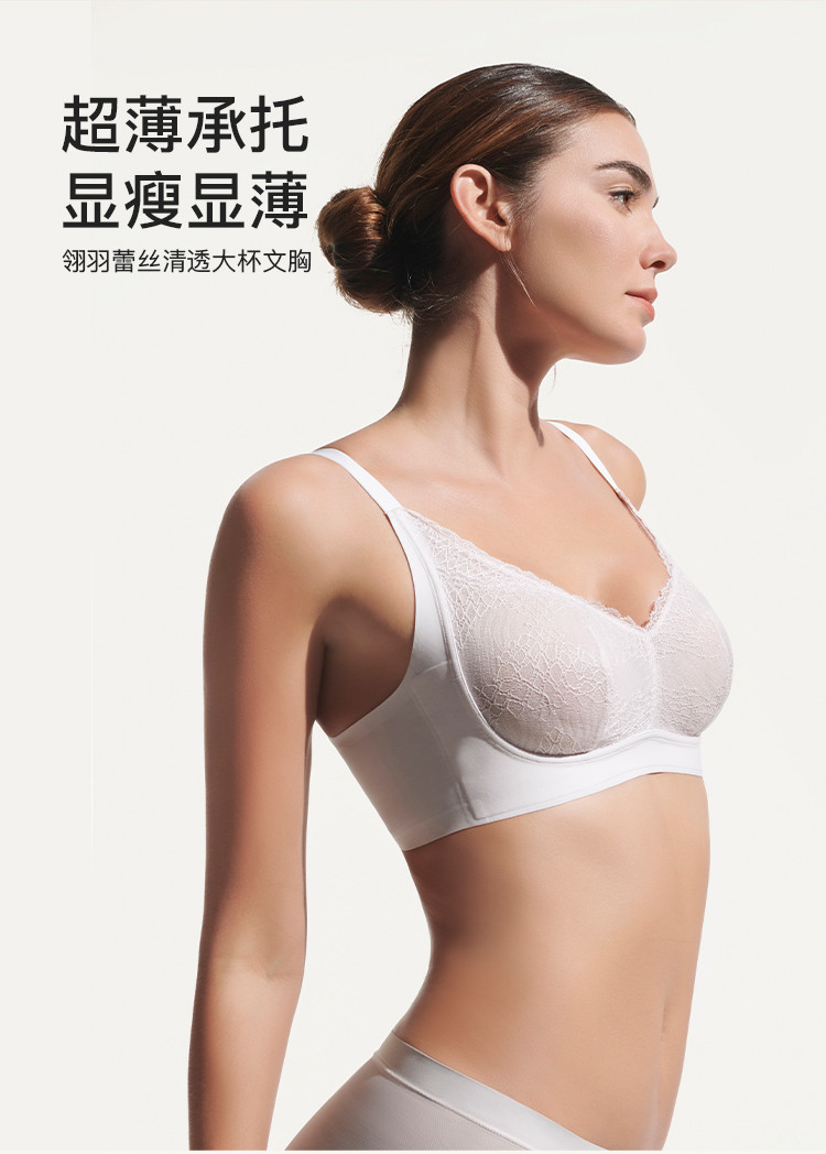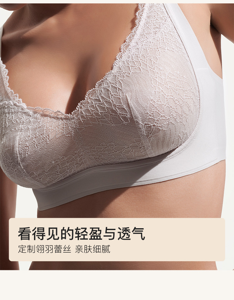 商品名称:【大胸显小】翎羽蕾丝大杯背勾文胸收副乳防下垂女士内衣无钢圈 545216