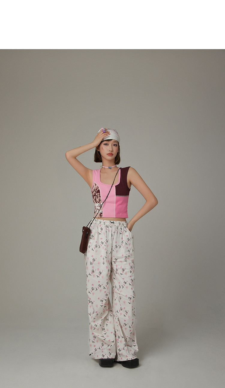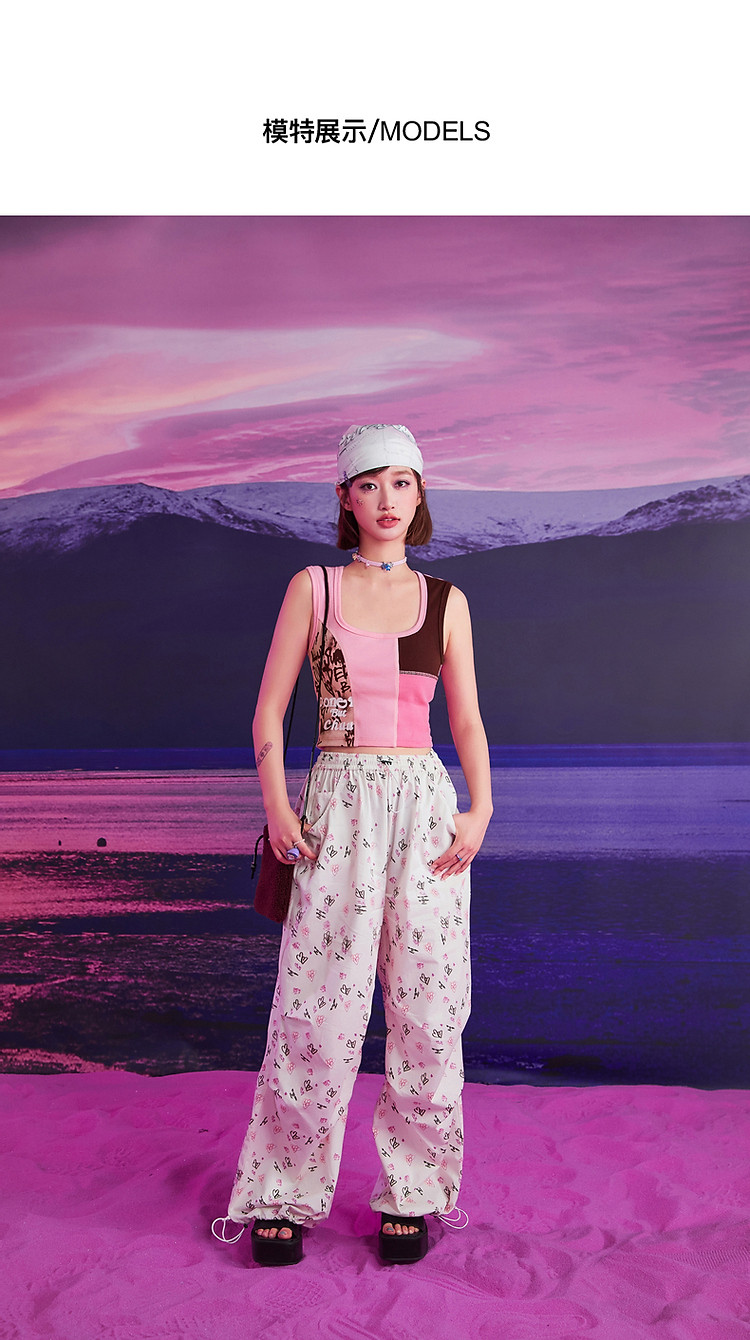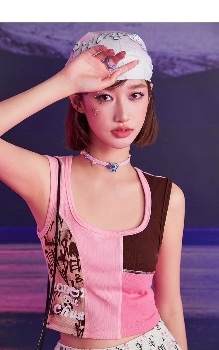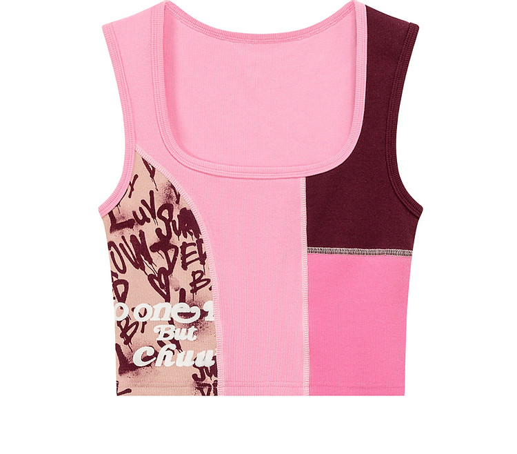 字母无袖小背心女春秋设计感拼接撞色辣妹显瘦短上衣 392211