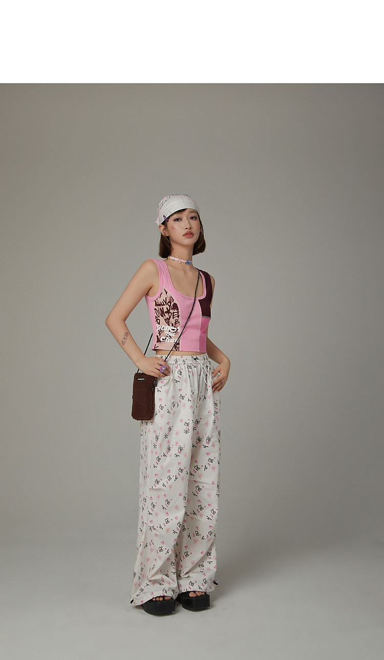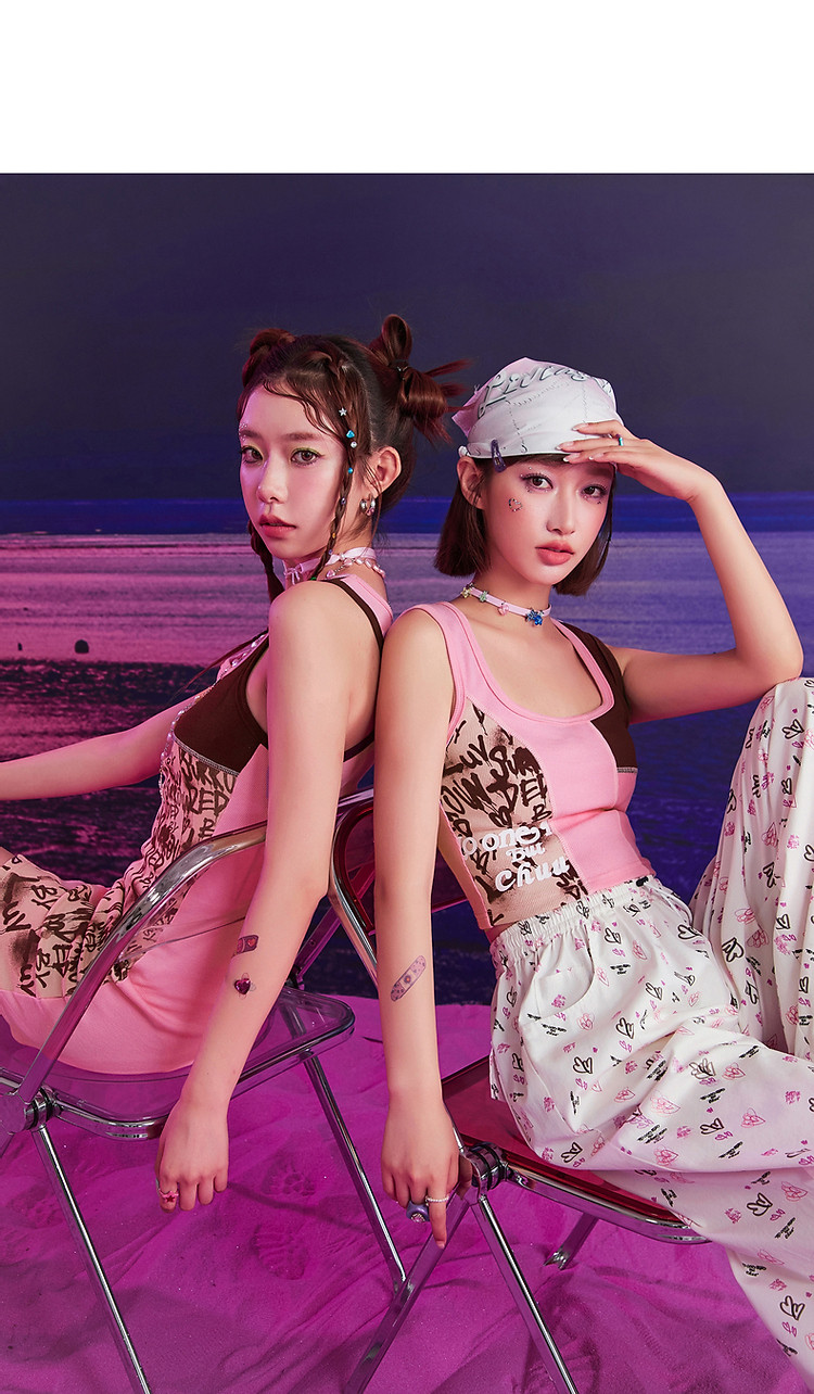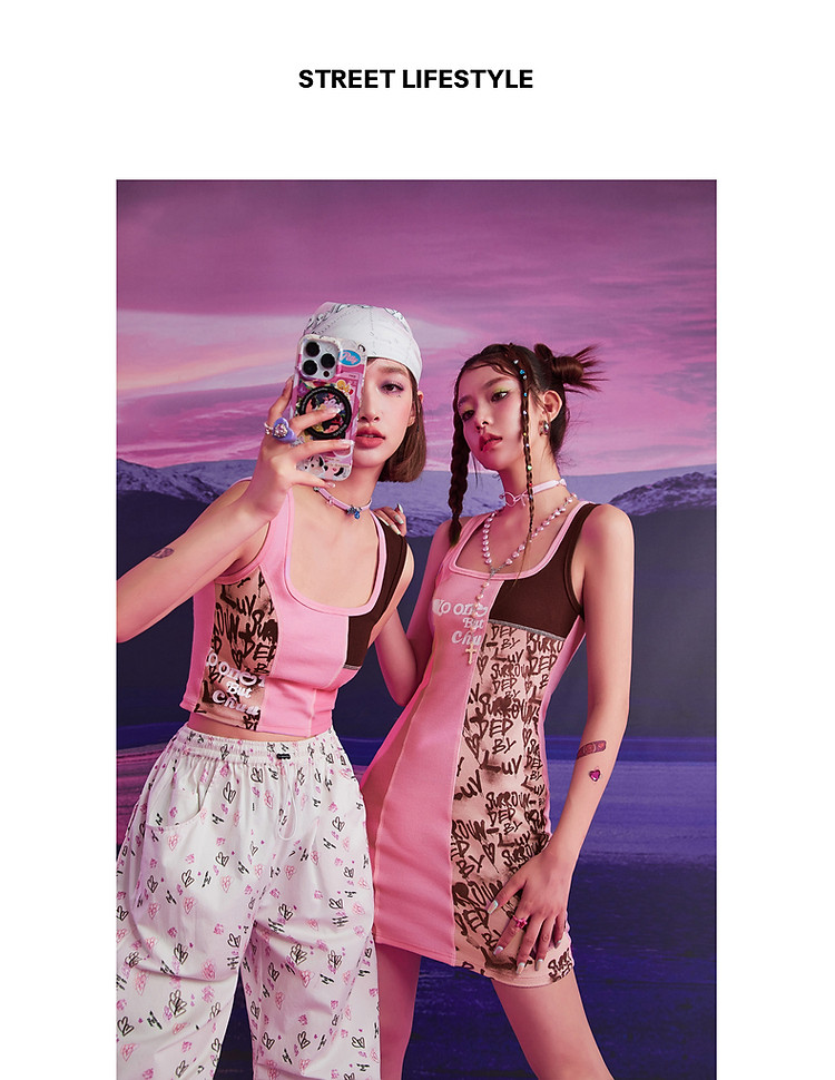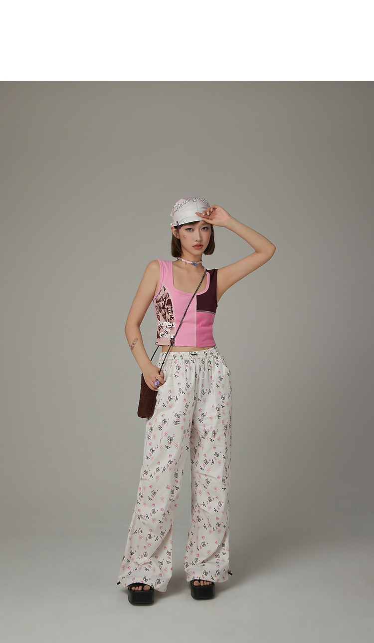字母无袖小背心女春秋设计感拼接撞色辣妹显瘦短上衣 392211