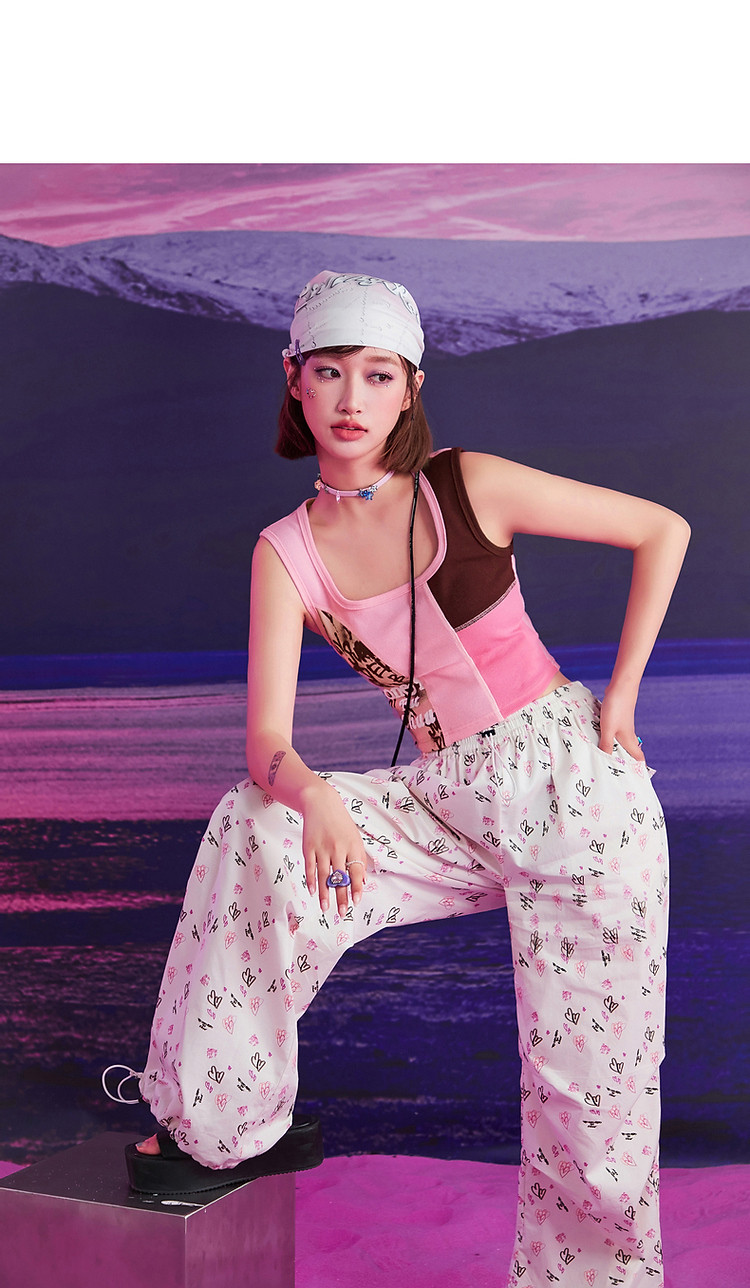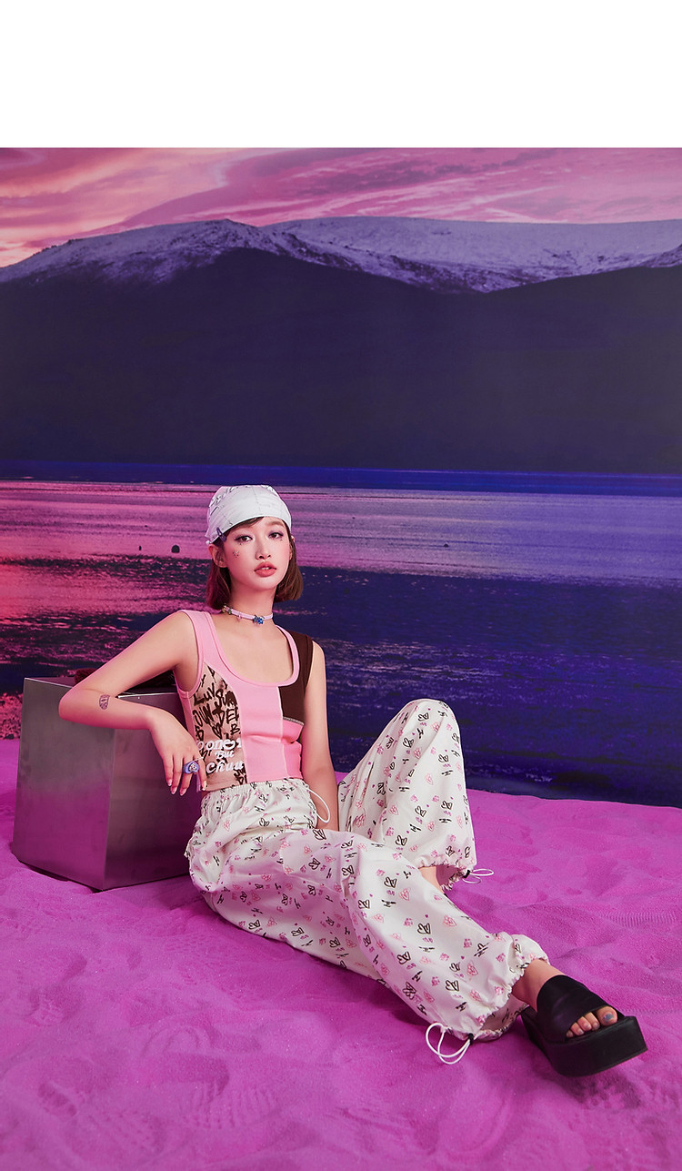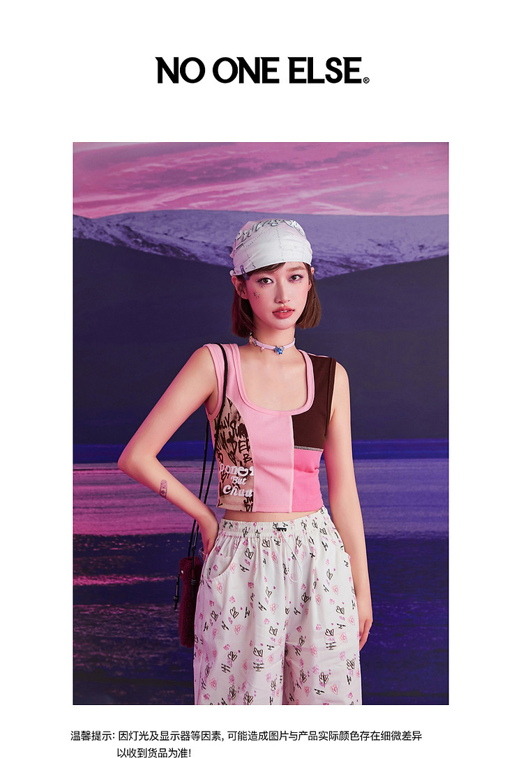 商品名称:字母无袖小背心女春秋设计感拼接撞色辣妹显瘦短上衣 392211
