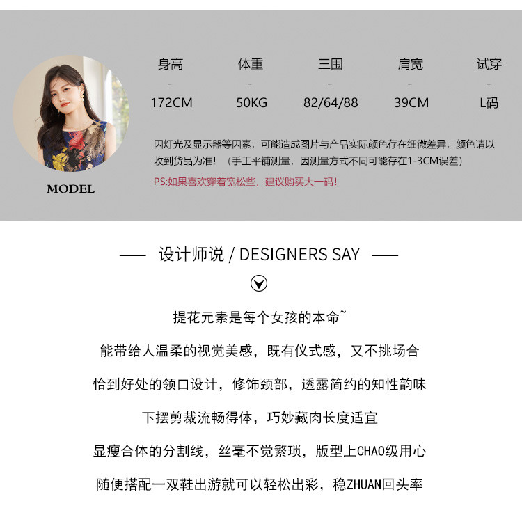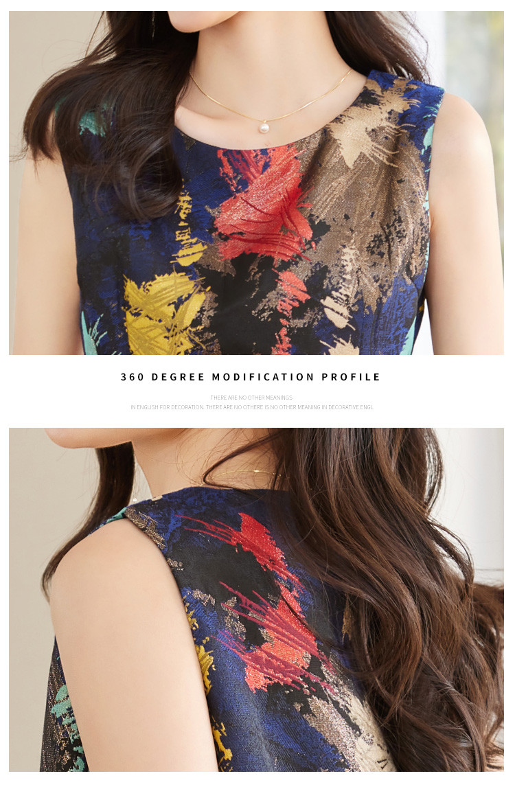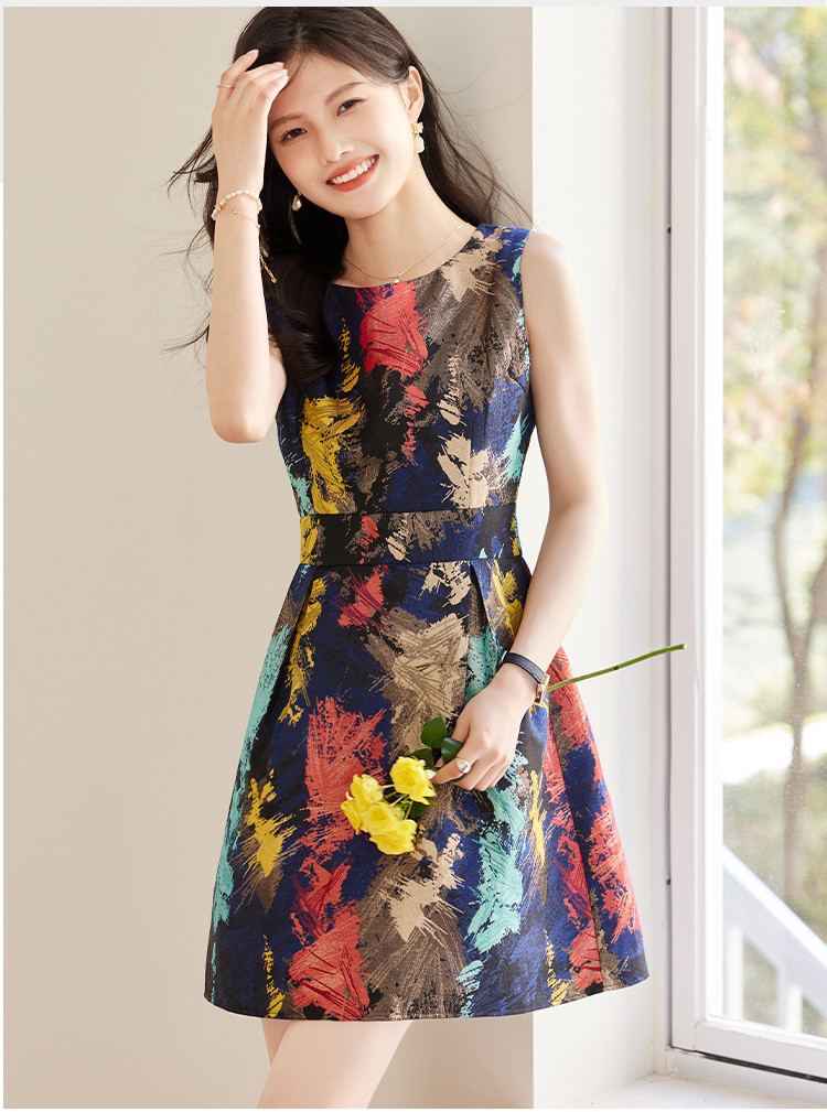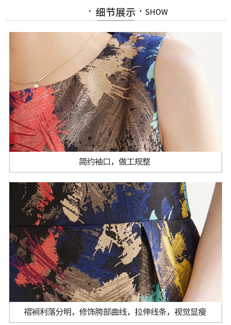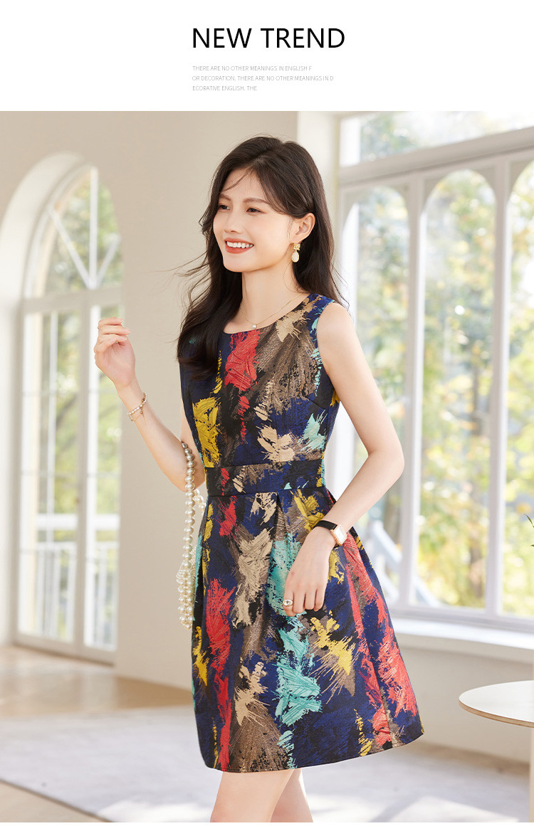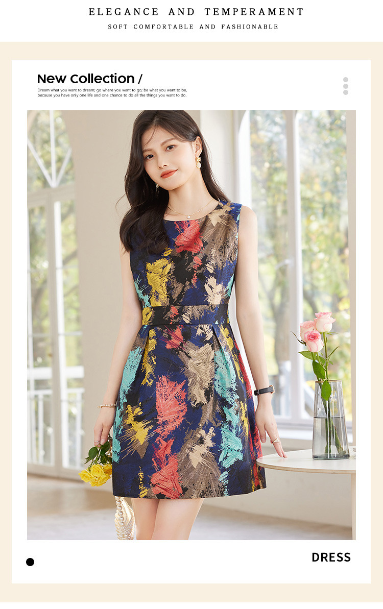 商品名称:2025春装优雅简约小清新淑女修身印花无袖连衣裙 949208
