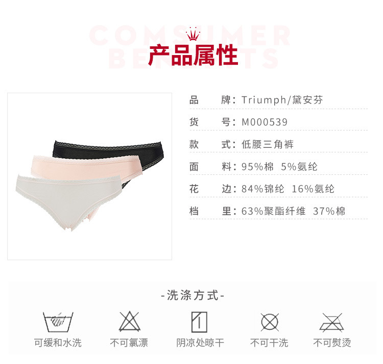 商品名称:【亲肤3条装】黛安芬M000539低腰舒适不紧勒三角内裤女 366026
